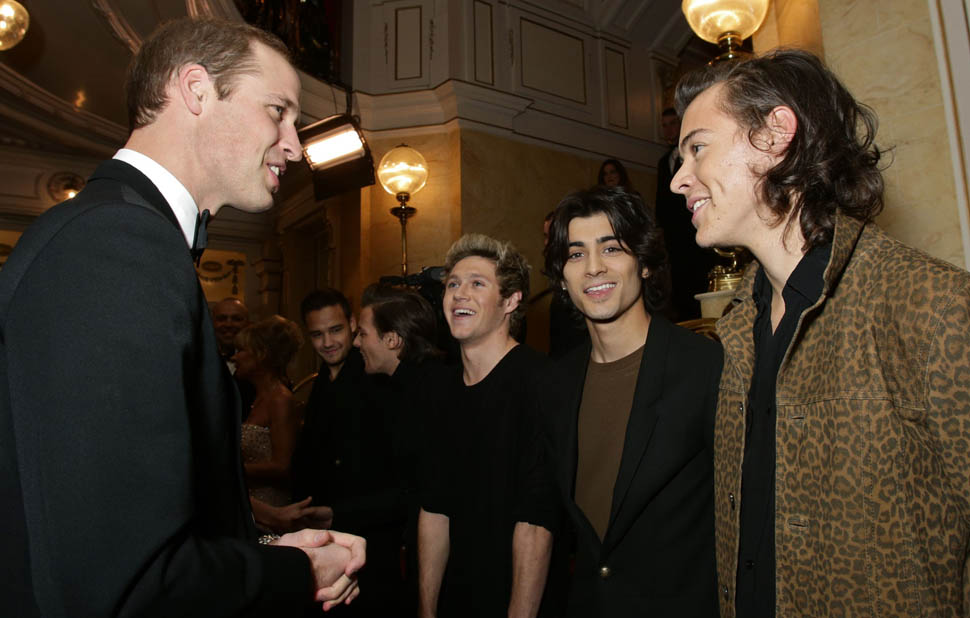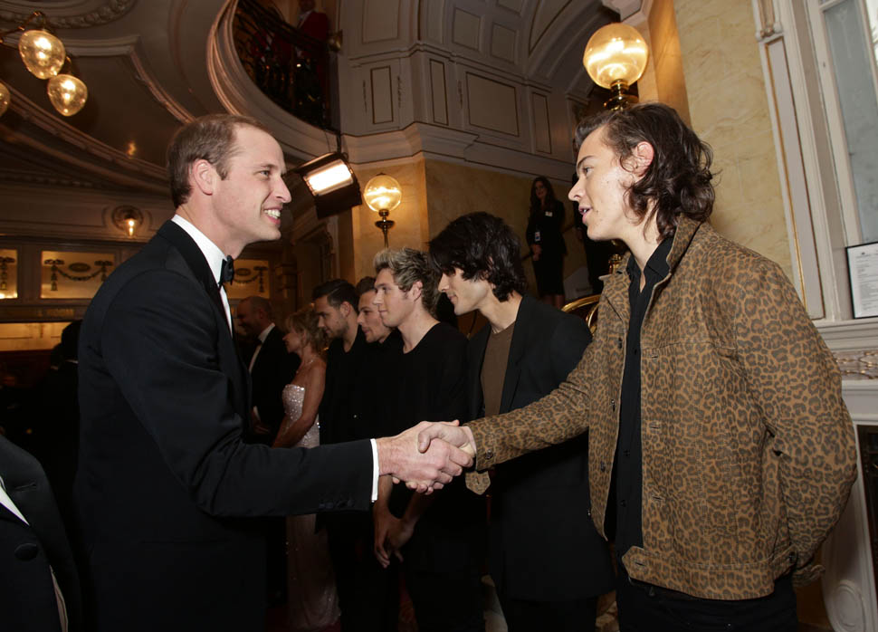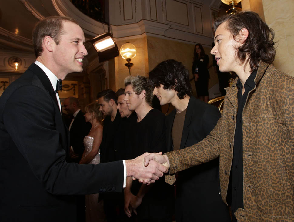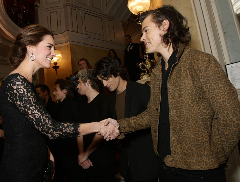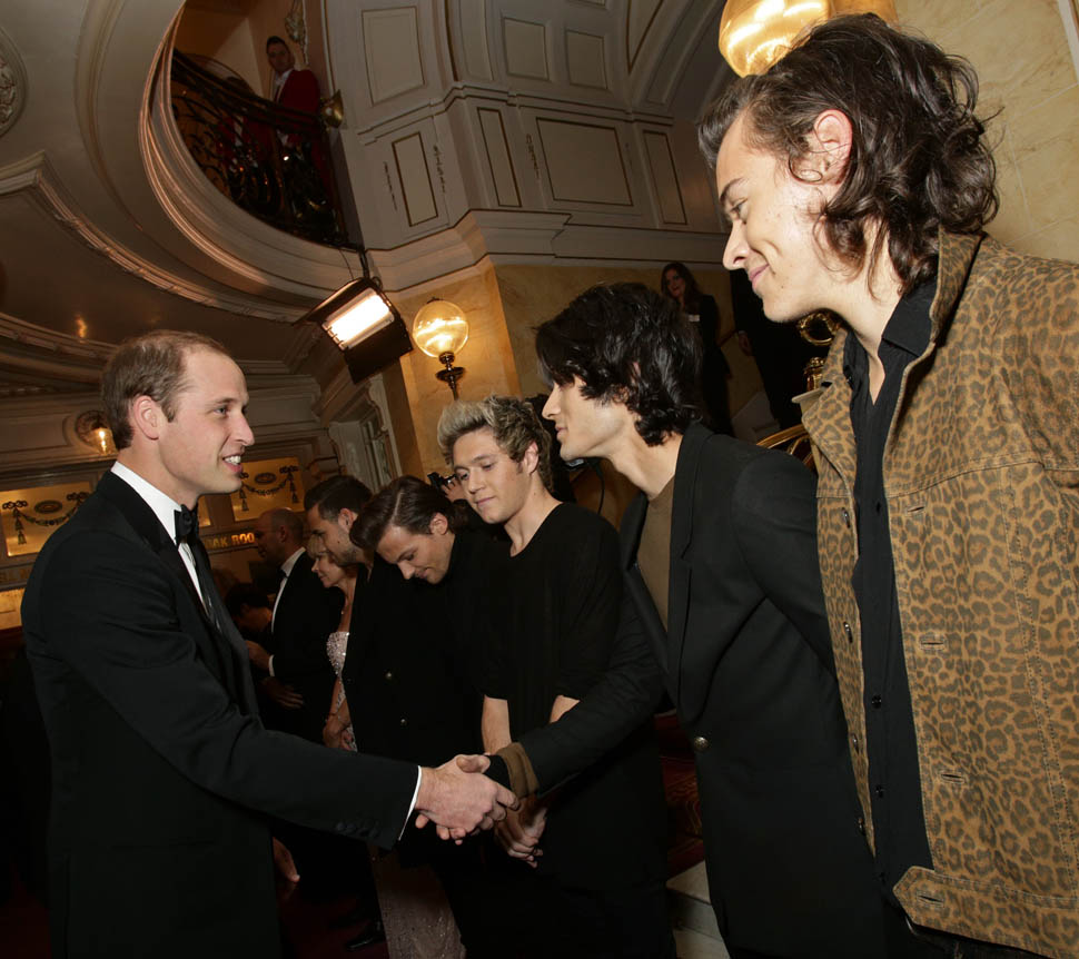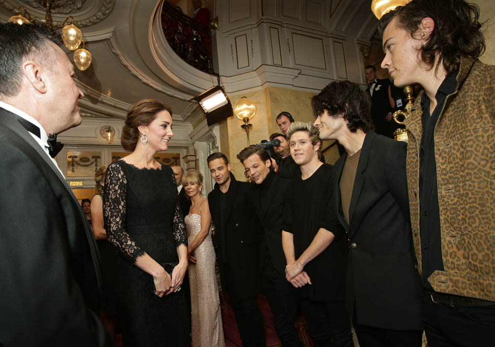 Prince William and Catherine were at the Royal Variety Performance at the London Palladium tonight. And One Direction was there. And they all met and shook hands.
