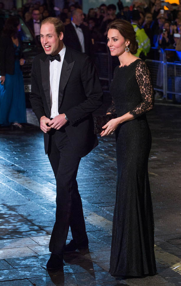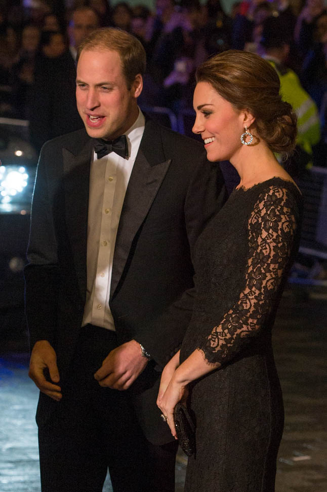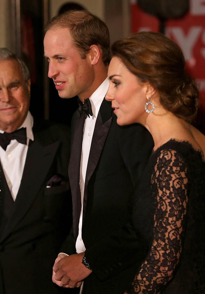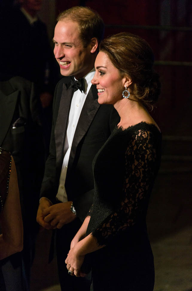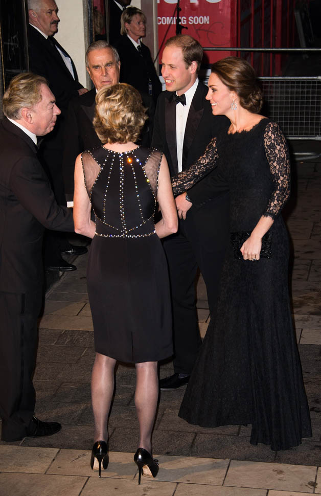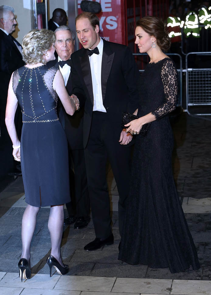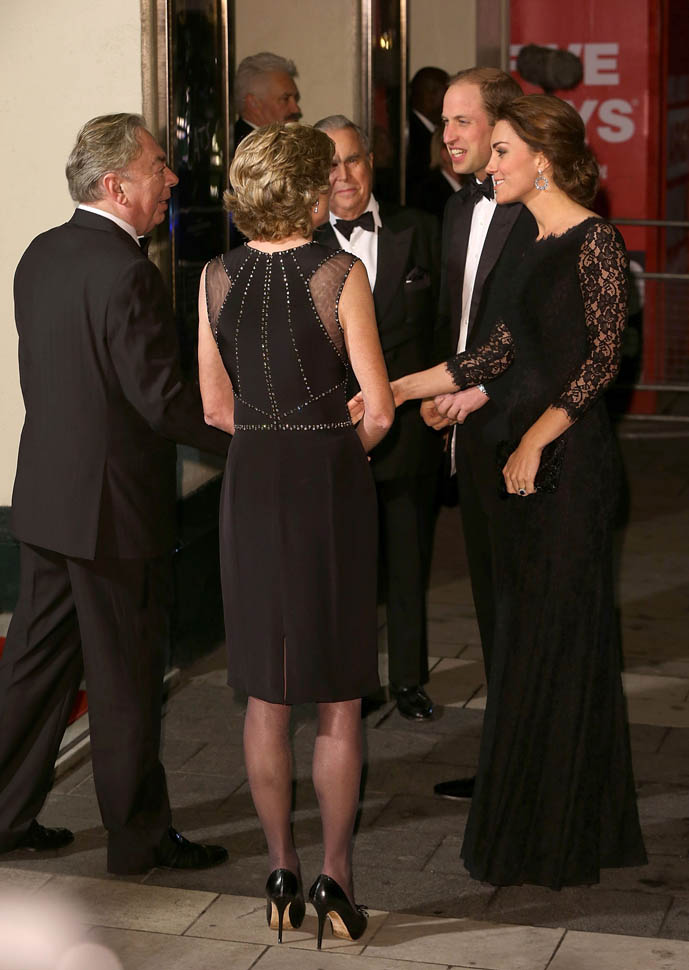 Prince William and Catherine were at the Royal Variety Performance at the London Palladium tonight. And One Direction was there. And they all met and shook hands.