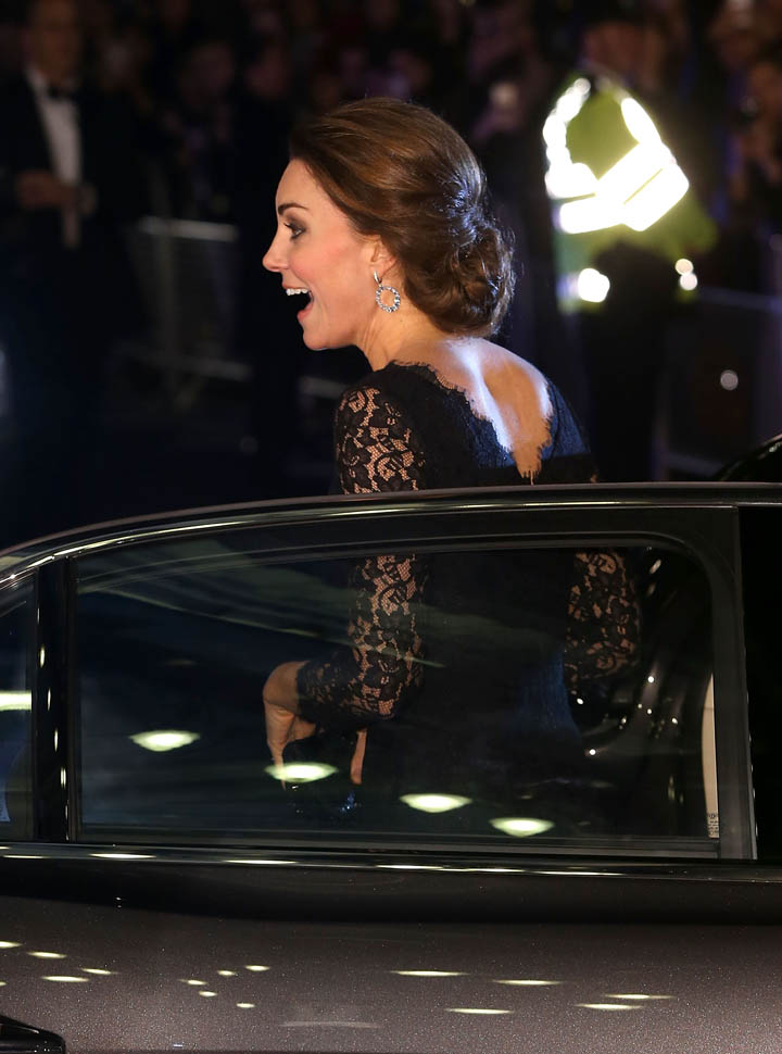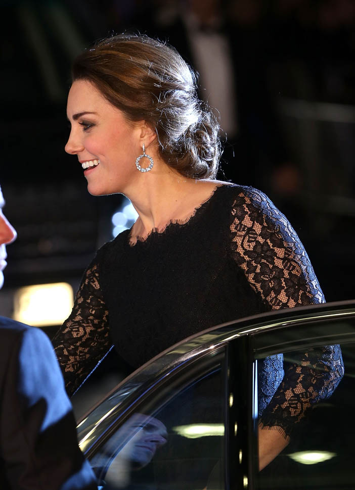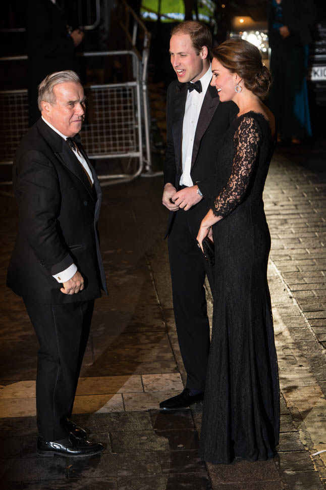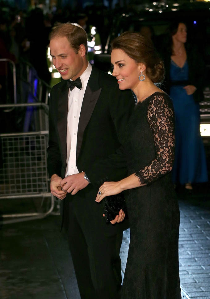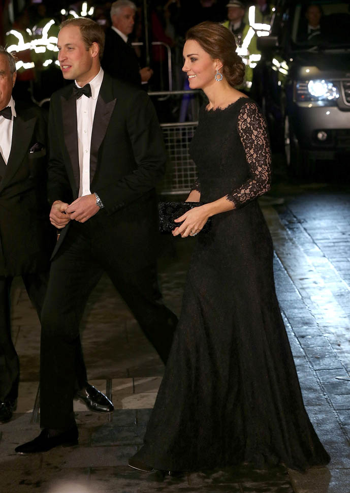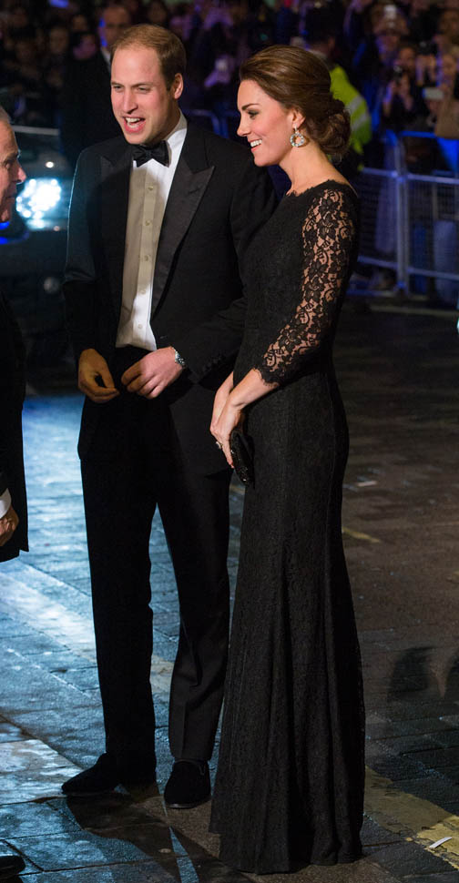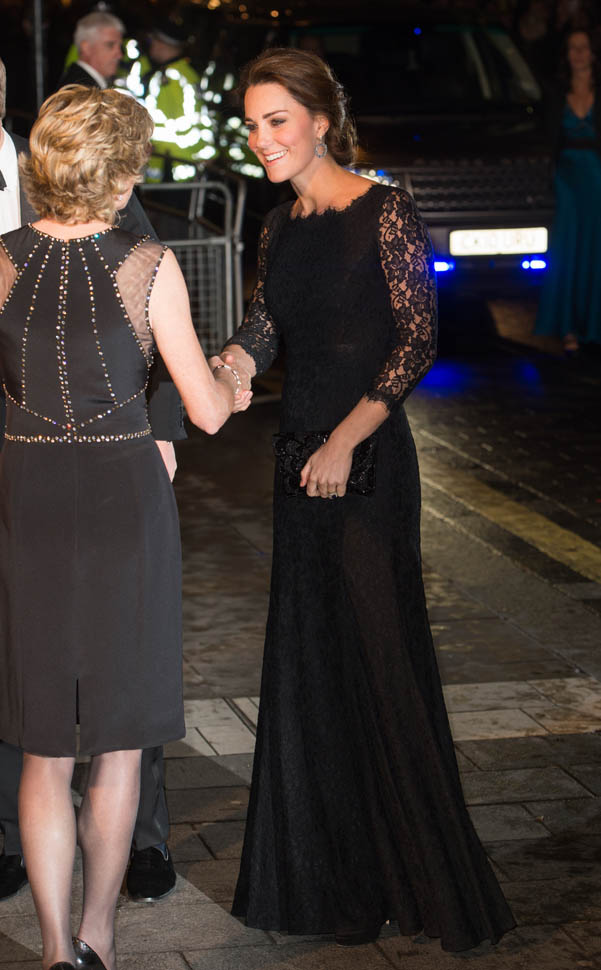 Prince William and Catherine were at the Royal Variety Performance at the London Palladium tonight. And One Direction was there. And they all met and shook hands.