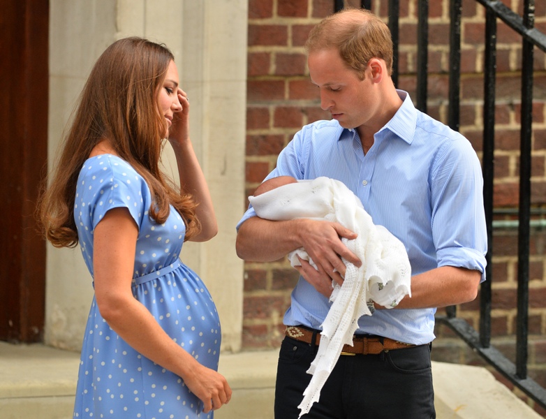Here they are, in coordinating baby boy blue, presenting their first son to the world for the first time. Kate carried him out. Then she transferred him to his father. And then both of them approached the press for a few questions. Will joked that he’s happy the child looks more like Kate than him. And when asked about changing nappies, Kate revealed that Will has already done it. As for the name…not yet. But it doesn’t matter. There are so many other details to obsess over.