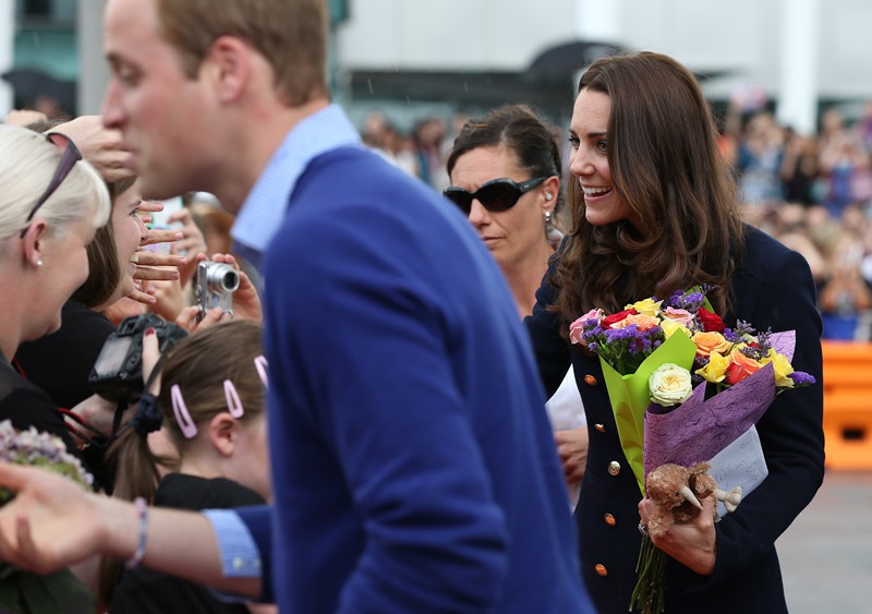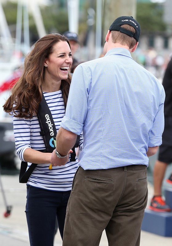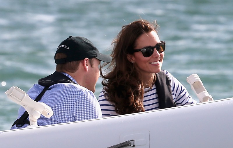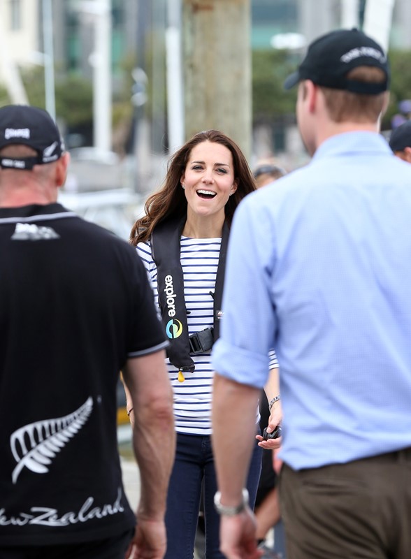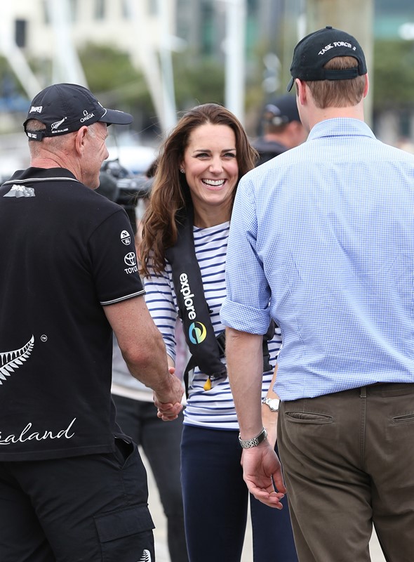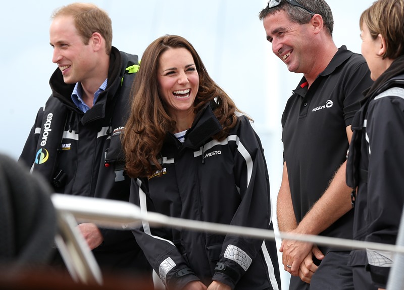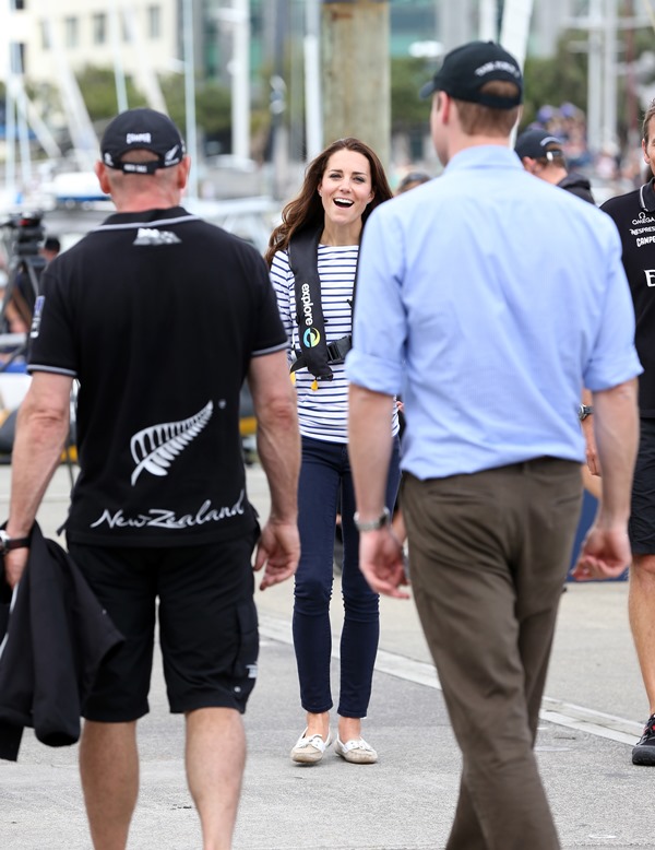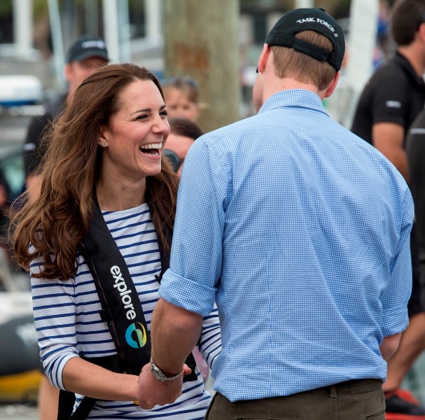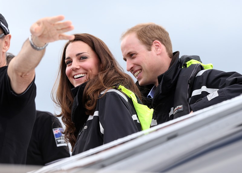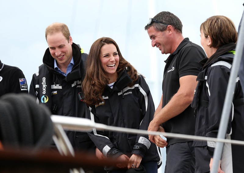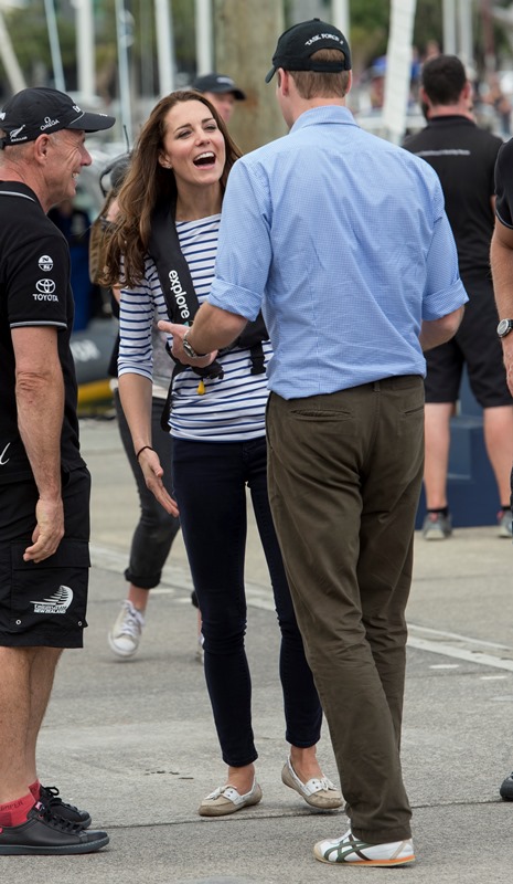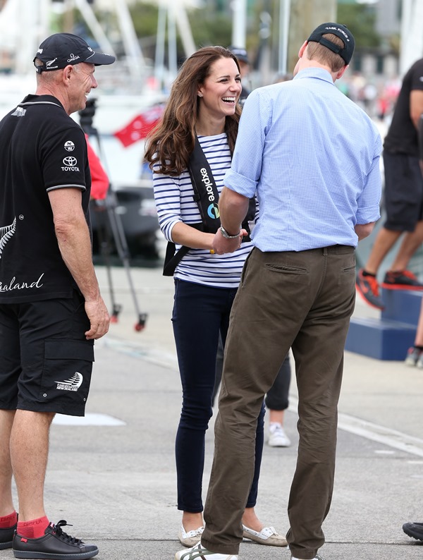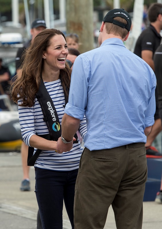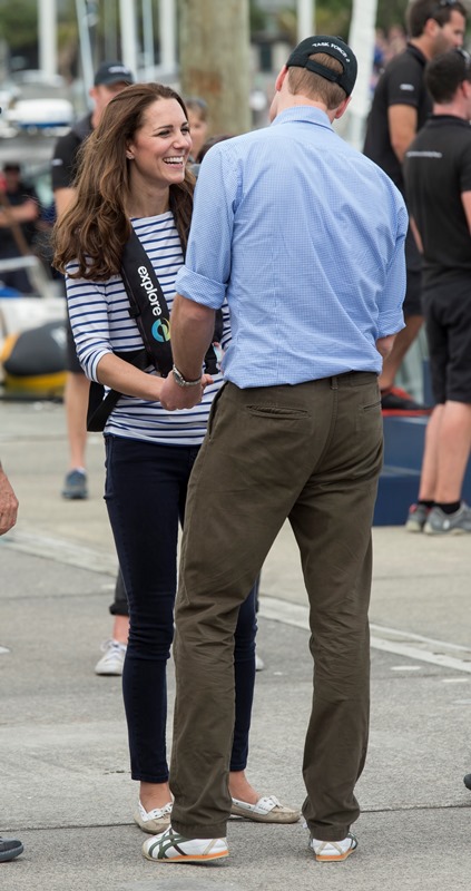 Big George Cambridge did not go out to sea with his parents yesterday in Auckland as they raced each other on the water. Princess Catherine’s team won. She teased her husband about it good-naturedly and the two had a pretty cute moment afterwards, teasing each other. And he reached out to hold her hand, showing how close they are, how much they enjoy each other, how comfortable they are with each other, how their bodies fit so well together, alone, at night, when the baby is asleep…