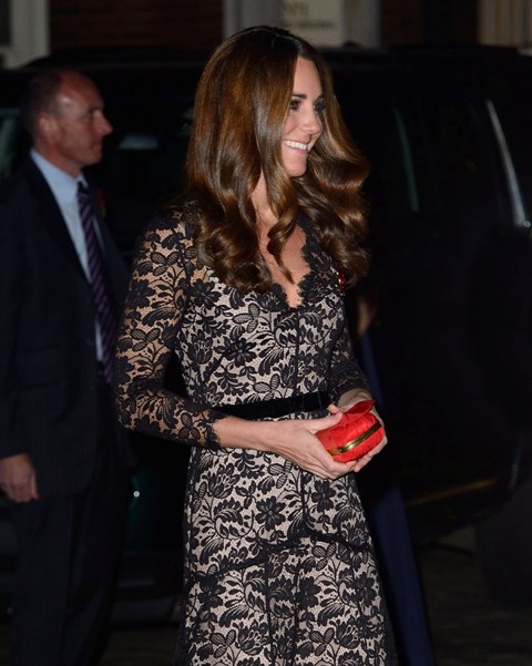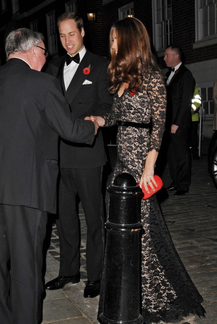 Kate is wearing a recycled Temperley. She’d previously worn it to the premiere of War Horse last year. What premiere will they attend this year? It has to have a British connection.