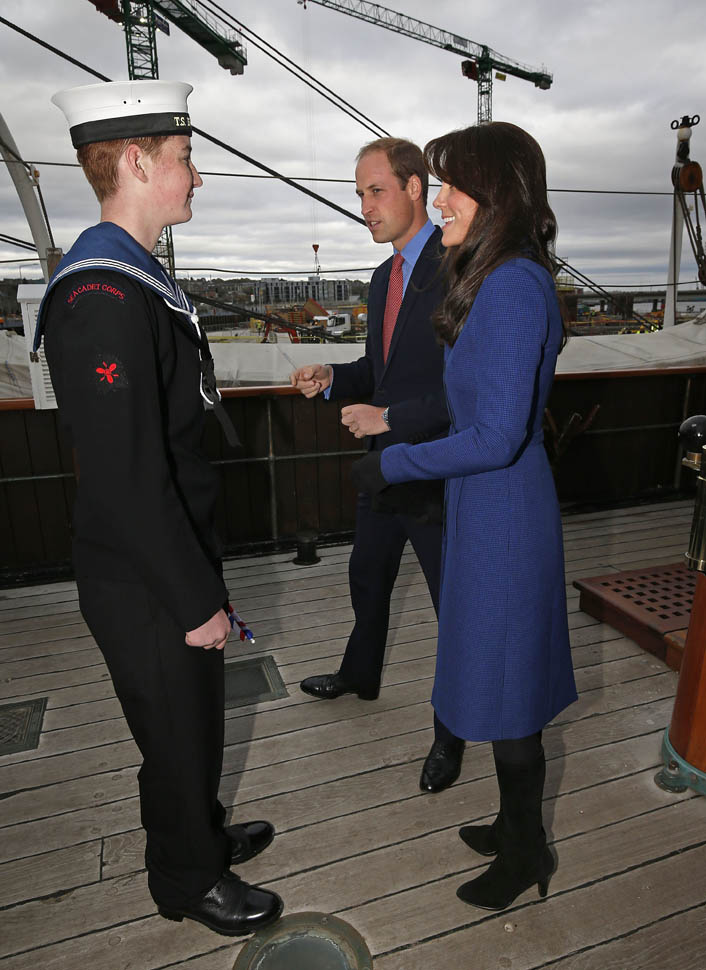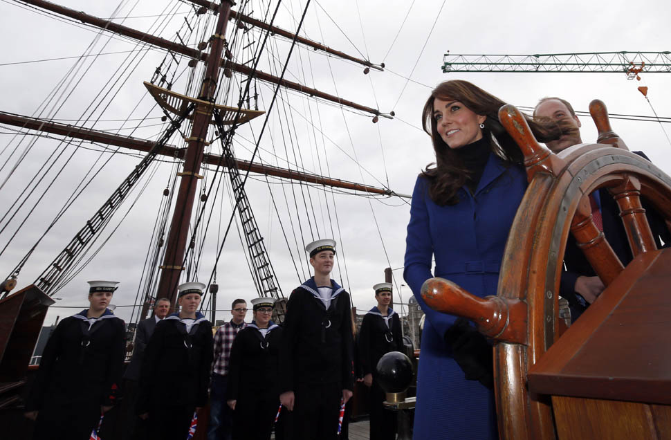 Prince William and Princess Catherine are in Scotland. Today they visited The Corner and participated in an anti-bullying workshop. They also climbed aboard the Royal Research Ship Discovery in Dundee. I like these shots of them at the wheel. I mean imagine if he actually started shouting “I’m the king of the world”? It’s kind of true.