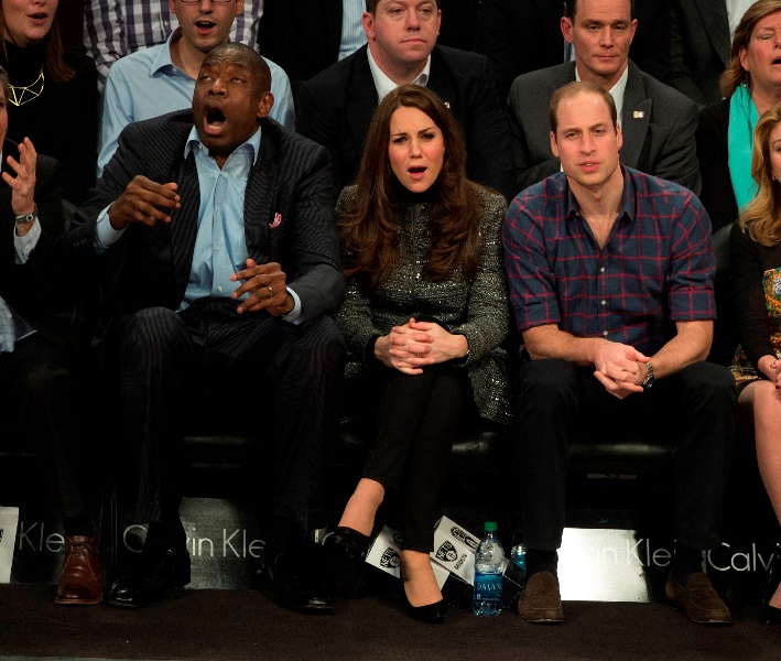 I wrote yesterday about all the speculation that Prince William and Catherine would likely be in a luxury box at Barclays for the Brooklyn Nets game but if they’re there because the NBA is making a big ass donation and they’re publicising whatever it is that they’re publicising, what’s the point of sh-tty photos from a luxury box?