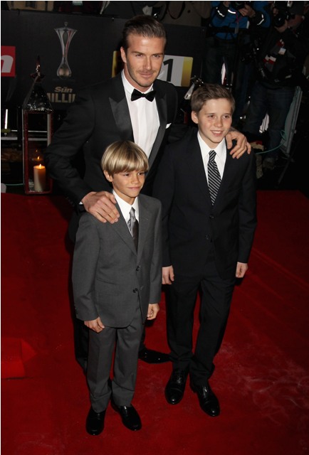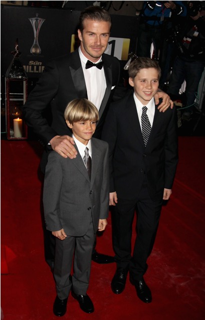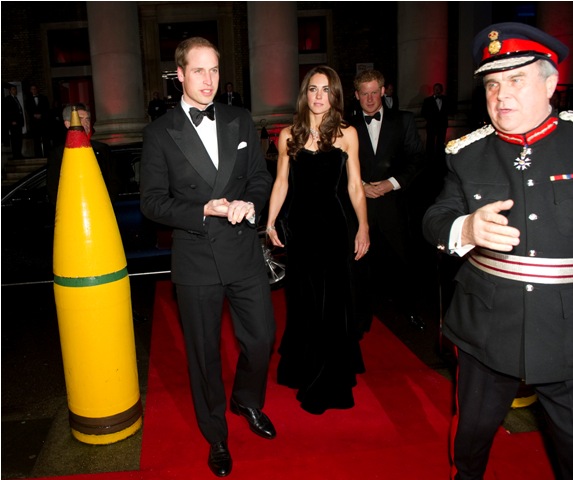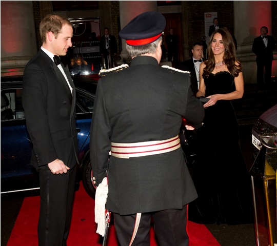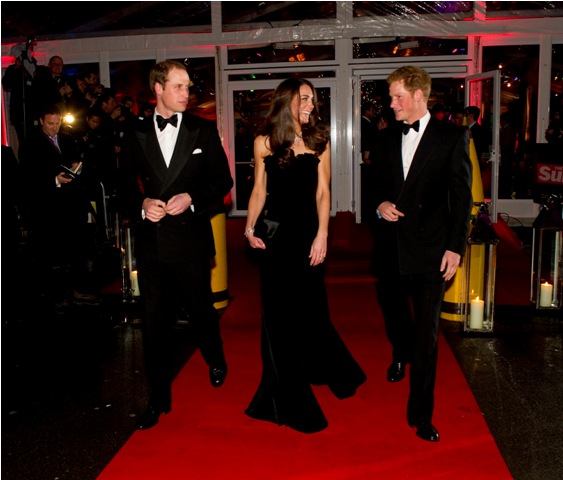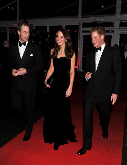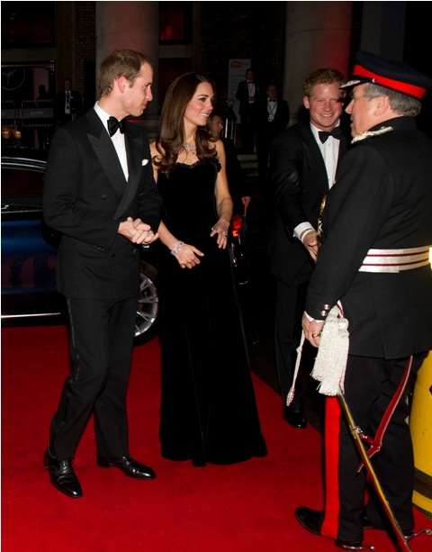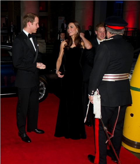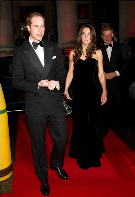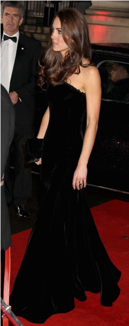 I quite like Kate’s black velvet gown. Maybe because I love black velvet, both the fabric and the phrase. Black Velvet. Kate’s Black Velvet is McQueen. You’ll note that David Beckham showed up with two of his sons, Brooklyn and Romeo. No Victoria. Really disappointed we missed an opportunity for a thin-off.