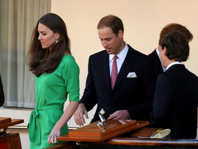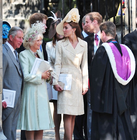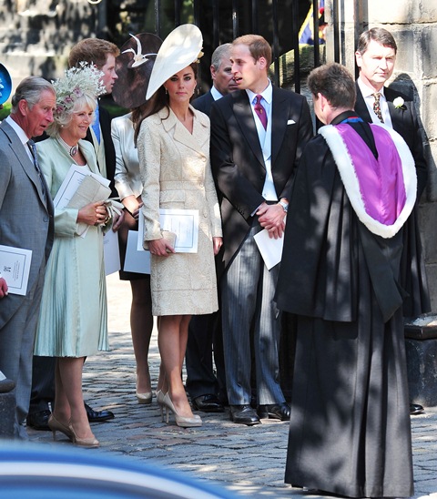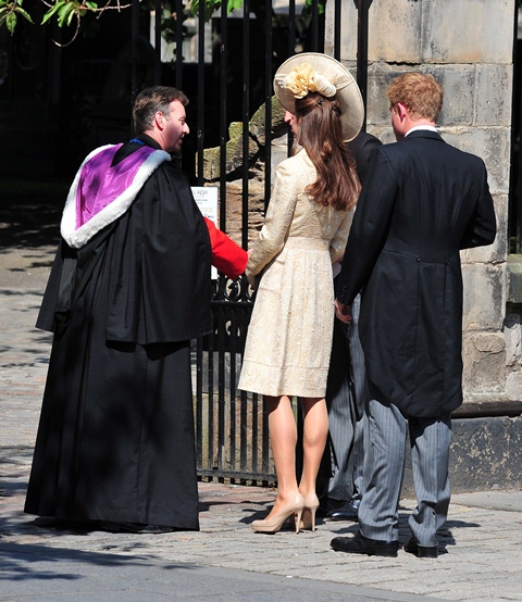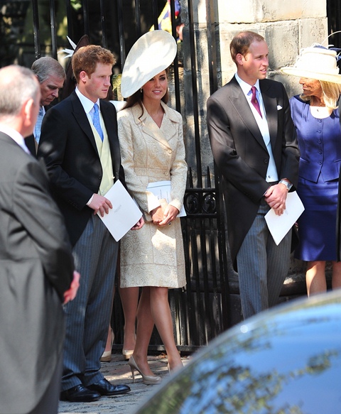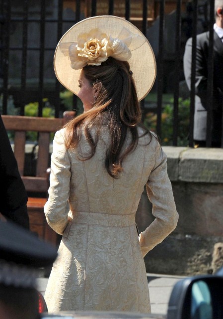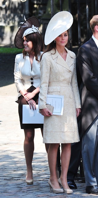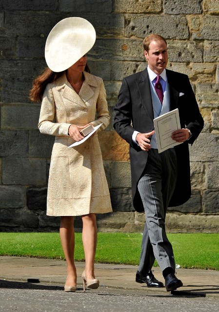 Wellllll, it is a recycled coat from 2006. And she certainly didn’t attempt to detract from the bride...ish. I mean, there’s a lot of personality in that hat, non? I guess my point is that it’s the kind outfit that doesn’t seem to be able to make up its own mind. It wants to be one thing, and also the other. Not unlike the whole deliberate recycling thing with her wardrobe; it implies that she doesn’t have the time for frivolity, shopping, thinking too much about her clothes which...great. And then there’s the weight thing, because she likes being thin for the cameras, she’d rather look this way than 10 lbs heavier, and that suggests a vanity that may be incongruous with the no-frills princess image that she seems to be cultivating. Right now, we’re all so in love with her and still so dazzled by the fairy tale that it hasn’t been an issue. Later on though, as it does, when the honeymoon is over, these inconsistencies, they will be harder to ignore.