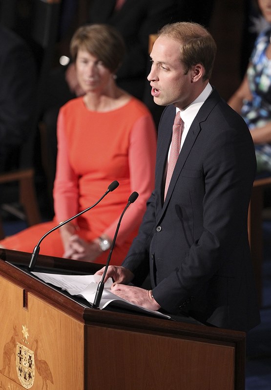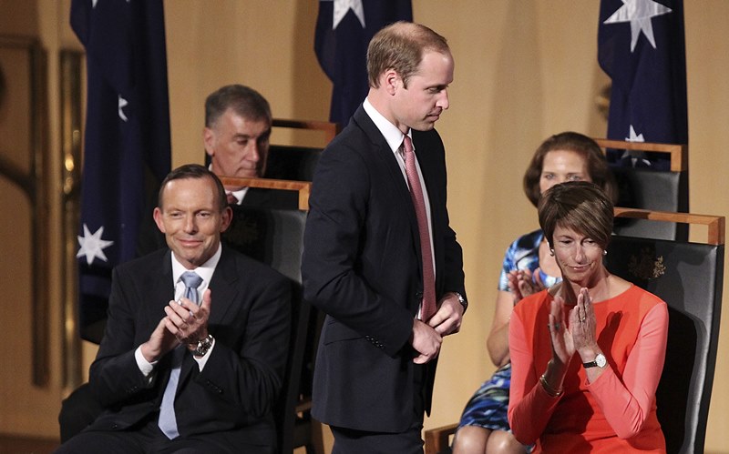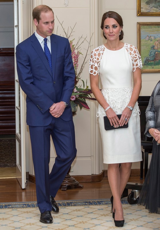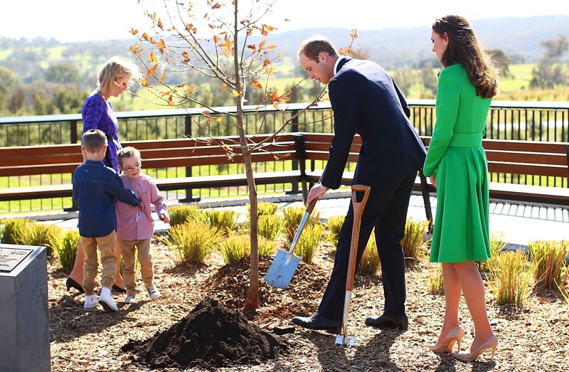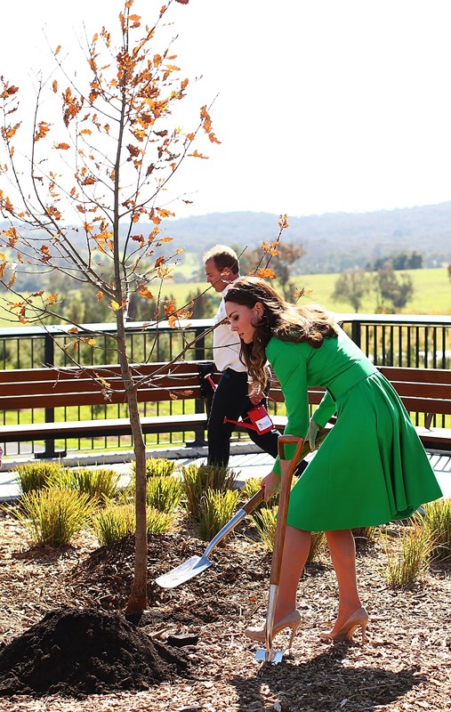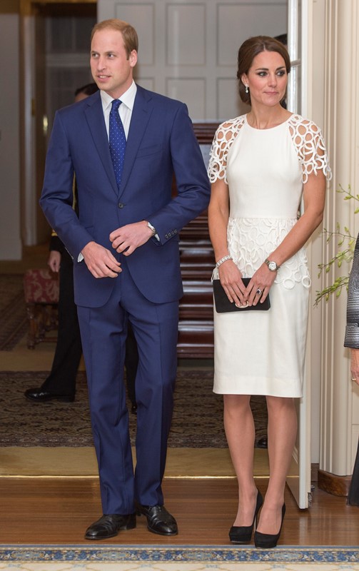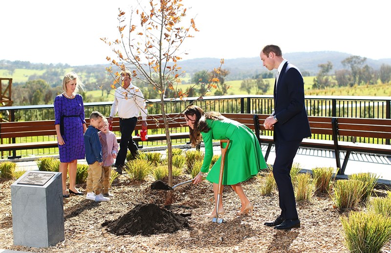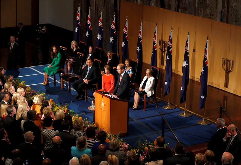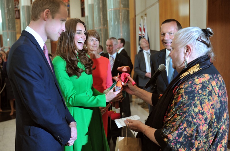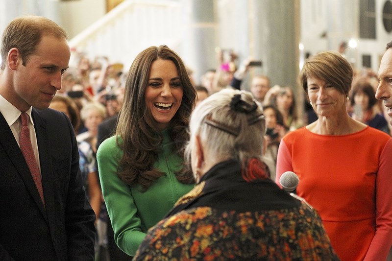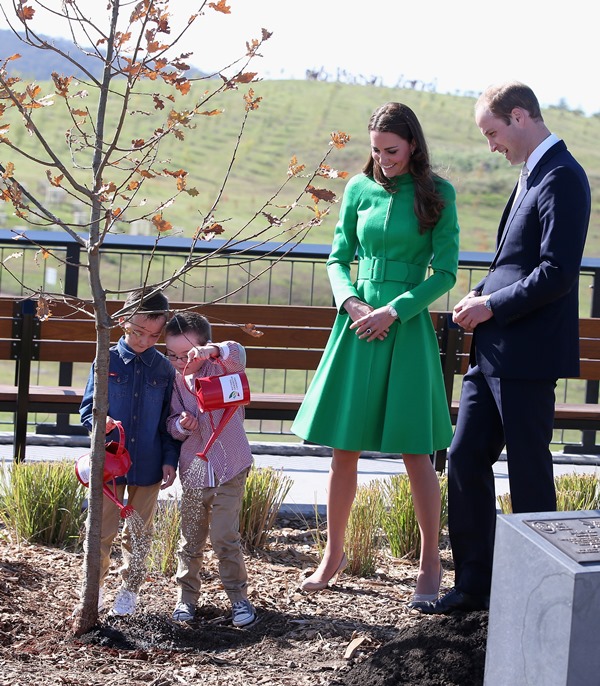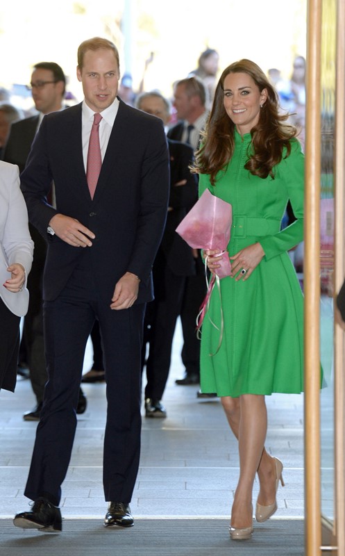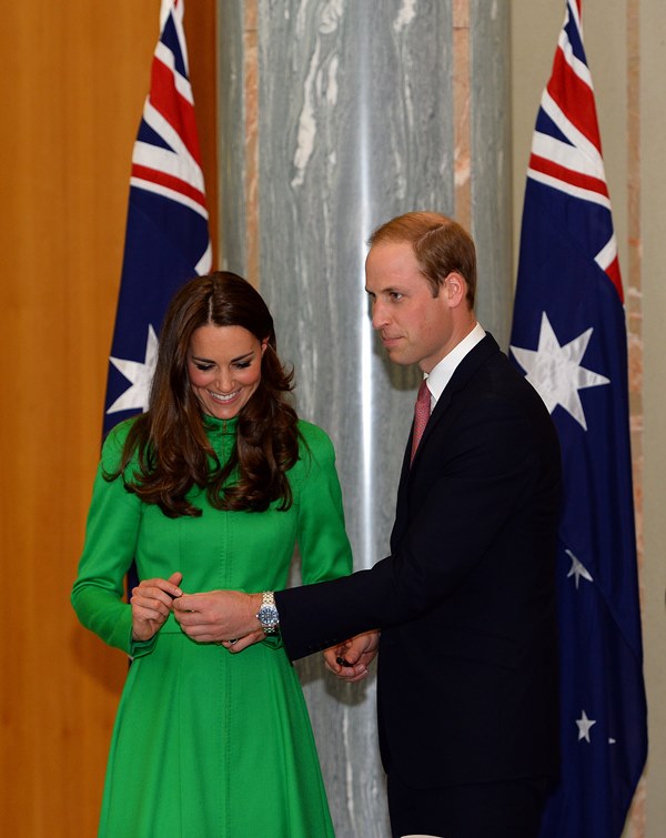 Anyway, Prince William and his Catherine are almost at the end of their tour of New Zealand and Australia. They leave tomorrow. So today they packed in a lot. There was a visit to the National Arboretum in Canberra. I guess that’s why she wore green? Also they stopped by the National Portrait Gallery. And Will gave a speech at Parliament House.