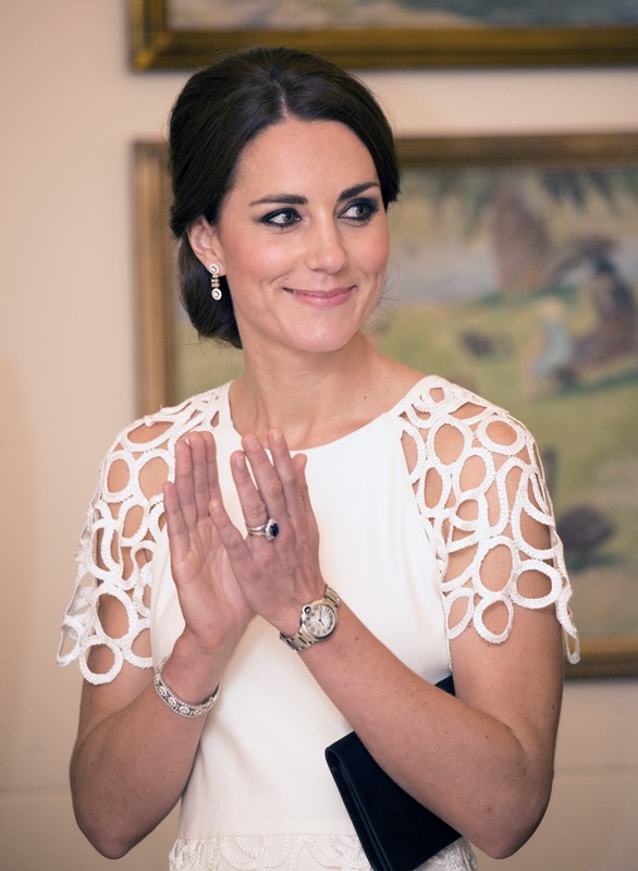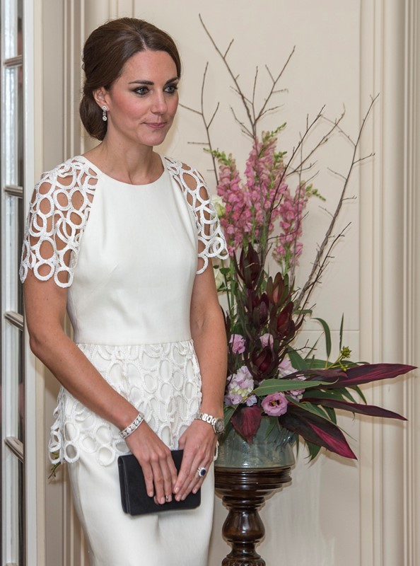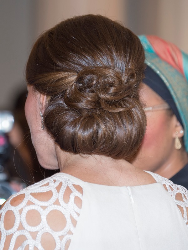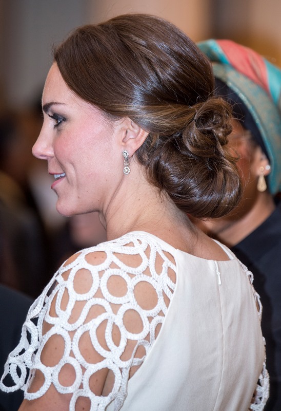 In the evening the Cambridges attended a reception at Government House. She wore off-white and it was alright, but I can’t, CANNOT, CANNOT, CANNOT with this matron hair. Women! There are ways to wear your hair up that is both elegant and not-grandma. What she’s doing here? It’s super grandma. My people would call it “ah ma”. That’s actually the prescribed hairstyle for an “ah ma”. In Chinese soap operas about ancient times, the unmarried girls wear their hair in braids hanging down, with elaborate twists and ornaments. As soon as they get married? All of that disappears. The hair is swept up exactly like Kate’s. Because the idea back then was that as soon as a woman became a wife, she RETIRED from attractiveness.