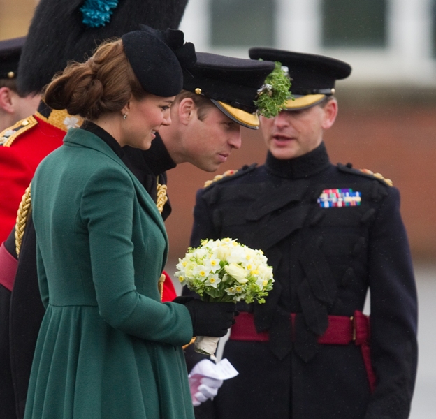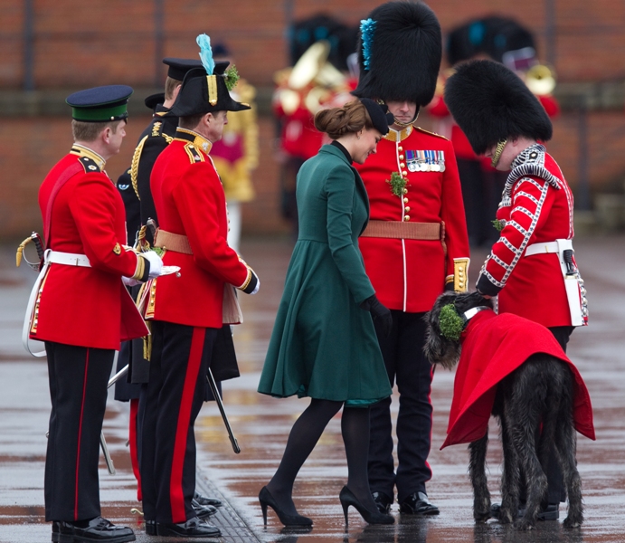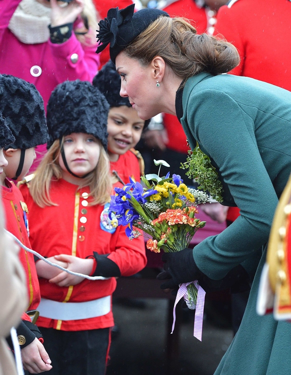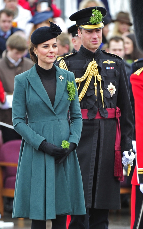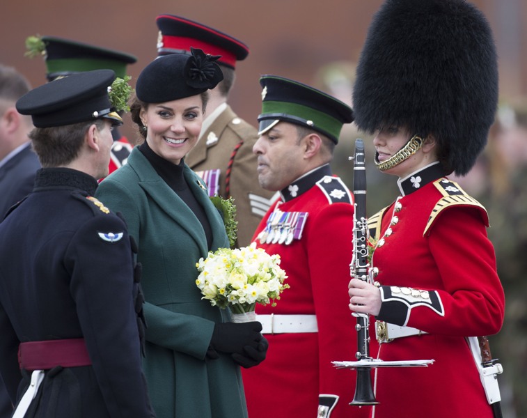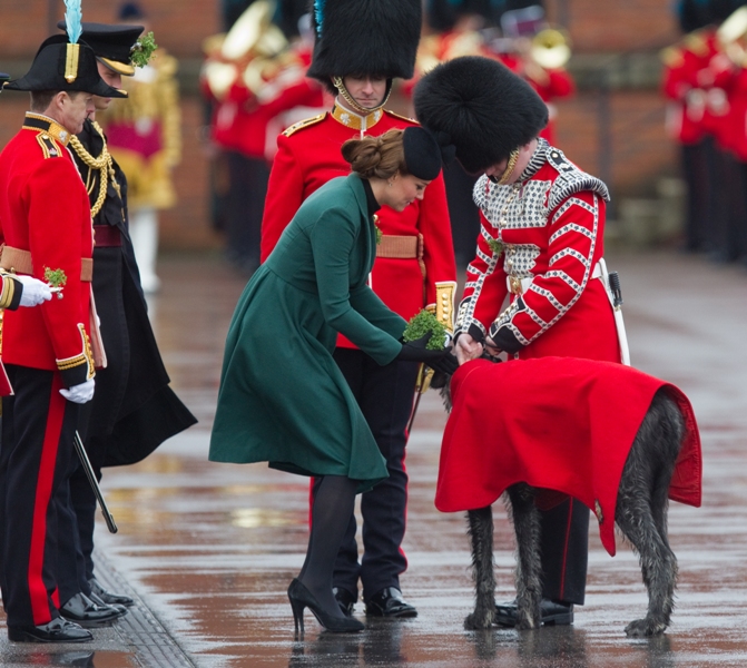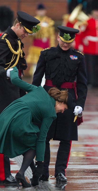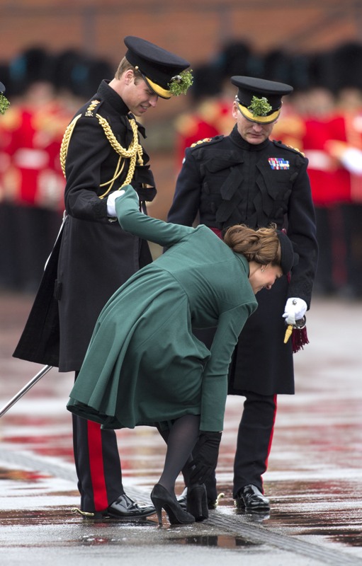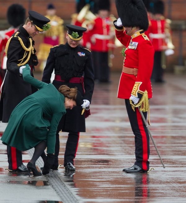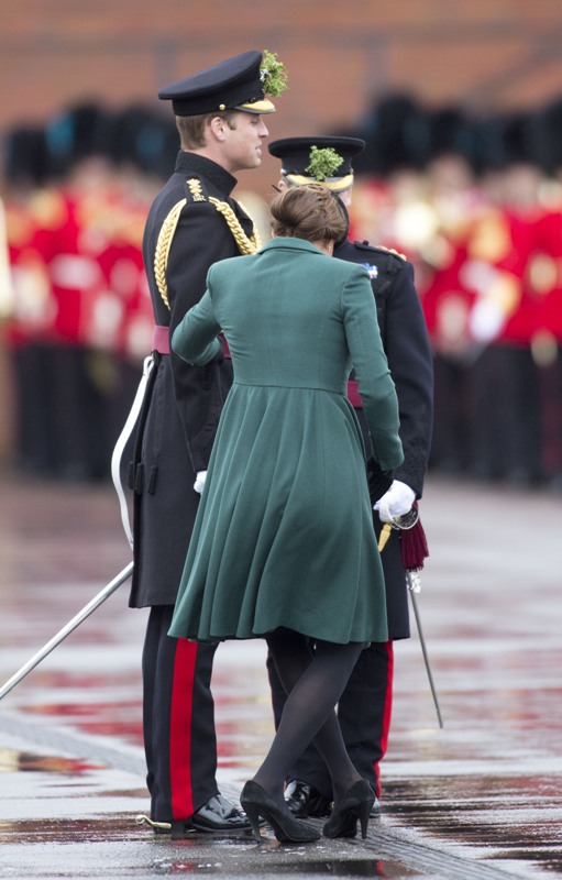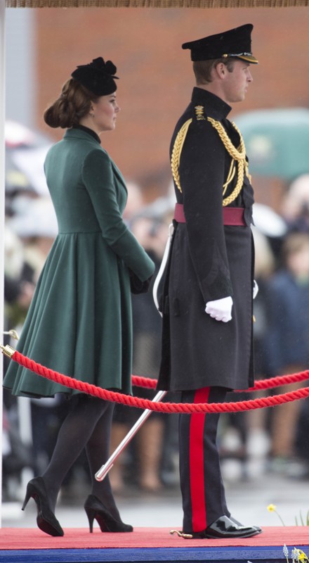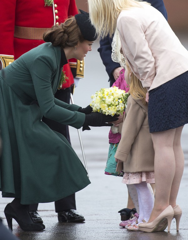 Katy Cambridge recycled her green coat. Whatever. Can we focus instead on that really, REALLY bad hairstyle?