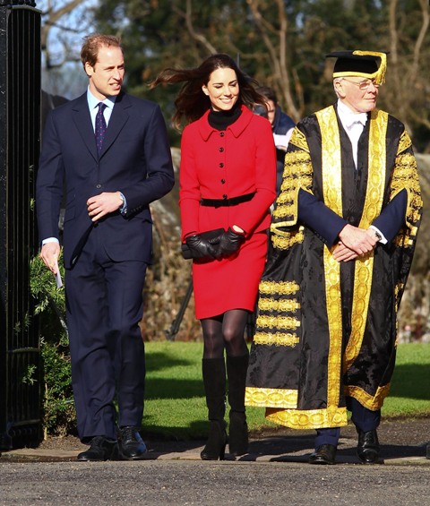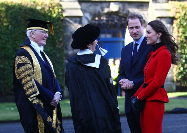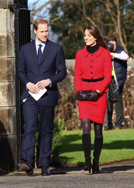 Prince William and Kate Middleton were in Scotland today at St Andrews, where they went to university and of course where they met and fell in love. There were there to launch a fundraising campaign, the second day in a row they’ve been together on official royal-ish duty. And exactly 8 weeks to the wedding. Like 8 weeks today.