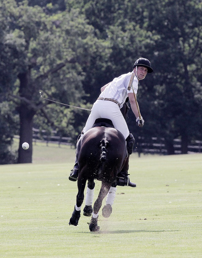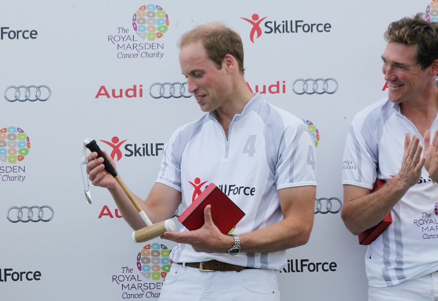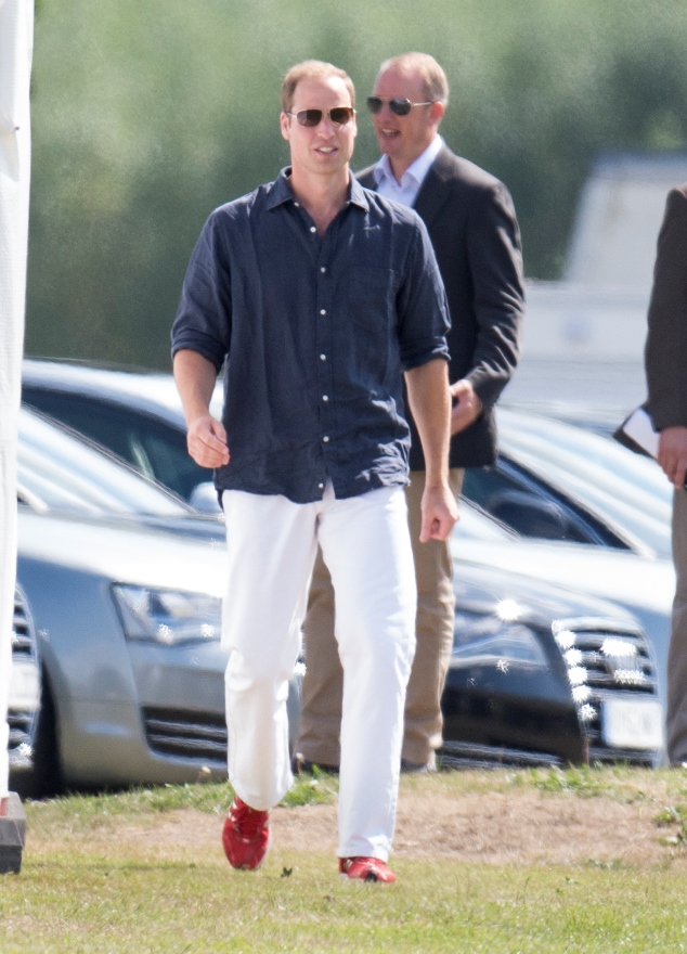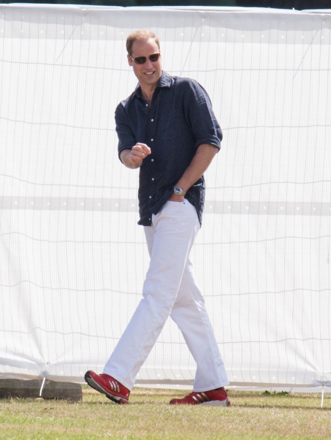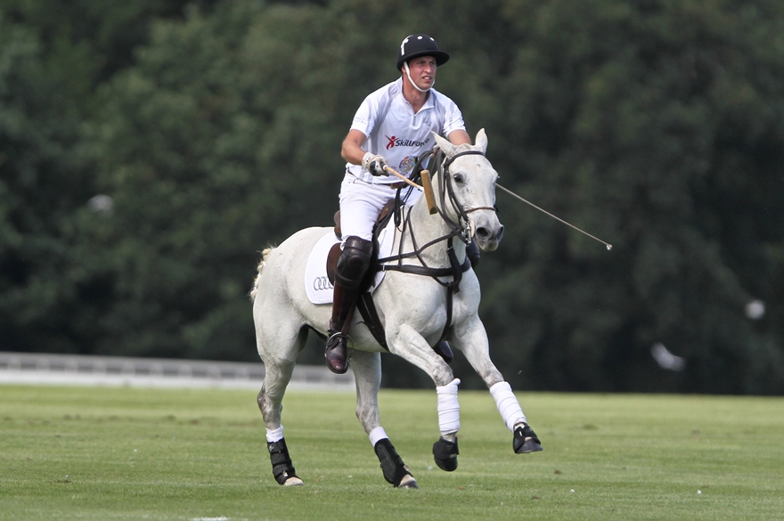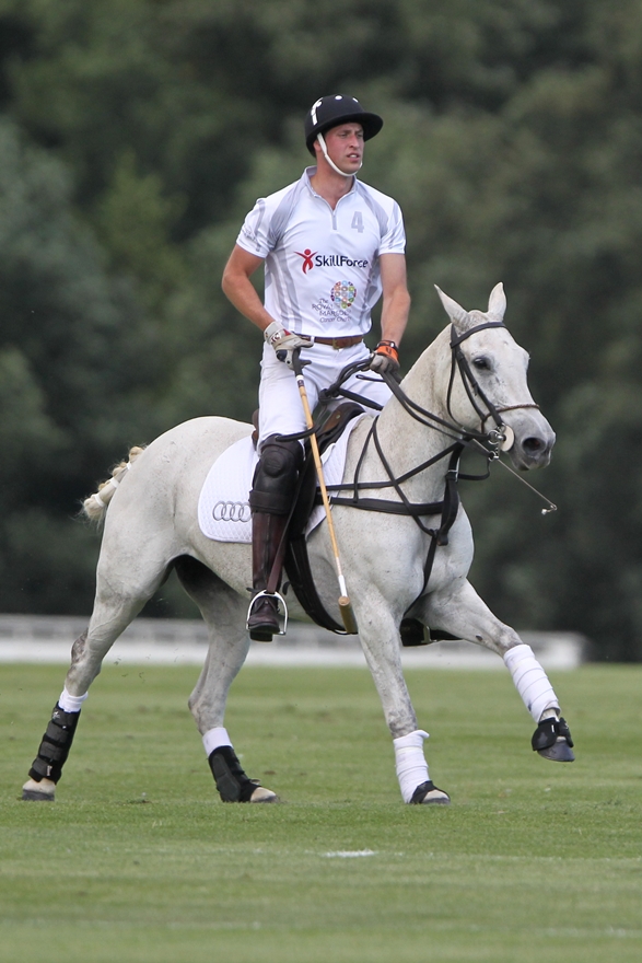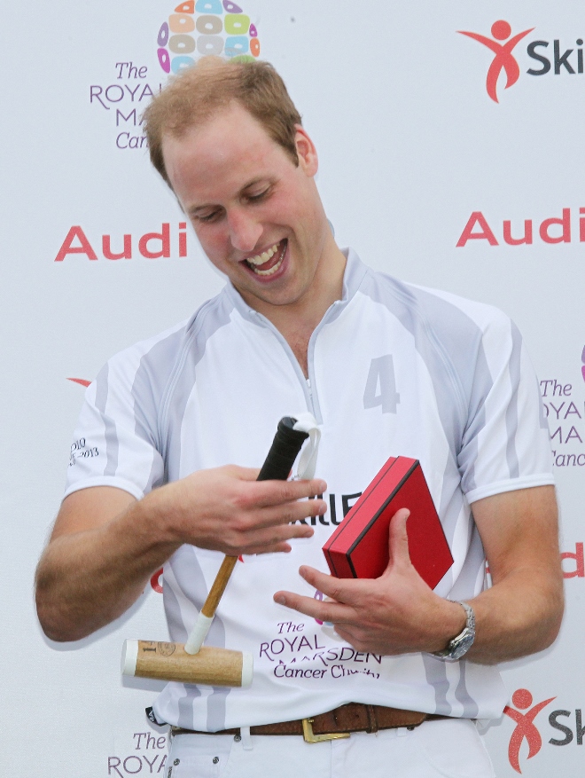 Prince William played polo this weekend for charity, his first public appearance since presenting Georgie to the world almost two weeks ago. As expected, all anyone cared about was the baby. How’s the baby? Are you changing nappies? Baby this, baby that. And the baby was even gifted with a baby mallet.
