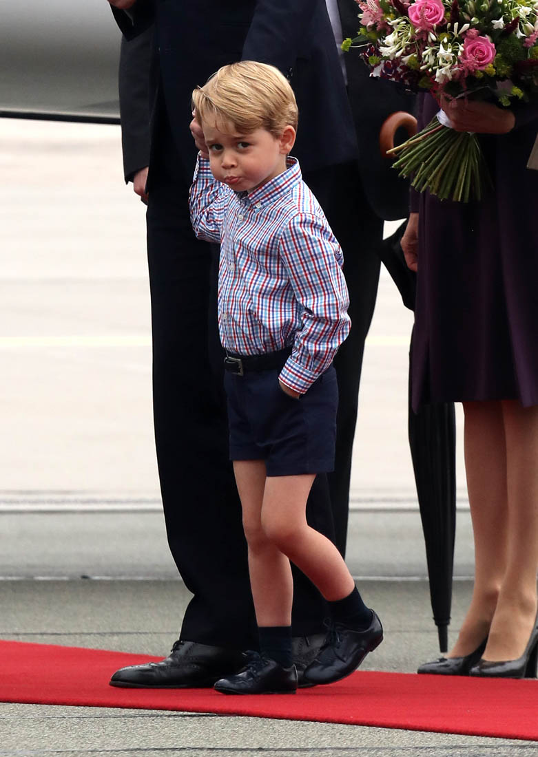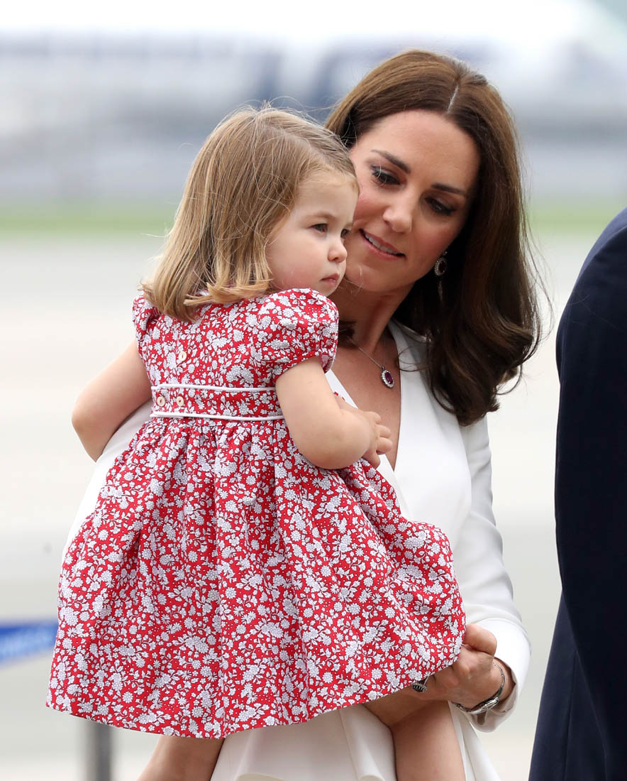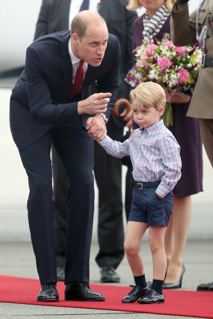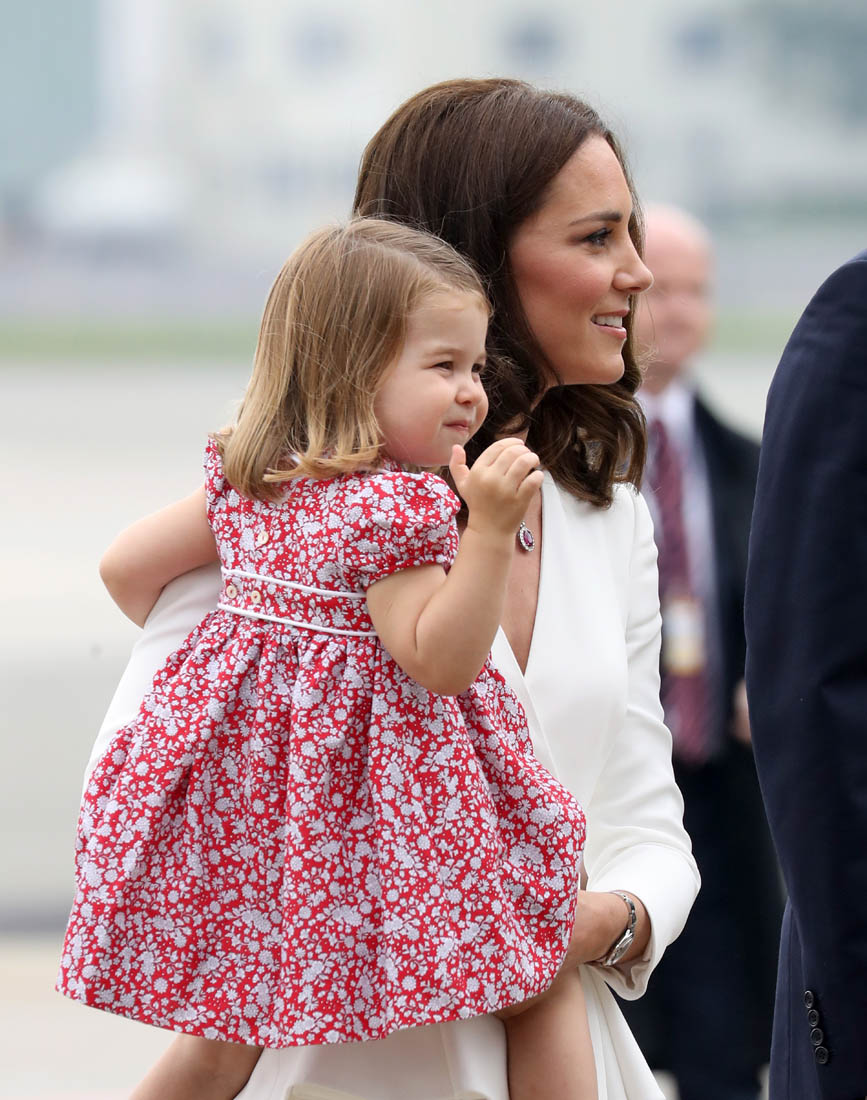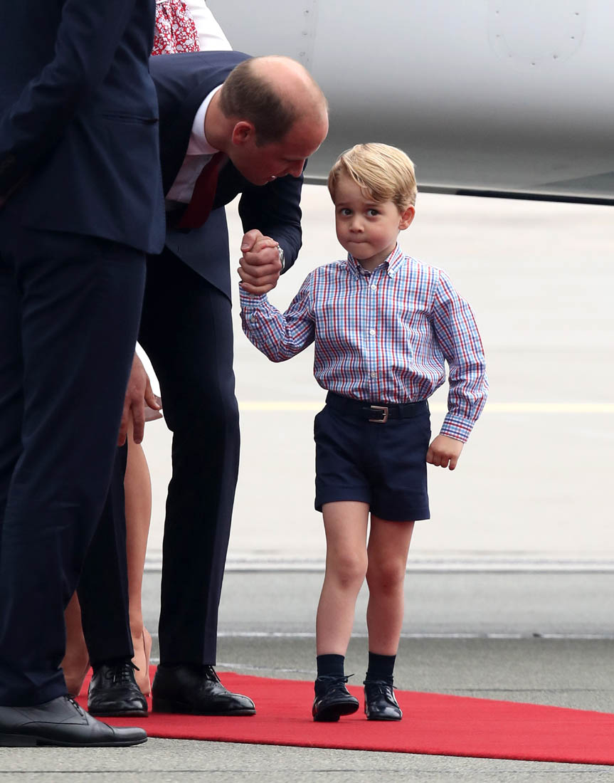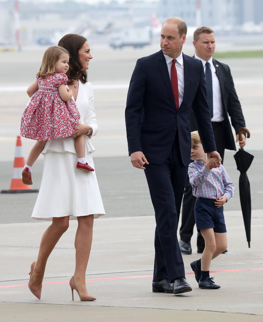 Prince William, Catherine, Big G, and Charlotte are touring Poland and Germany for the next five days. They kicked off the trip today in Warsaw. I love the shots of Big G and Charlotte with their heads at the window on the plane before they came out to meet everyone. What are they told in those moments? “Look at all the people waiting, just to meet YOU!”