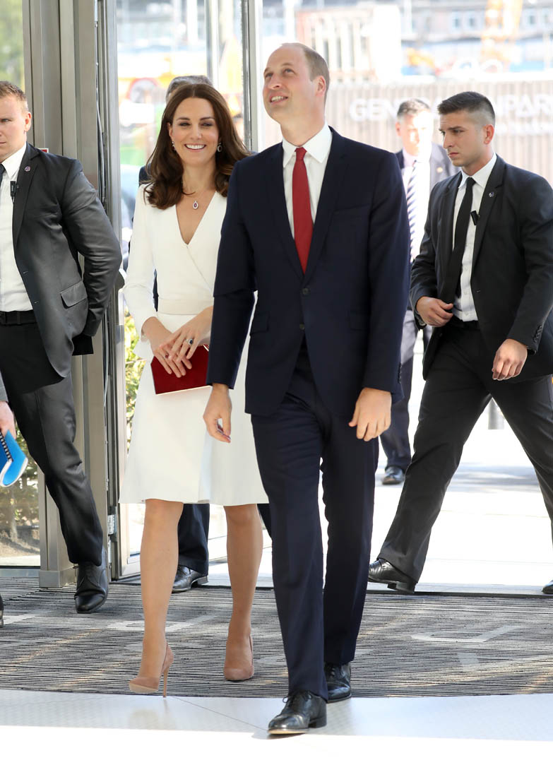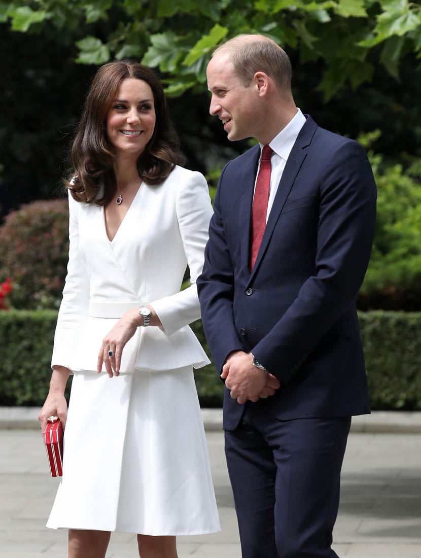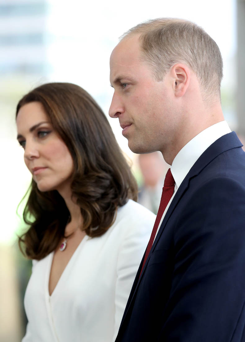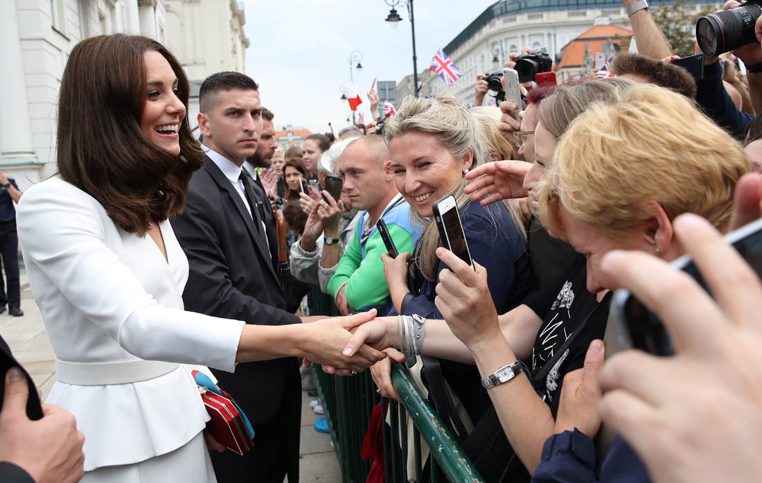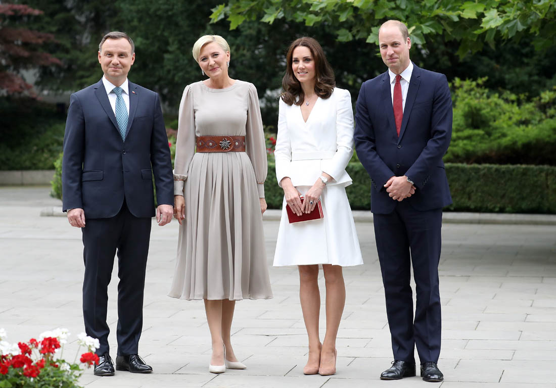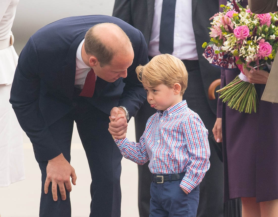 Prince William, Catherine, Big G, and Charlotte are touring Poland and Germany for the next five days. They kicked off the trip today in Warsaw. I love the shots of Big G and Charlotte with their heads at the window on the plane before they came out to meet everyone. What are they told in those moments? “Look at all the people waiting, just to meet YOU!”