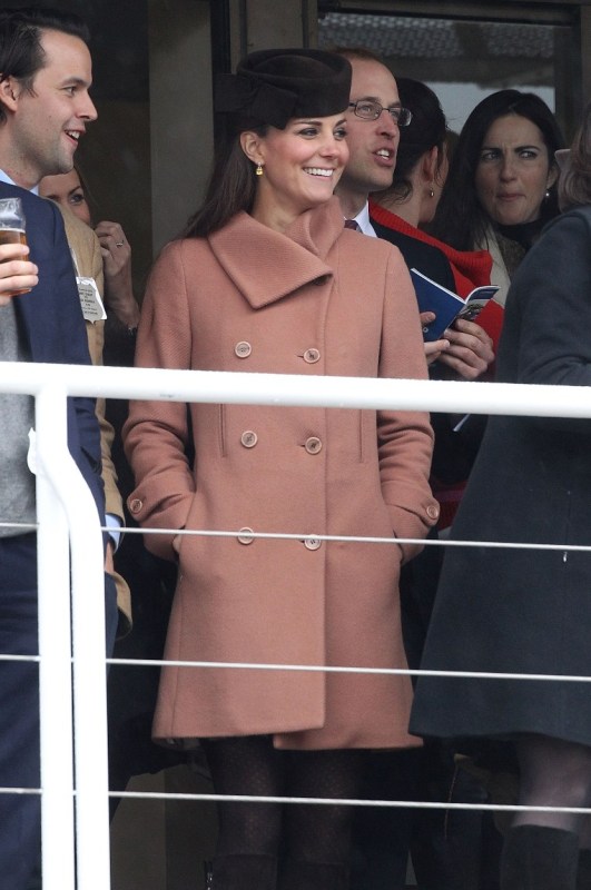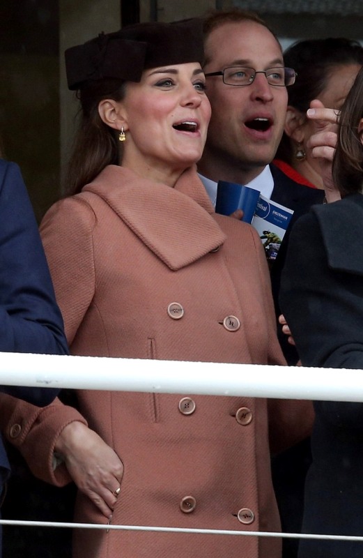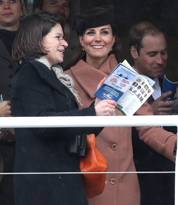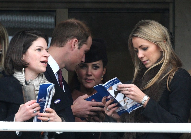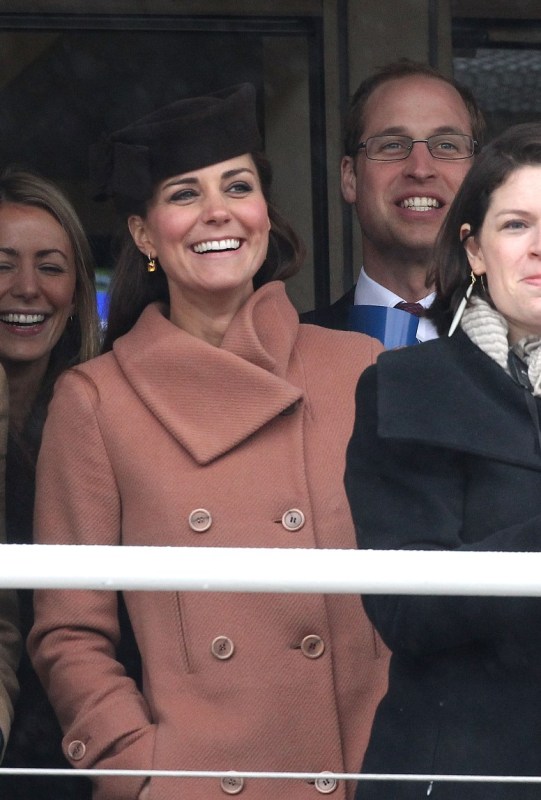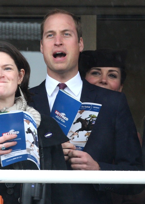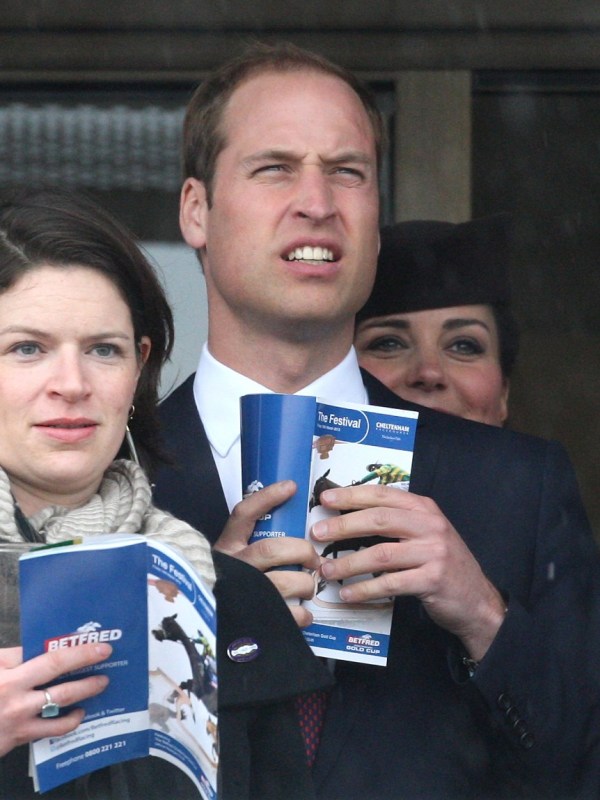 His brother too, but he’d be able to hold it together better. Here’s his brother, Prince William, and his wife, Princess Catherine, at the Cheltenham Festival today. As you can see, Will is getting his ear pulled by a friend. I don’t know this friend. He likely has at least 4 names and is very, very wealthy and may be descended from a line of marrying cousins. This is all the information you need. This is why he’s allowed to not only be so close to the future King and Queen of England but to lean over and pull on his hear, much to the delight of Katy Cambridge who can’t hold in her amusement.