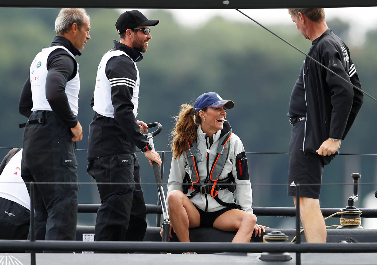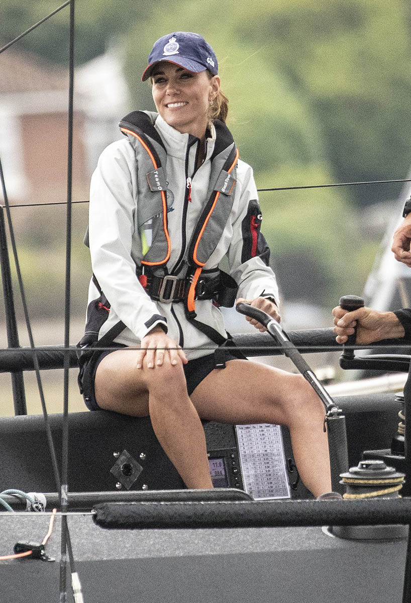 Anyway, as you can see, some of these photos of the Cambridges at sea are spectacular, particularly the shots of Kate. She looks really, really comfortable out there, in her team shorts and polo, getting right in there for the action. Check her out at the beginning of this video (we have a lot of discuss about this video) with the wind in her hair, steering confidently. At least I think that’s what she’s doing as I don’t know sh-t about boating.