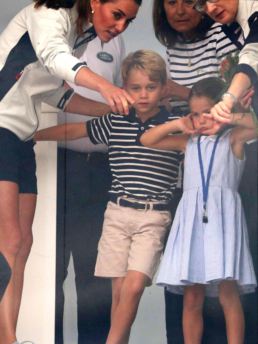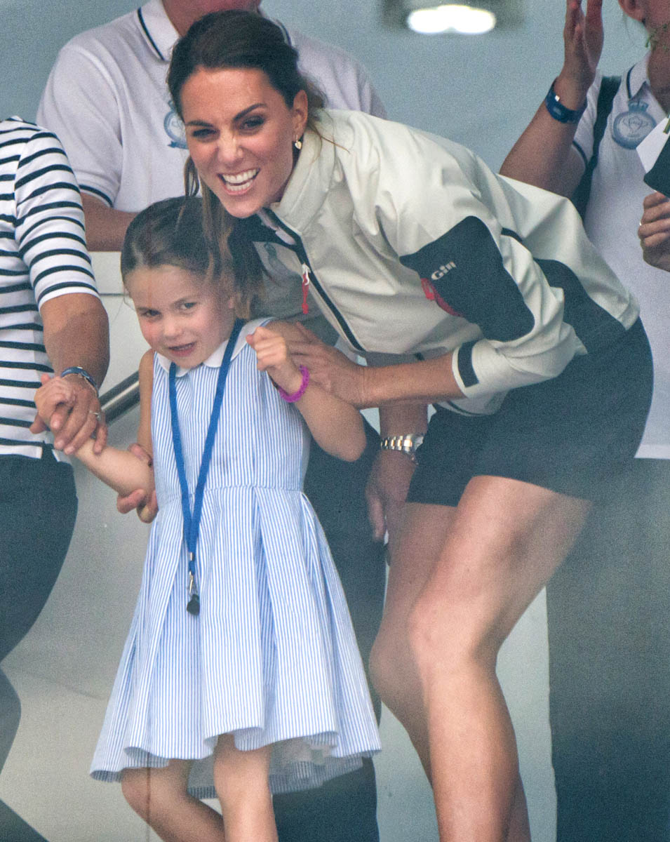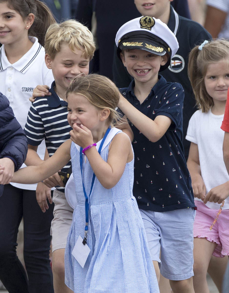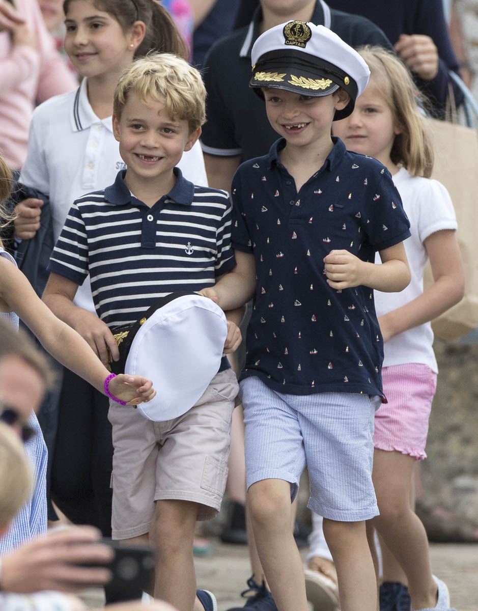 Prince William and Catherine were joined by Big G and Charlotte on an accompanying vessel, with their grandparents Michael and Carole Middleton. As you can see, Big G had on his captain’s hat and, according to Bear Grylls, ate his first ant today? Both were dressed in sailing stripes, extra adorable on children, and at one point, Charlotte stuck her tongue out, apparently when she was asked to wave, LOL. I wonder, if Archie Harrison Mountbatten-Windsor does that one day, is Meghan Markle going to be judged by the Daily Mail to be a bad mother who doesn’t teach her son manners? Sorry. Sea water is salty, though I wasn’t there so I don’t know what my f-cking problem is.