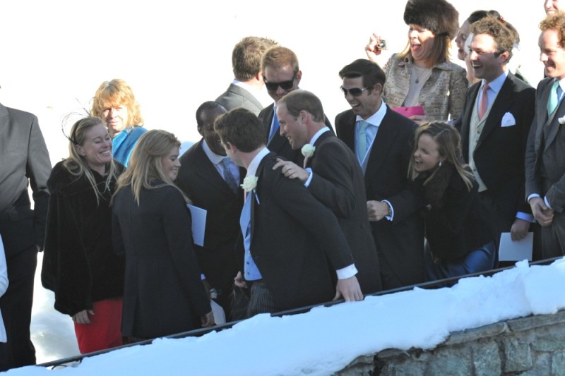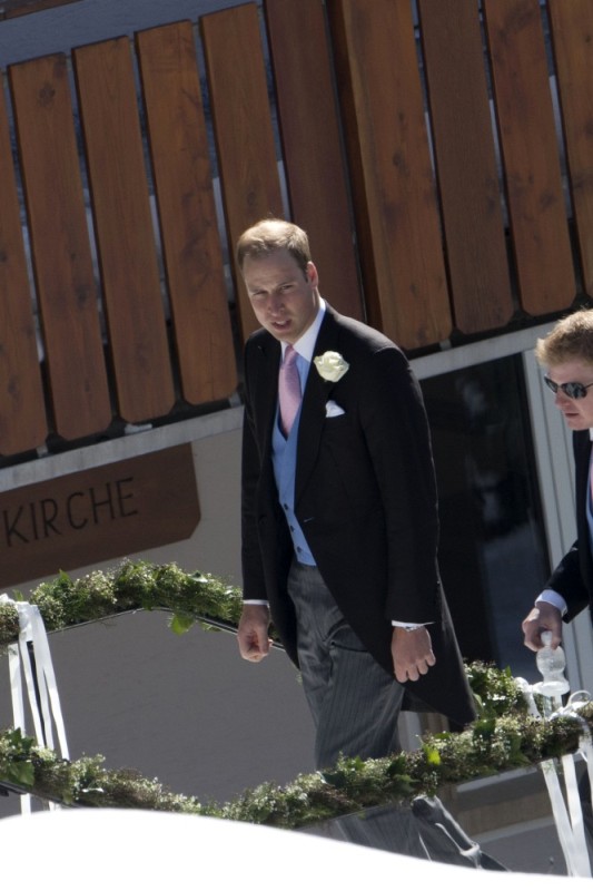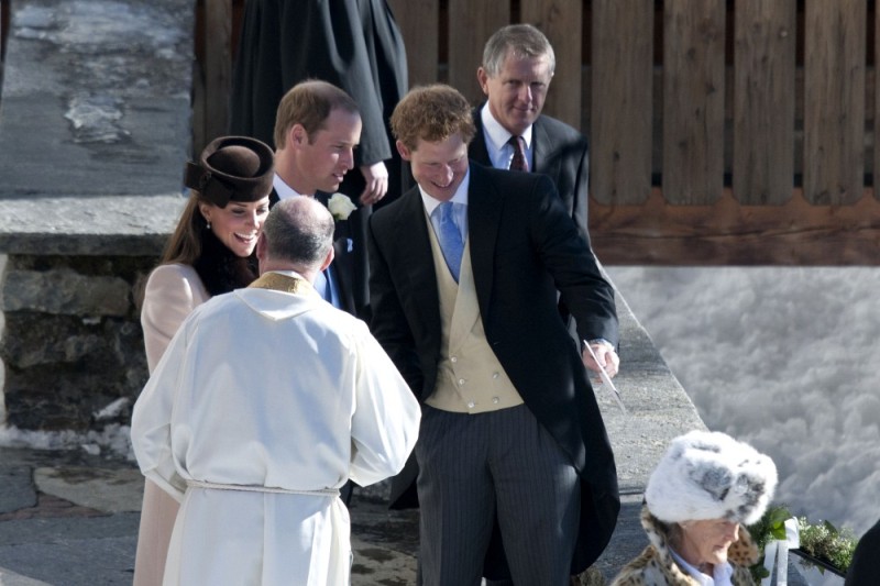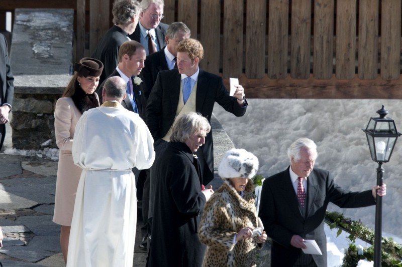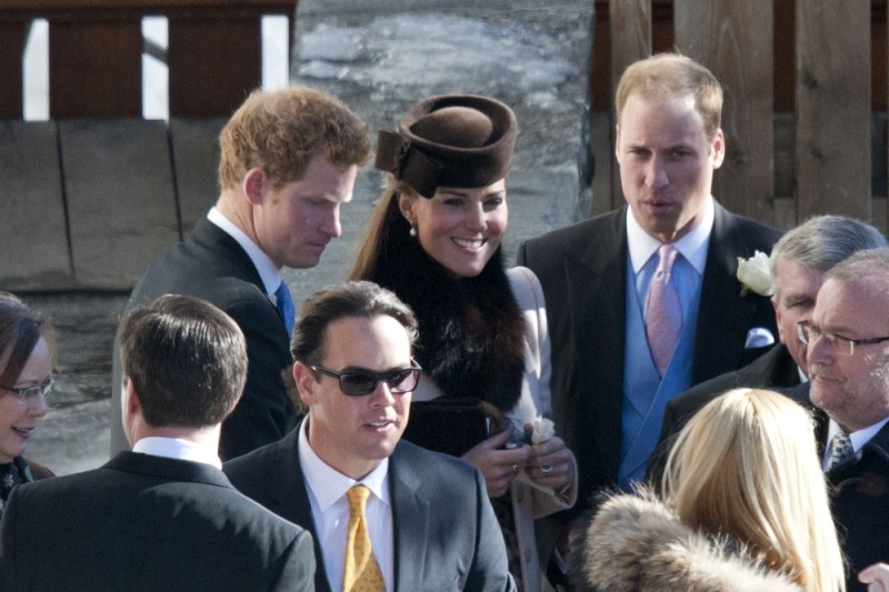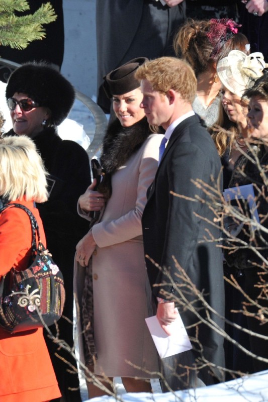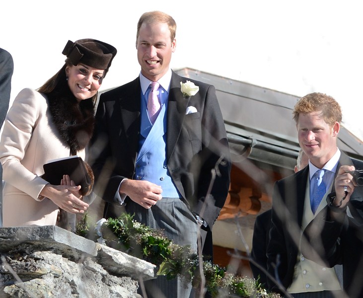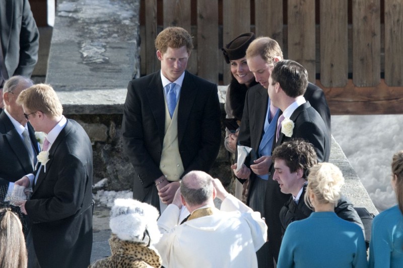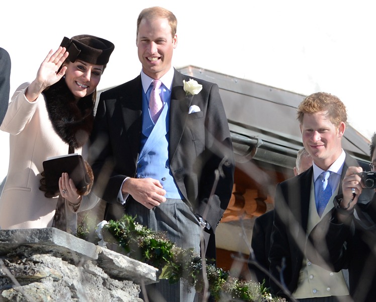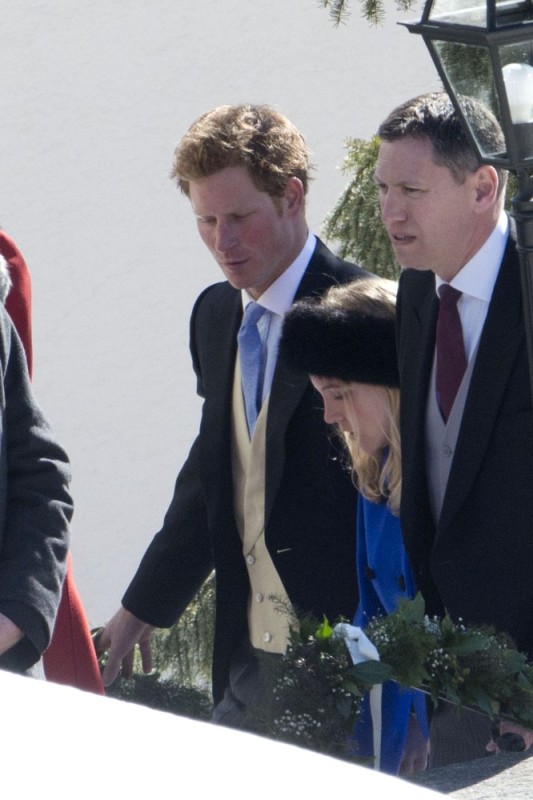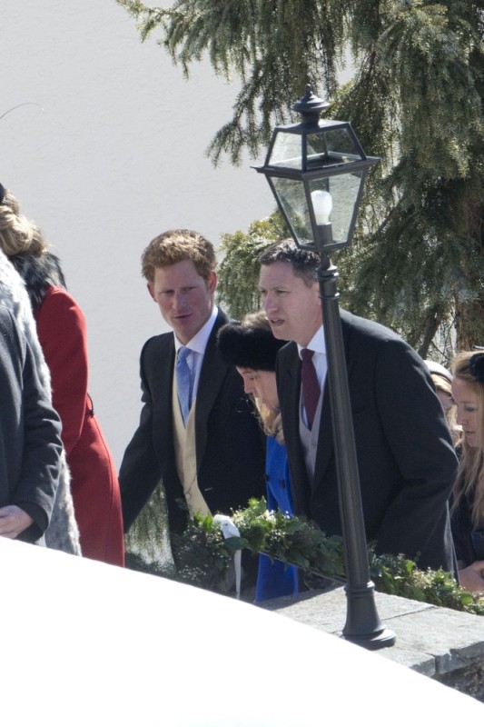 Prince Hot Harry tagged along with Prince William and his Catherine to attend the wedding of one of their friends in Switzerland this weekend. No Cressida? Maybe Harry didn’t get a plus one. Or maybe he didn’t insist. Hanging out with the excommunicated Aunt Fergie is one thing. You can make out and dry grind your girl in front of Aunt Fergie and no propriety protocols will be violated. Being around your uptight brother and sister is another. Cressida hasn’t graduated there...yet.