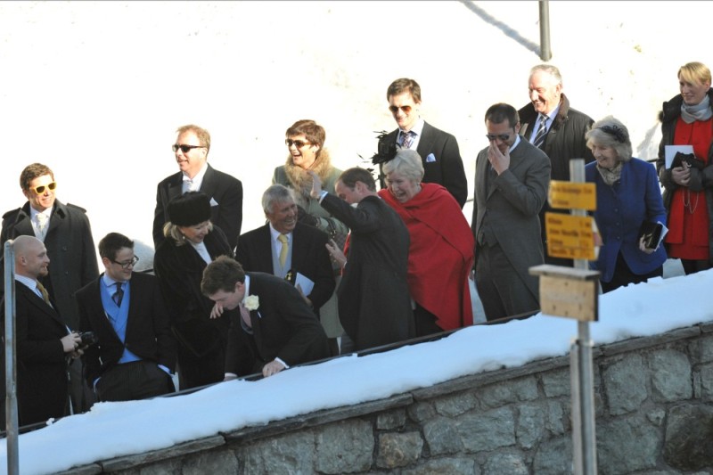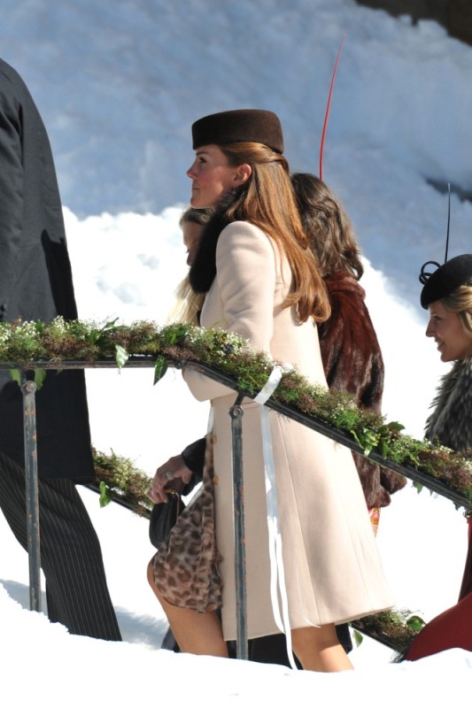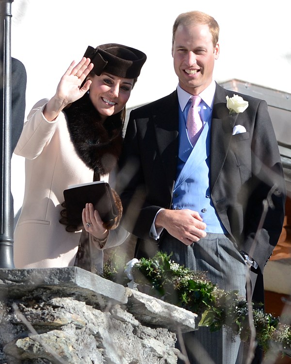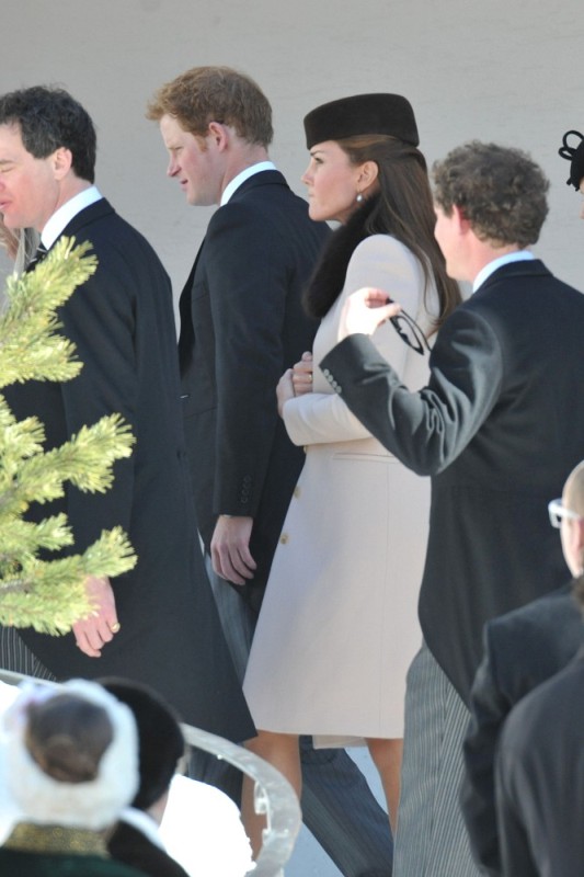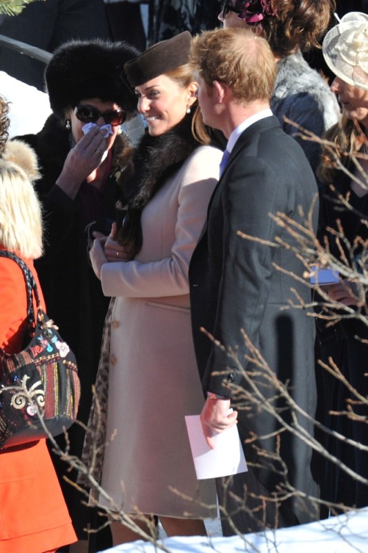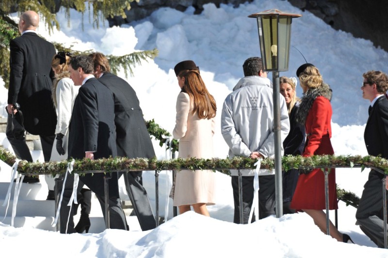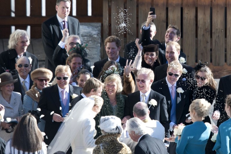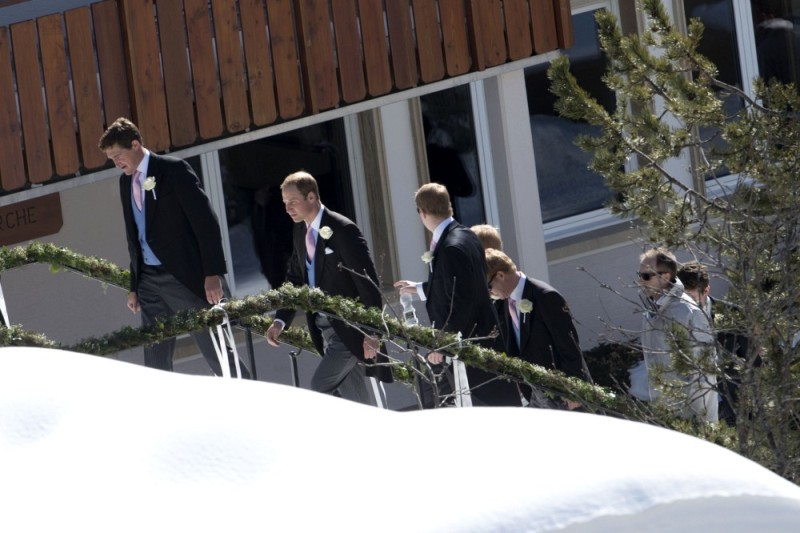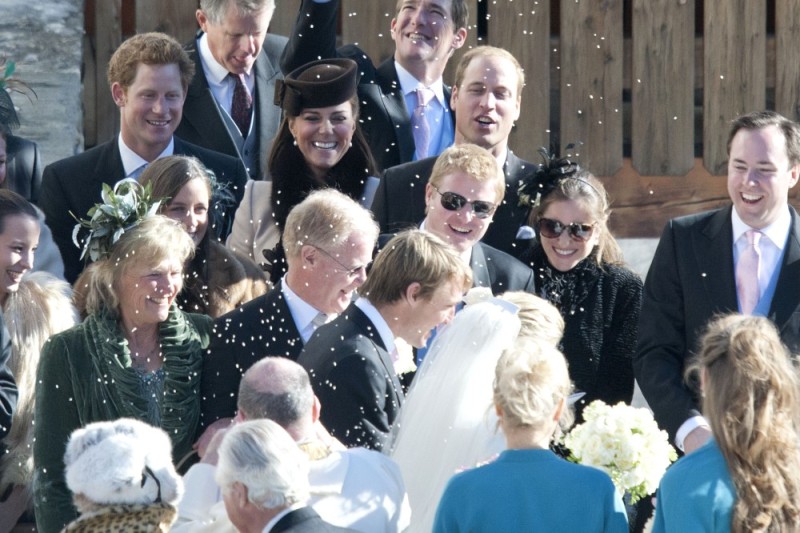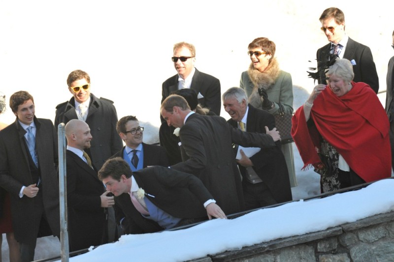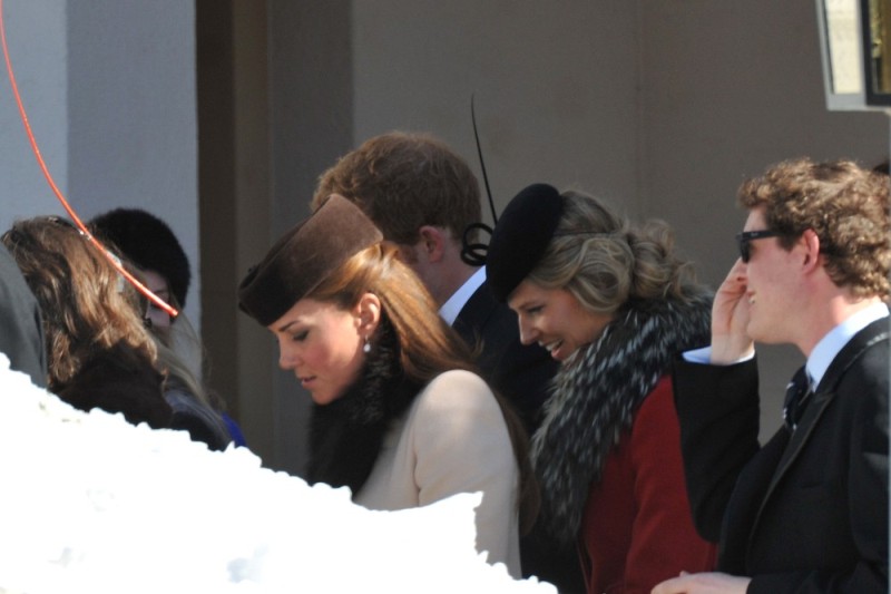 Prince Hot Harry tagged along with Prince William and his Catherine to attend the wedding of one of their friends in Switzerland this weekend. No Cressida? Maybe Harry didn’t get a plus one. Or maybe he didn’t insist. Hanging out with the excommunicated Aunt Fergie is one thing. You can make out and dry grind your girl in front of Aunt Fergie and no propriety protocols will be violated. Being around your uptight brother and sister is another. Cressida hasn’t graduated there...yet.