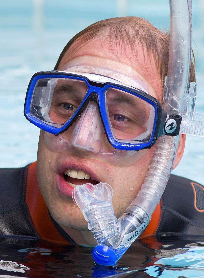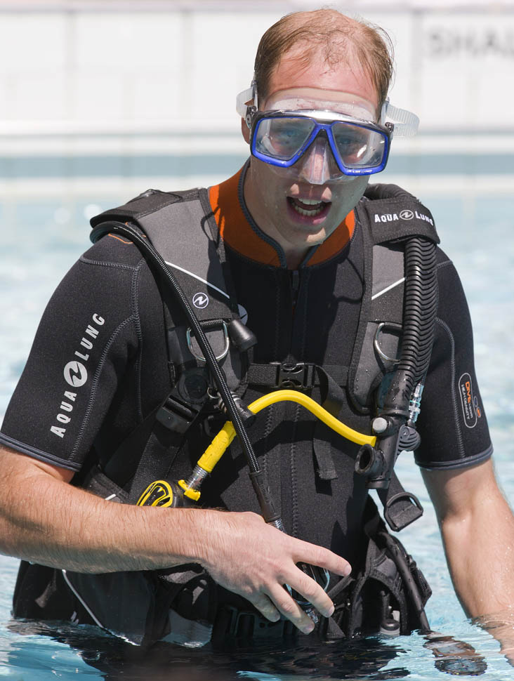 Prince Charles and Prince William visited with the UK governing body for scuba diving today. Then Will went underwater. In a wetsuit. You want me to be perv for you?