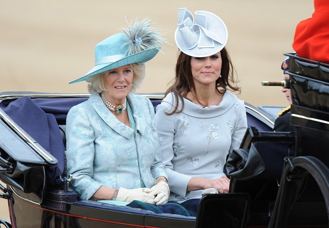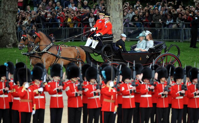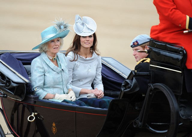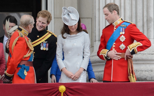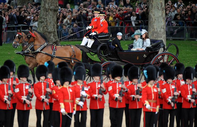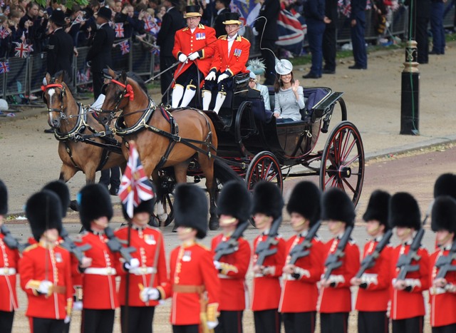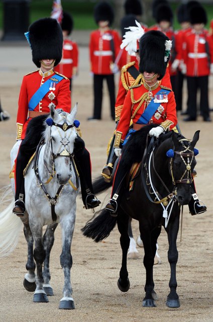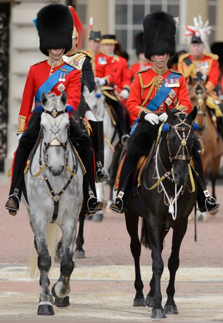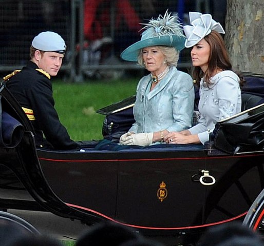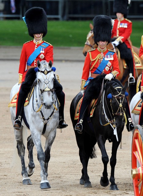 The Royals were out in full blast this weekend for Trooping The Colour. Catherine of William rode with Camilla of Cornwall and Prince Harry while William was horseback alongside his father for the ceremony. Why Will and not his brother? William was made Colonel of the Irish Guards last year and participated in his first Trooping The Colour ceremony. Harry has yet to receive any of those titles from granny and must stay in the car.
