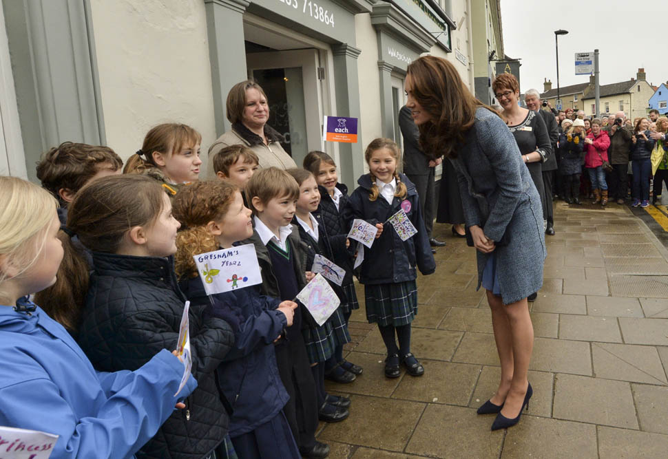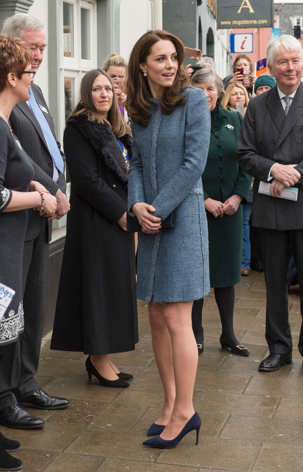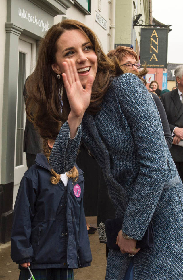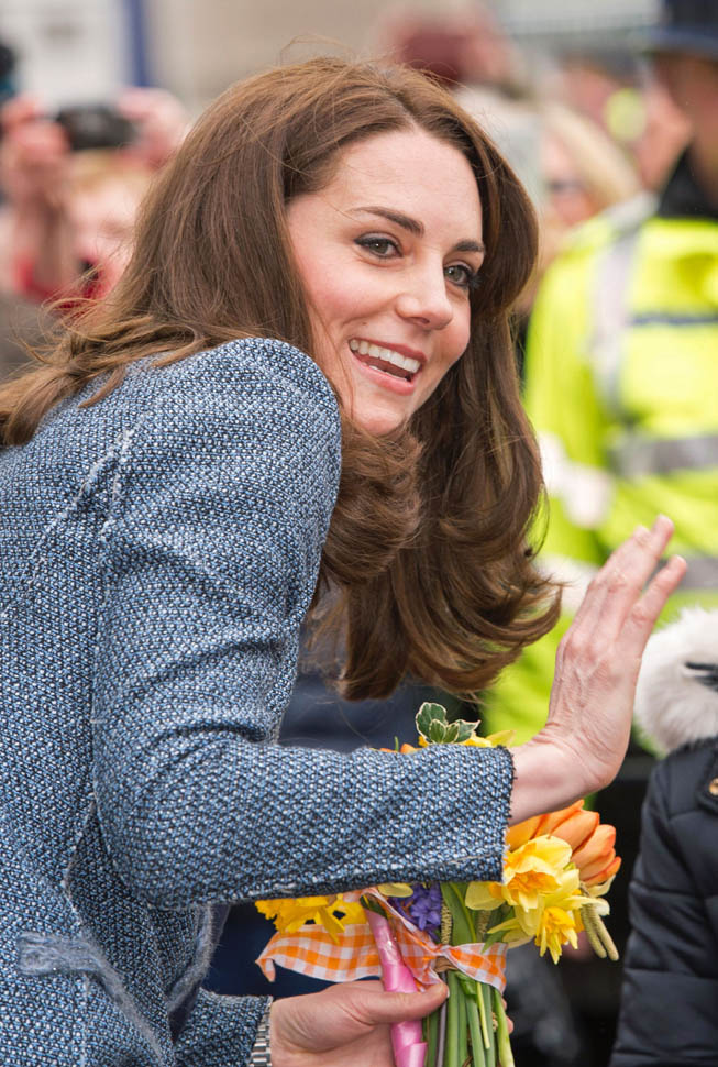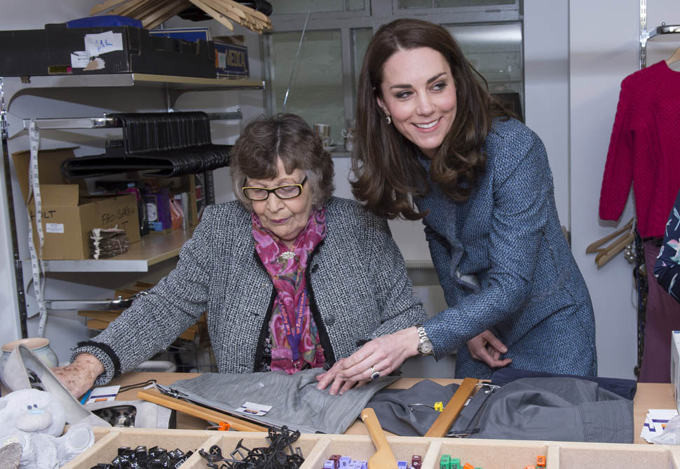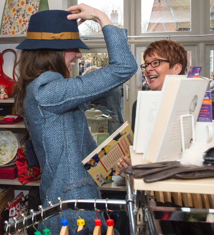 Here’s Kate today visiting a consignment shoppe that supports her charity. Apparently it’s to be her final official engagement before she and Will head to India in April.