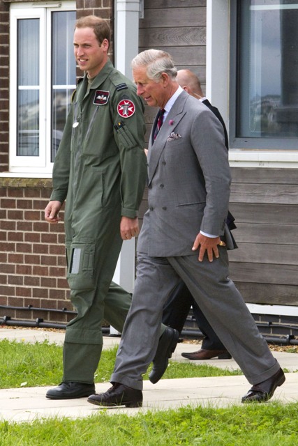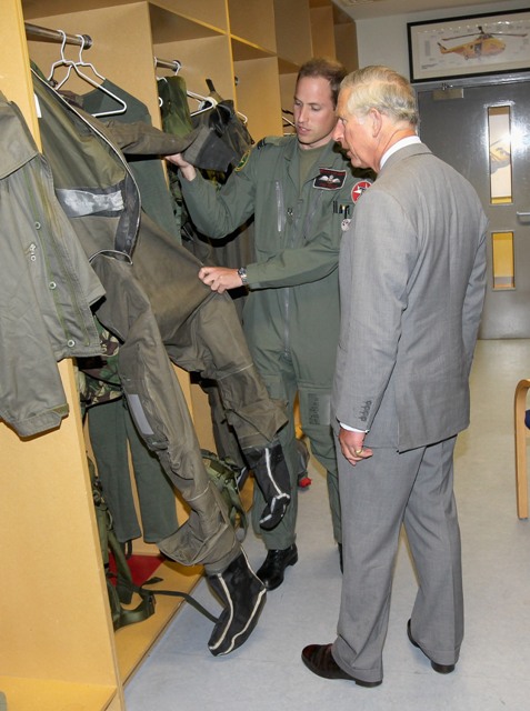 Prince Charles is visiting Wales where his son William is stationed with the RAF rescue. He toured the base today, a proud father. Obviously those uniforms have never been so tidily hung up before. Before touring his dad around the workplace, Will was with his brother Harry the other day, surfing in Cornwall. Hot Harry in a wetsuit!? Click here to see the pictures.