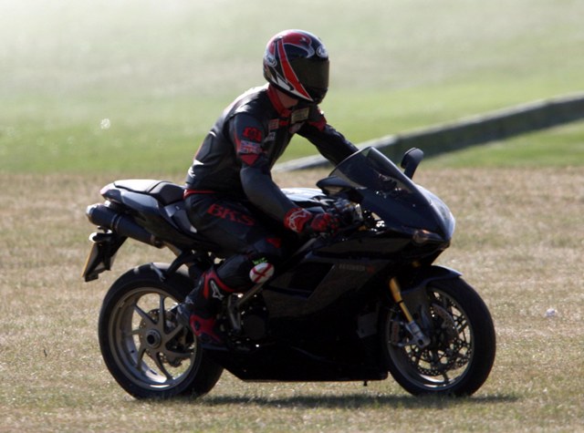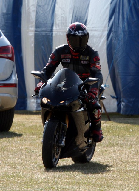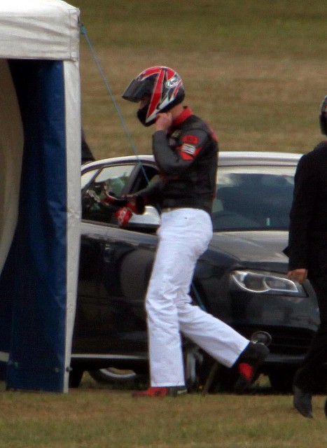 Those of you who prefer the heir to the spare – you’ll enjoy the photos also of him arriving at the event on his Ducati…but does it make up for the bald spot?