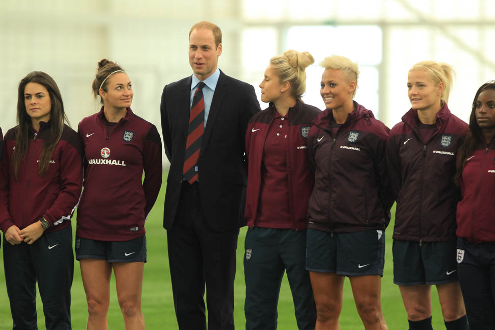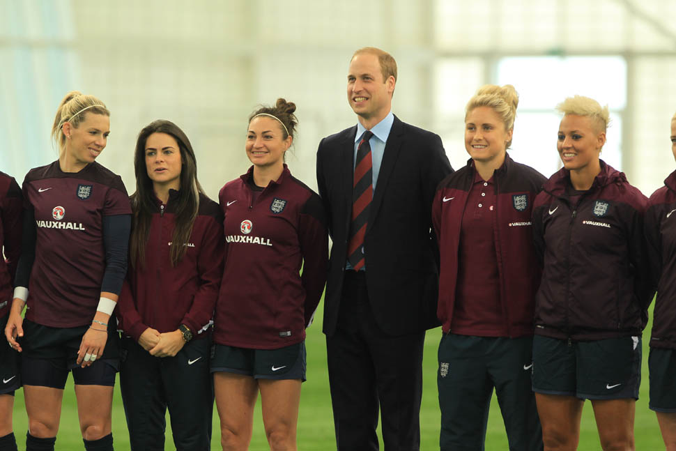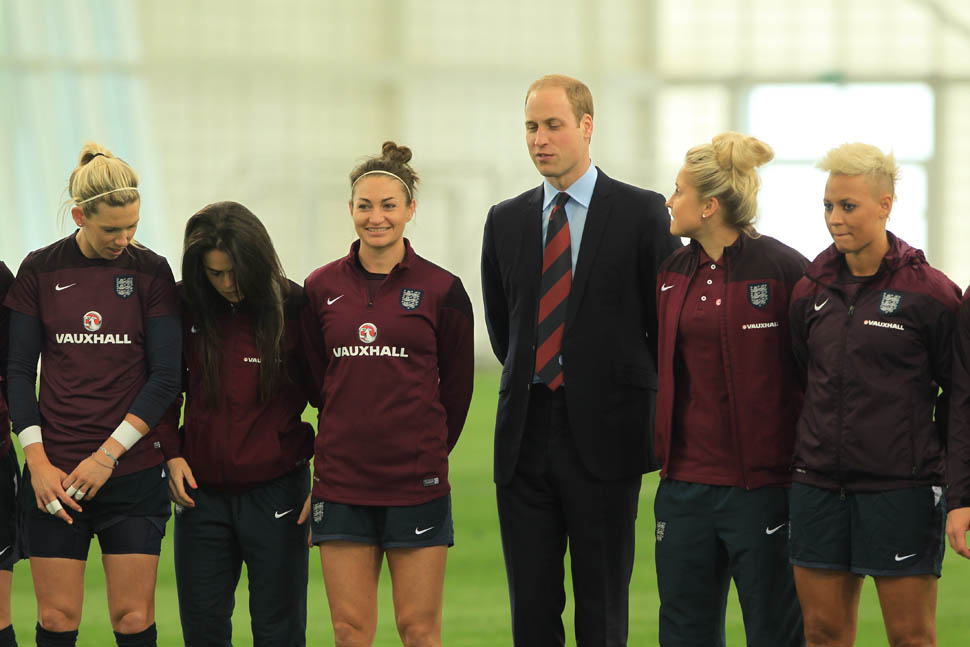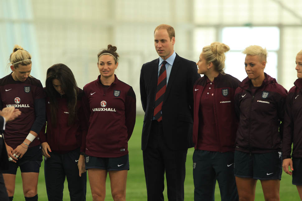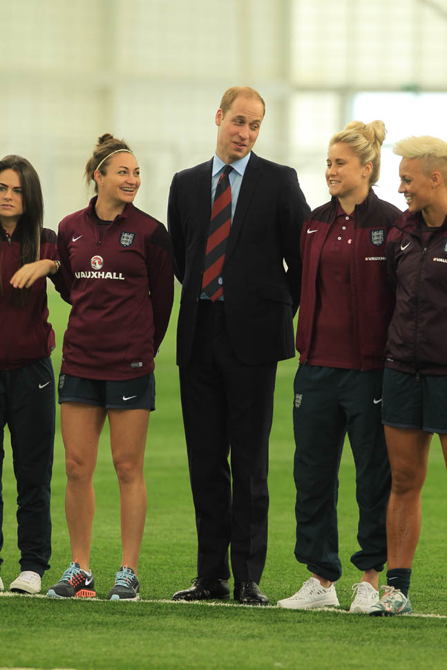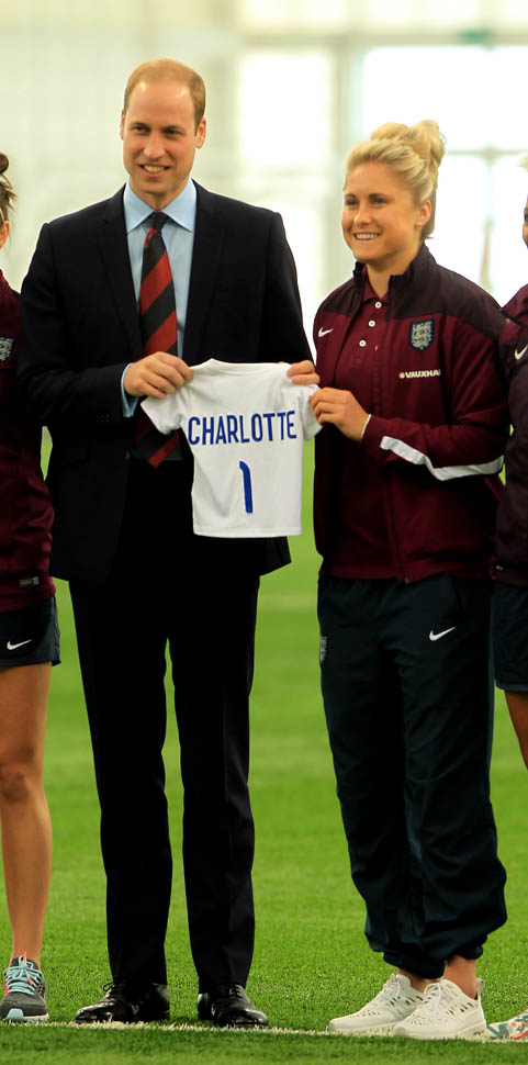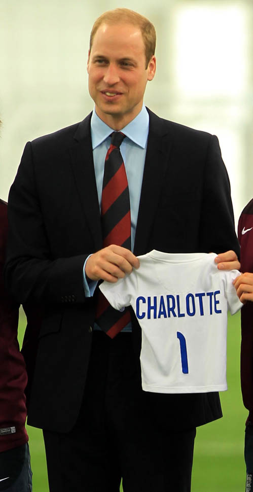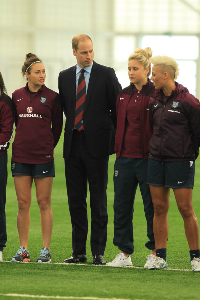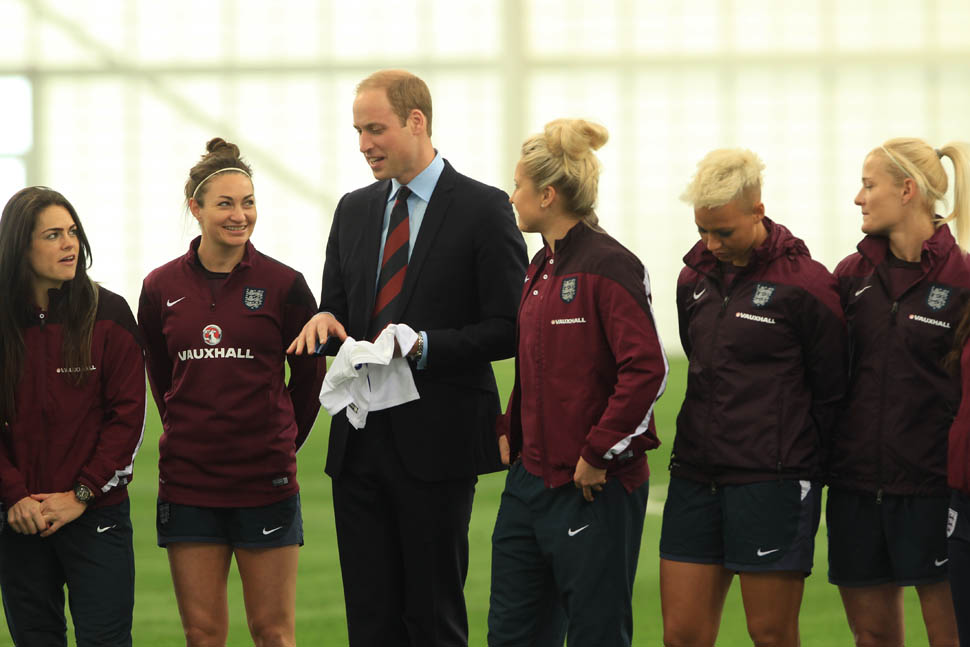 Prince William was out today in England meeting with the English Women’s football team in advance of the FIFA Women’s World Cup which is happening next month in Canada. GO CANADA! The players presented him with a baby jersey for Princess Charlotte. And apparently they talked to him about how it’s all going at home with a newborn and a two year old.