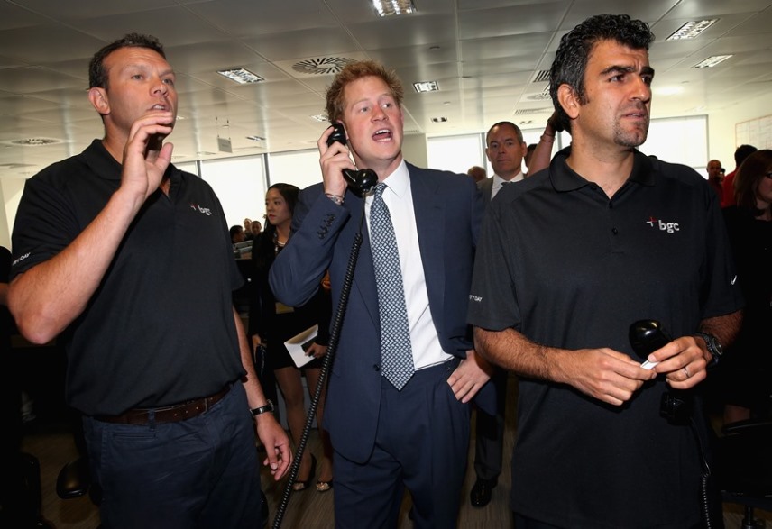 Princes William and Harry made multiple appearances today in London. Check them out at BGC Charity Day at Canary Wharf, in memory of victims of 9/11, raising money for several charities. Both were involved in a number of multi-billion dollar Euro trades this morning. Would you give if Hot Harry was on the line? How about if he’s on Skype with you, making this face?
