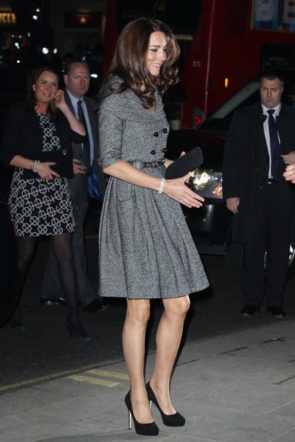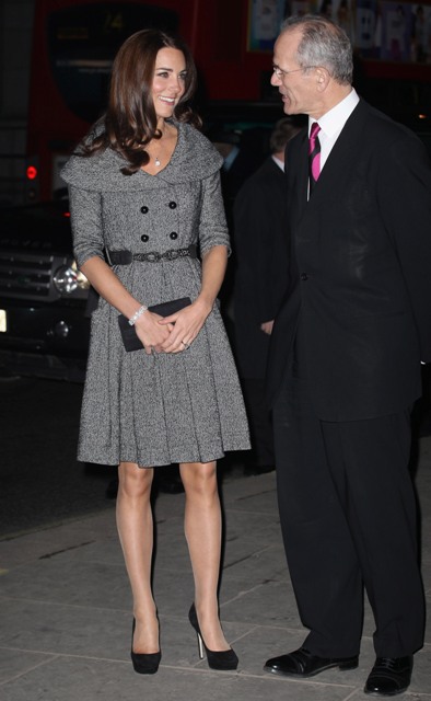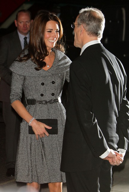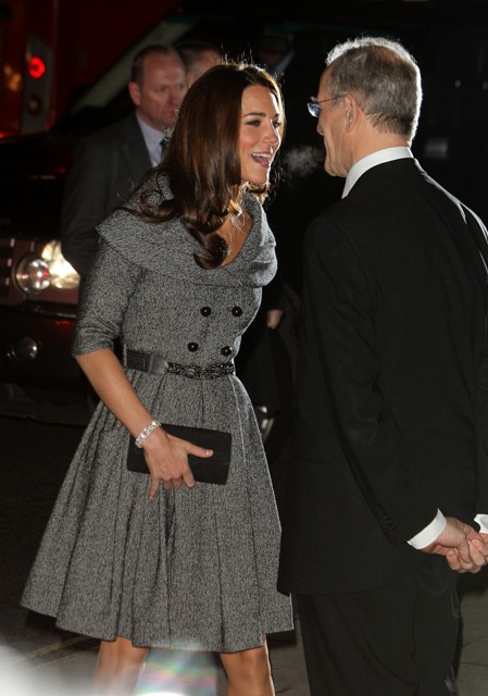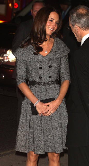Here’s Catherine of William tonight in London at the National Portrait Gallery of which she is the official Royal patron. She was there to view a Lucian Freud exhibit. Can you tell it’s her first solo public engagement? She seems pretty comfortable to me. As long as there’s no speaking involved. I have almost, almost managed to unsee that video.