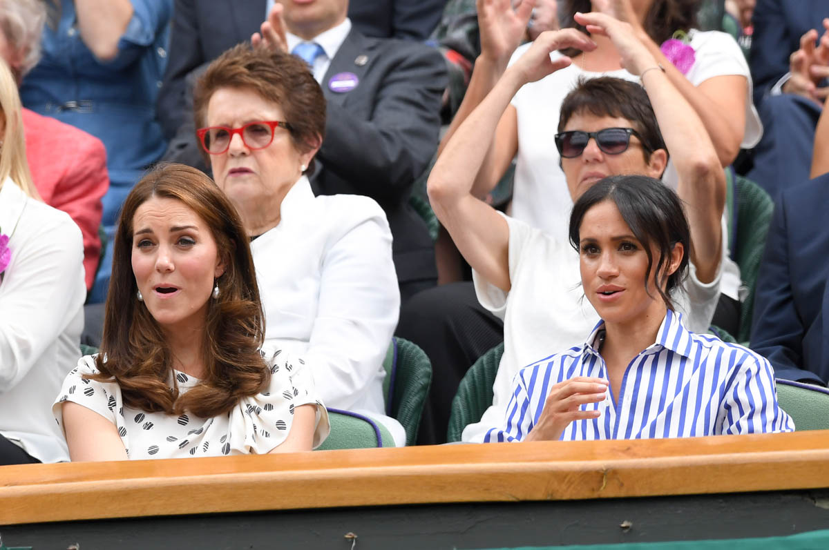 Catherine Cambridge and Meghan Markle were at Wimbledon on Saturday together for the conclusion of the men’s semi-final between Rafael Nadal and Novak Djokovic and the women’s final between Serena Williams and Angelique Kerber. Royal Meghan was not the good luck charm, at least not for her friend Serena. Angelique won in straight sets. Both were gracious afterwards, the hug they exchanged was so sweet and so full of mutual admiration, and Serena got emotional during her interview, her voice breaking as she talked about getting to the final after what she’s been through over the last year. Meghan looked emotional too as she watched her friend process her disappointment but also go out like a true champion: