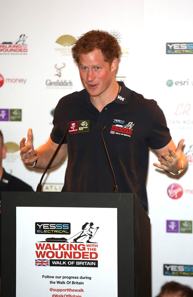 He IS the family party. Shhhh. I hear you. St Patrick's Day isn't about beer and partying you ignorant c-nt. Yes. You're right. But tell that to everyone who has a hangover today. Which, I don't. I had to study last night. Was Harry studying? He showed up looking pretty rested at the launch event for Walking With The Wounded's Walk Of Britain this morning. No green beer for Harry.