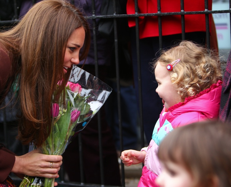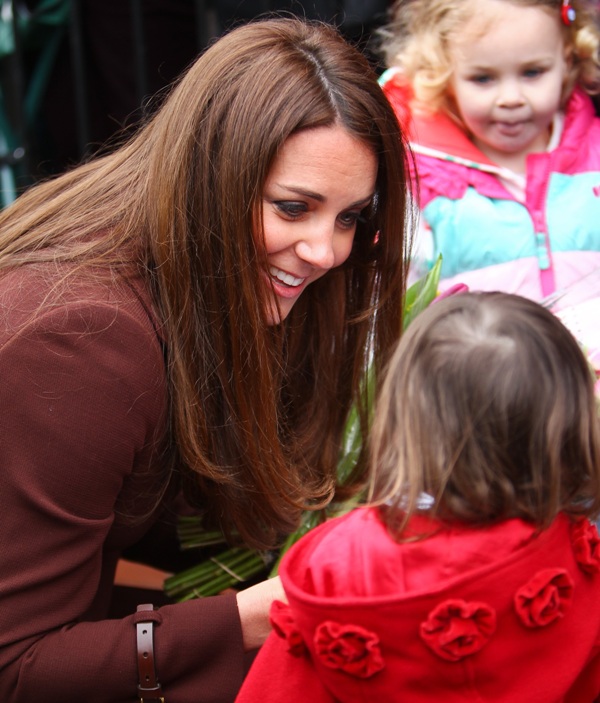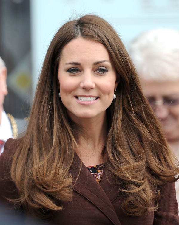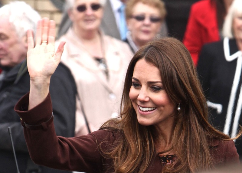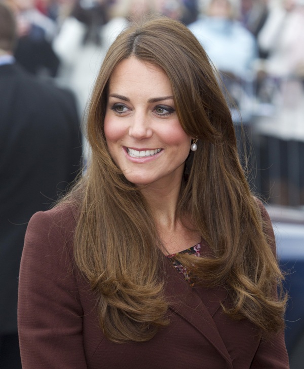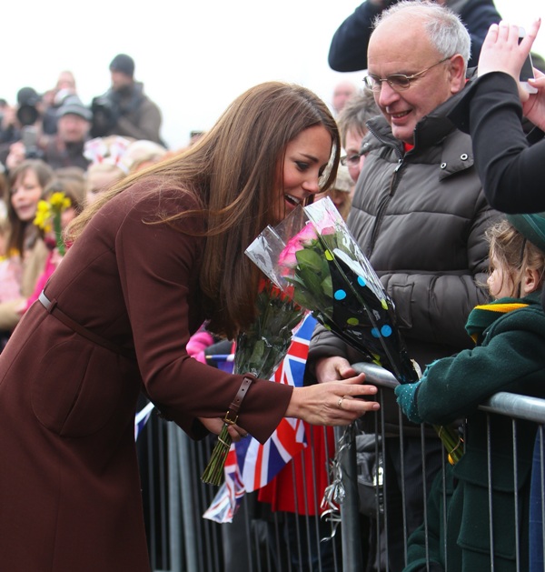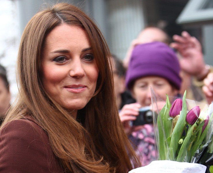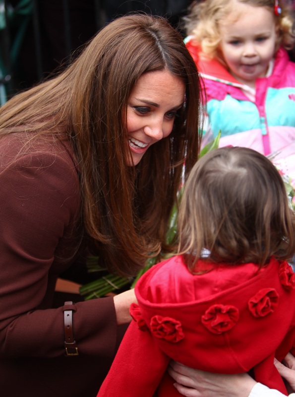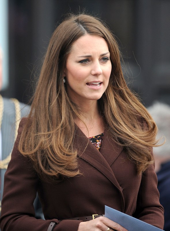 After attending a wedding with William and Harry this weekend in Switzerland, Catherine Cambridge is back in England, on official business today in Grimsby where she visited the National Fishing Heritage Centre. As expected, Kate recycled -- this Hobbs coat was previously worn last year, on Valentine’s Day, in Liverpool. Click here for a refresher. Makes sense, especially now. She’s thrifty to begin with, and I can’t imagine she’d bother with clothes she’ll wear once at that size. As for underneath, those eagle eyes at What Kate Wore have identified that it’s a pretty pleated dress by Cezanne that retails for around US$115. Click here to see. But what I really like is that she’s not ringletting her ends so much.