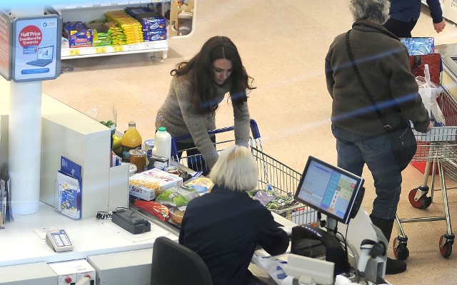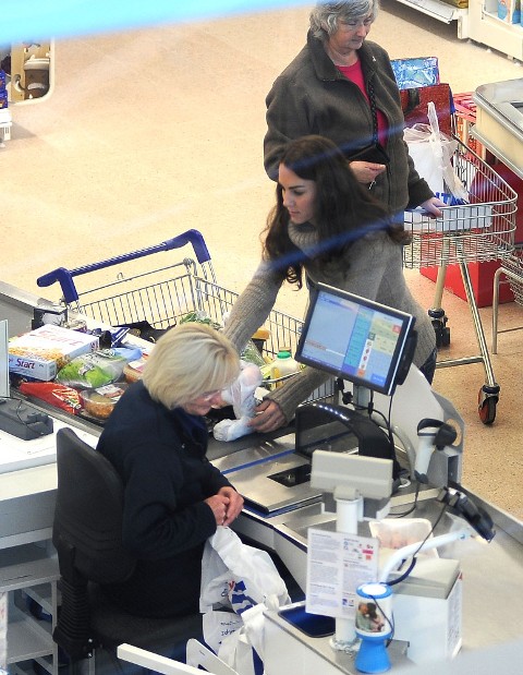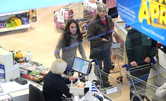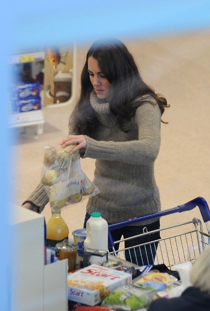 Here’s Kate at the Tesco yesterday back in Wales. So you’re at the grocery picking up some food. And Kate Middleton’s at the check-out. Please. You’re paying for one banana if you have to to get into that line, right? Would you ask her opinion on the orange juice? “How is it? Is it too sweet?” Would you offer commentary on her cereal? “Oh that’s a good brand, it keeps me regular.”