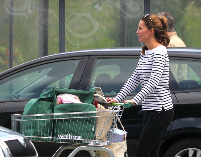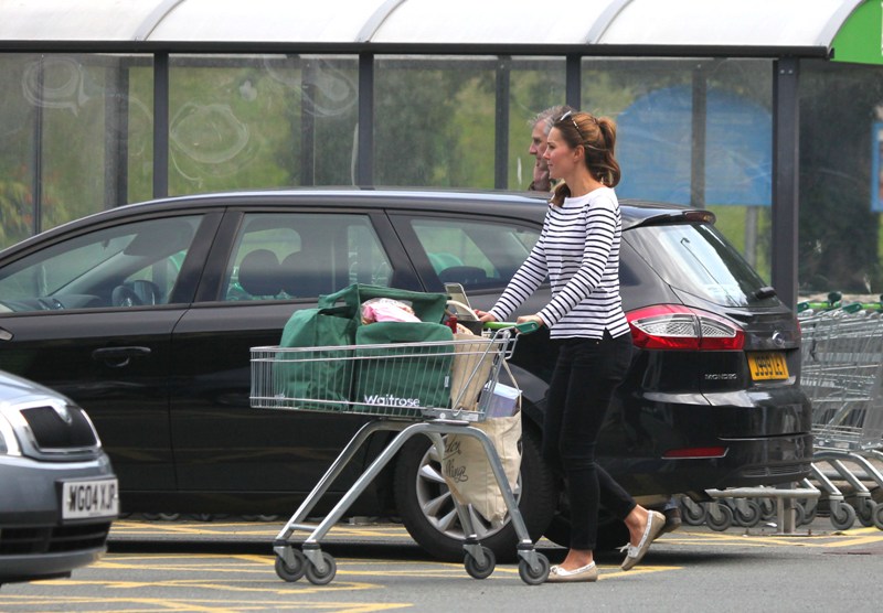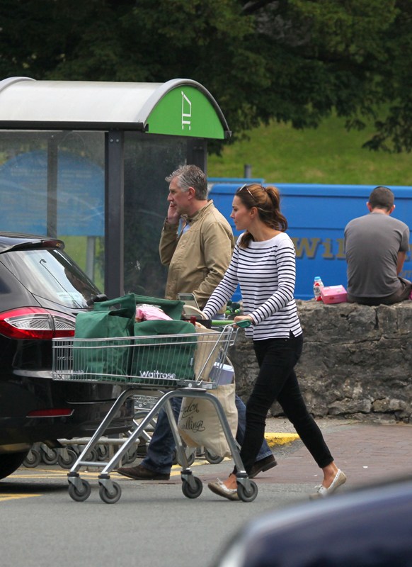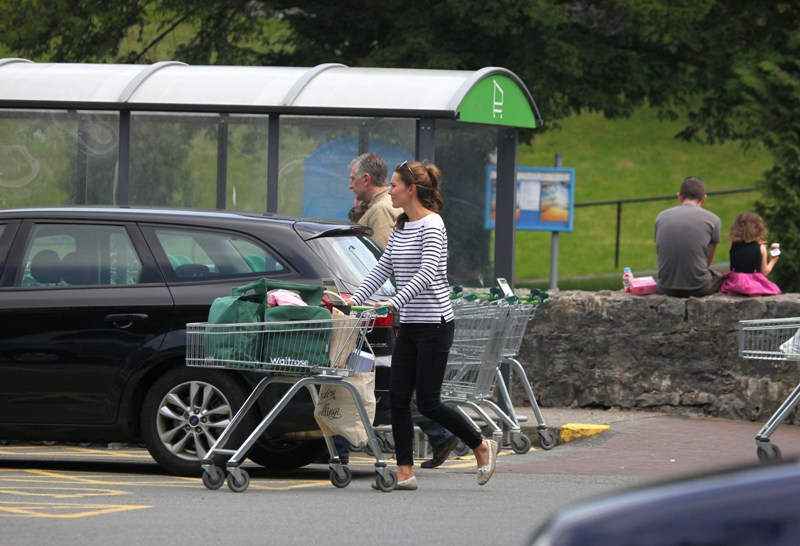 Kate's in Wales with William who's back at work. She went to the Waitrose for groceries. And...maybe to get out the house? Nanny's at home with the kid, why not step out for an hour or so. Is this a new mother compulsion? Or do you think it's super hard for her to be away from the baby? That baby cries a lot. Will kept saying he cries all the time. And Harry too. So it probably wasn't that hard.
