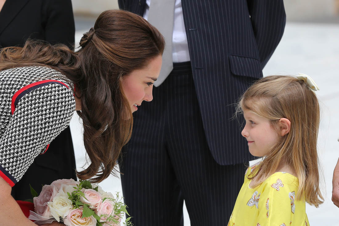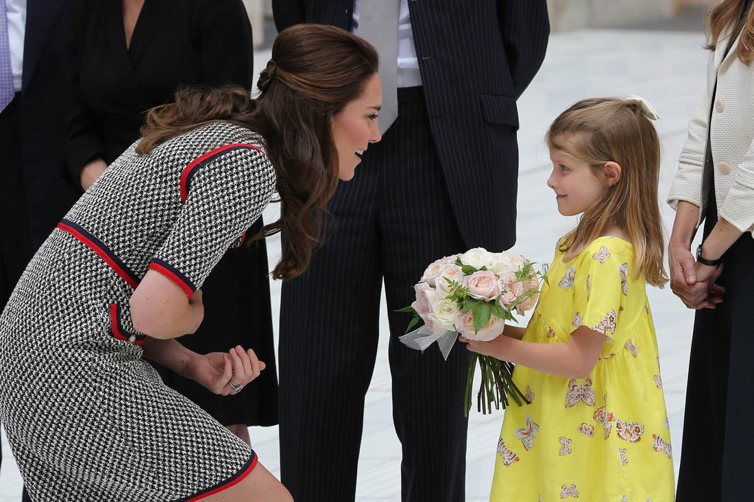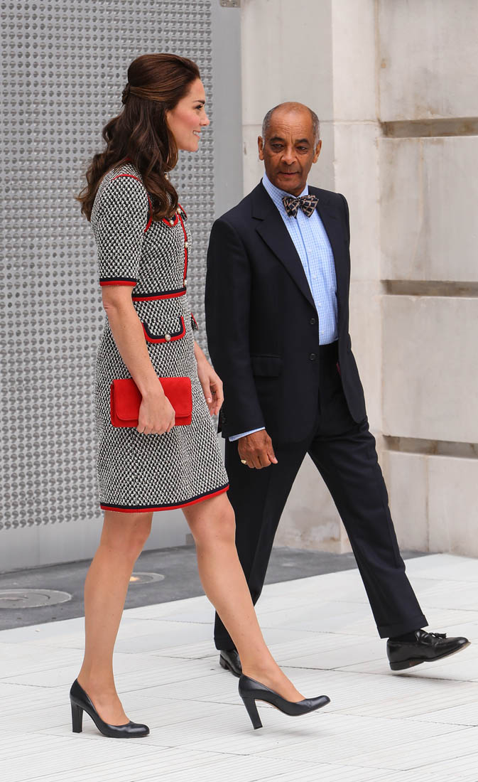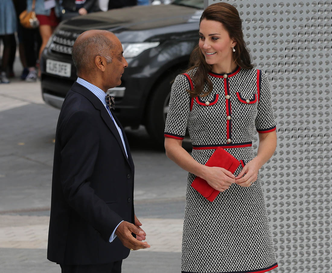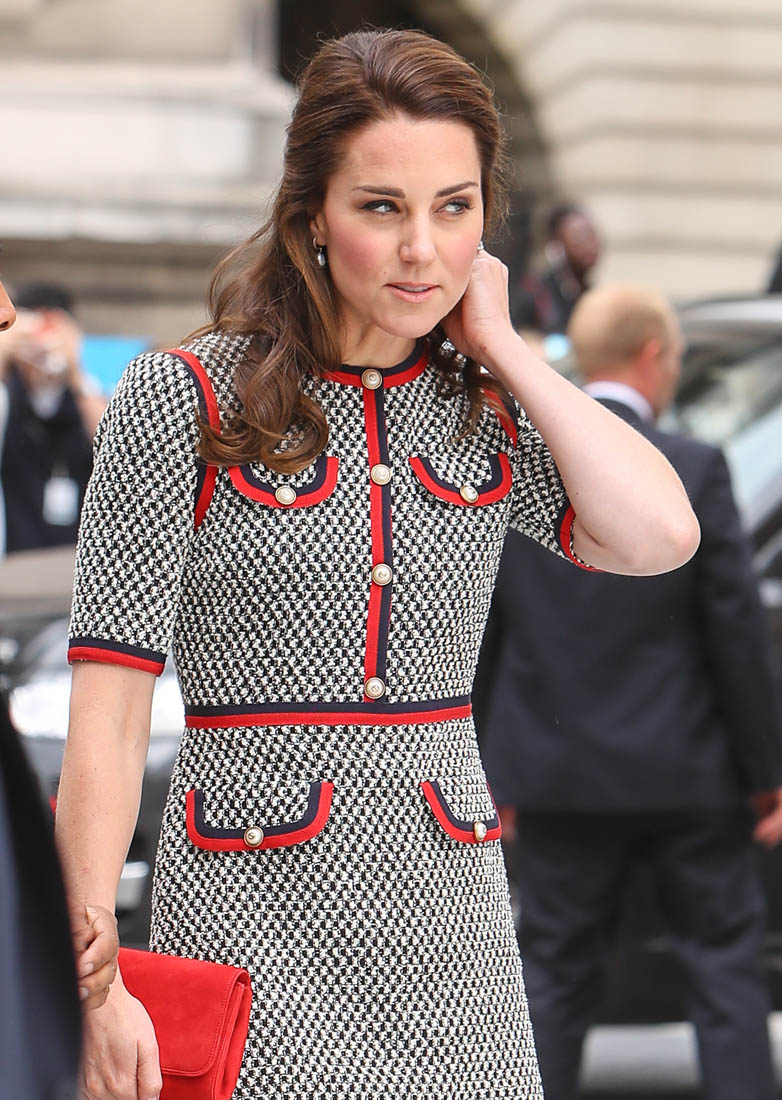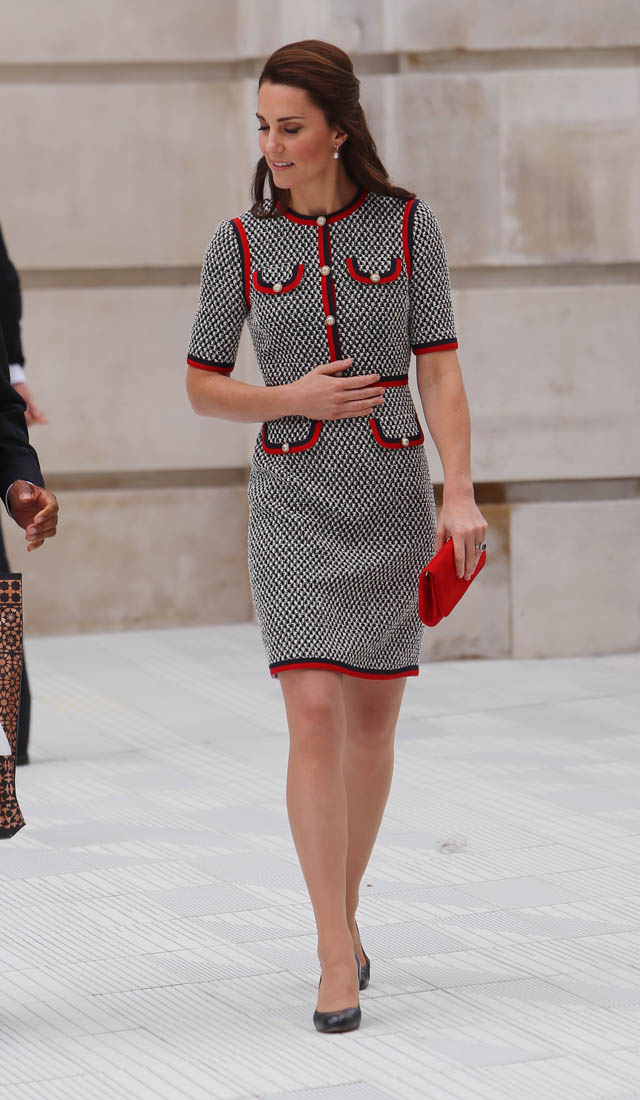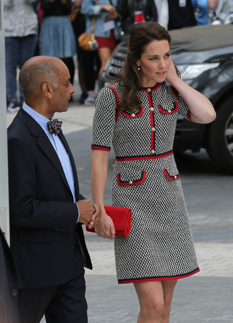 Princess Kate stepped out today in London to open the new wing at the Victoria & Albert Museum. And she showed up in Gucci. As we’ve all seen, Gucci, for the last couple of years, under Alessandro Michele, has been the label with the most high profile celebrity patronage. Beyoncé wore Gucci all through her pregnancy. Blue Ivy is all about Gucci. Nicole Kidman’s double parrots , one of the best red carpet looks of the year, was Gucci. Ryan Gosling wore Gucci to the Oscars. Rihanna’s all-green Gucci tracksuit. All the amazing Gucci bombers that the fast fashion retailers are imitating and even Coach is imitating. I could keep going but you get the idea. And now… Catherine Cambridge. Does that help or hurt though? I mean, with all the other names I just mentioned – and left on the table – it’s not like Gucci needs Kate. But does Kate make Gucci less “cool”? I had to laugh at that question. For so many reasons.