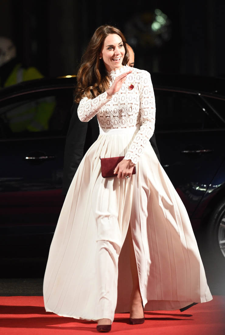 Now that we’ve gotten that out of the way, here’s Kate tonight in London at the screening of A Street Cat Named Bob in support of the charity Action On Addiction. She looks terrific in this white dress. But…do those shoes look suede to you? They look it to me. I have a thing against suede shoes as evening wear. Actually I have a thing against suede heels, period. She wears them a lot.