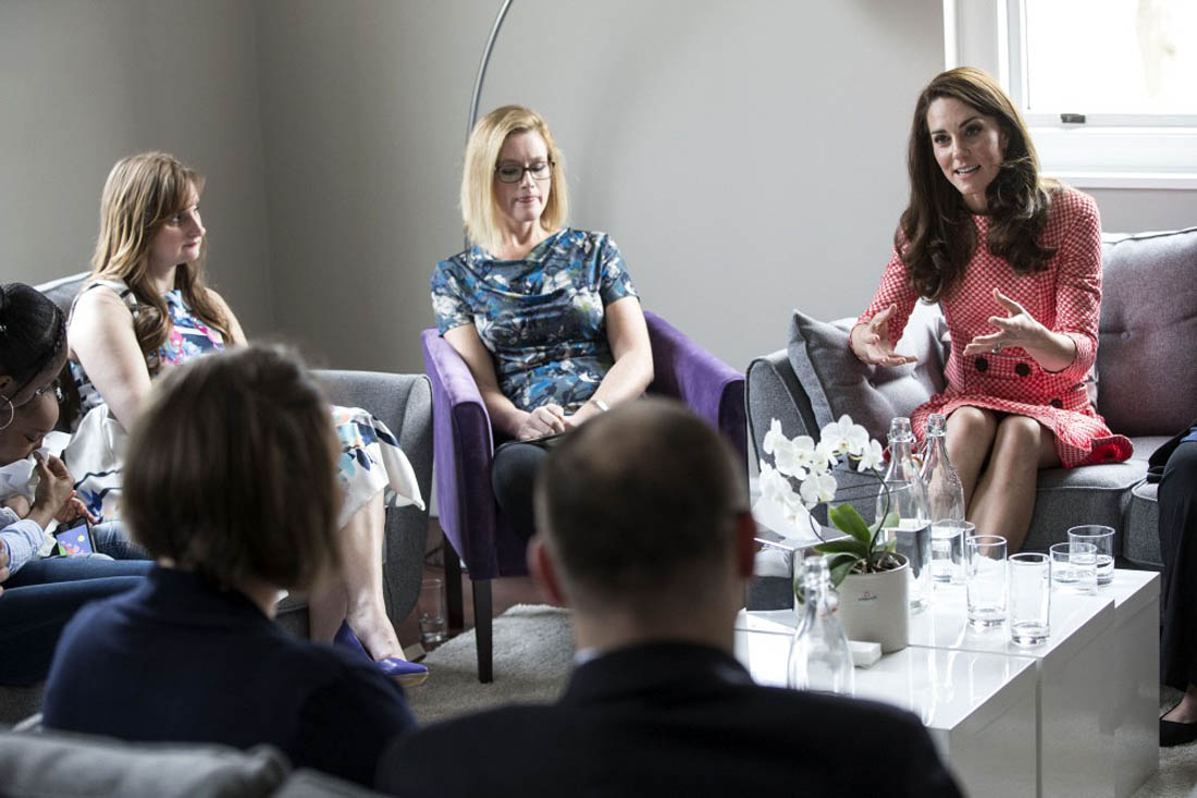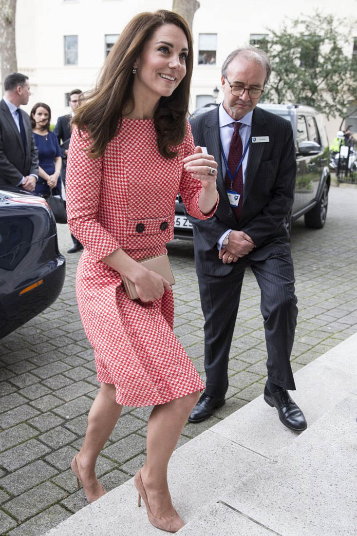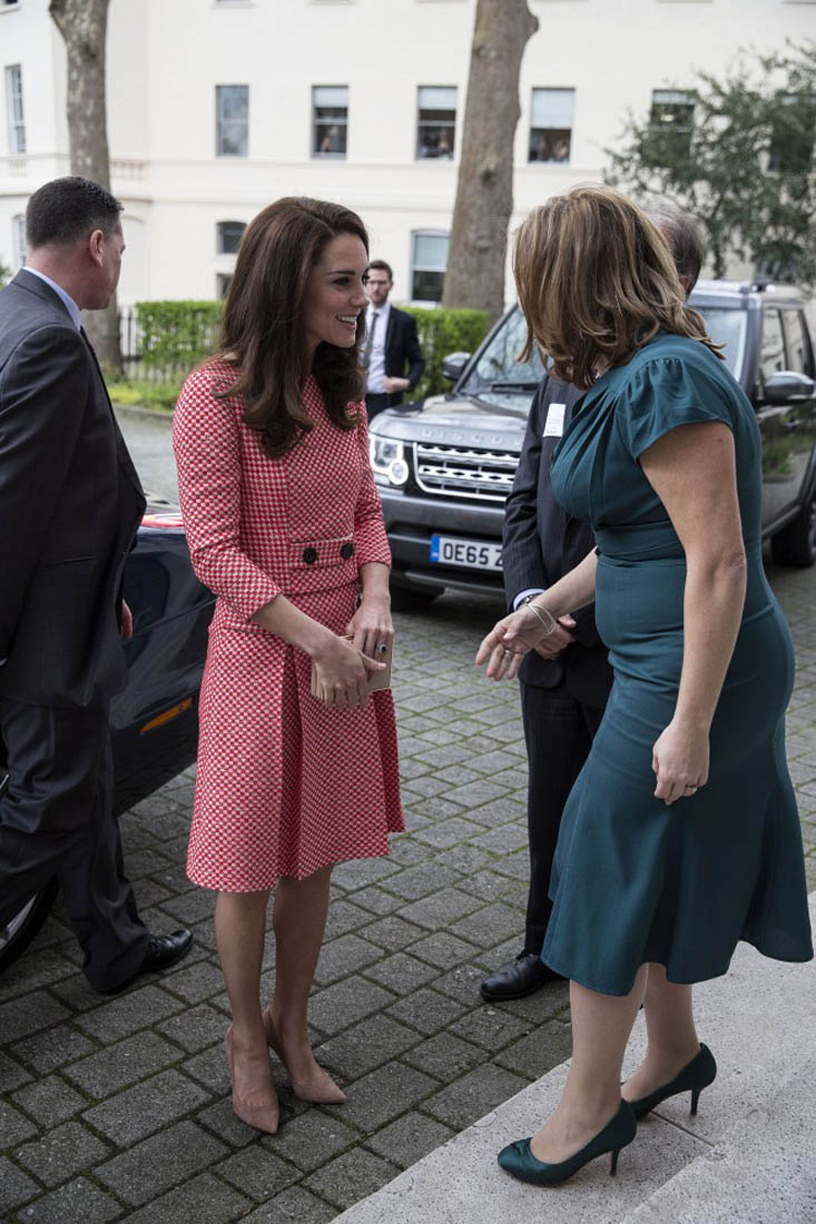 So here’s Princess Kate today, the next day, meeting with a parent support group ahead of Mother’s Day in the UK at the Royal College of Obstetricians and Gynecologists as part of her work with the Heads Together campaign. As you know, the Queen was a teenager during the WWII. She knows all about keeping calm and carrying on. She joined the Auxiliary Territorial Service and was trained to be a truck driver and a mechanic a few months before the war. Many looked to her and her family for encouragement, a sense of hope. Her Majesty knows all about keeping calm and carrying on. And this is the expectation for those who represent her. Kate’s appearance today carried extra significance then. There’s nothing to shade here. She did a good job.