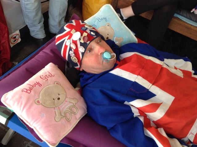 Princess Catherine was photographed today at Buckingham Palace. Click here to see the pictures. She's driving. Big G is in the backseat. They were going to great granny's for a swim in her pool. And she's a few days past her due date. And hundreds of media, maybe more, are on standby just waiting. Waiting for the coming of the child. Not to mention the royal TwiHards camped outside Mary Lindo. A friend of mine sent this to me yesterday, true story. See? Crazy.