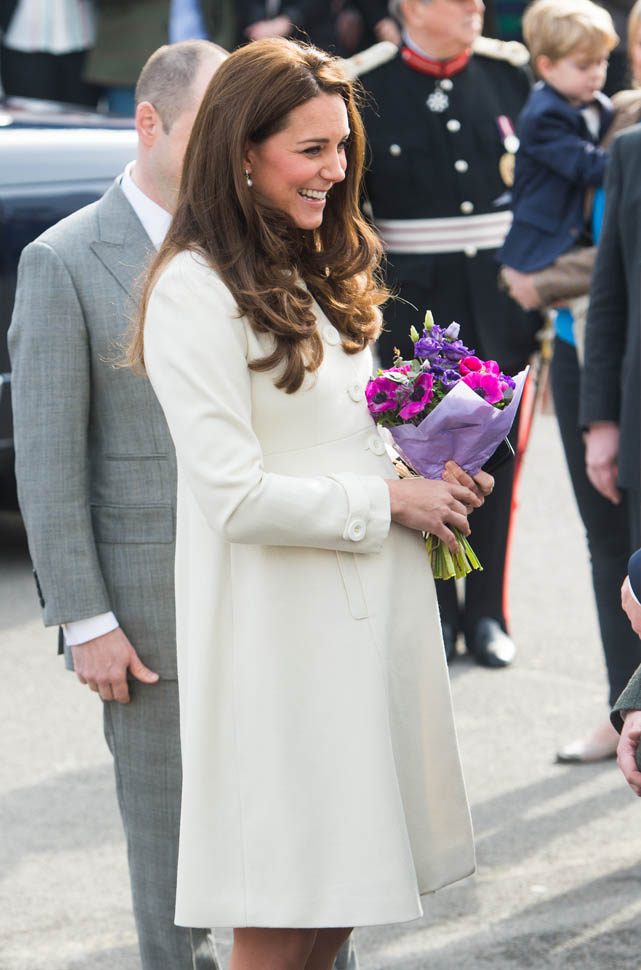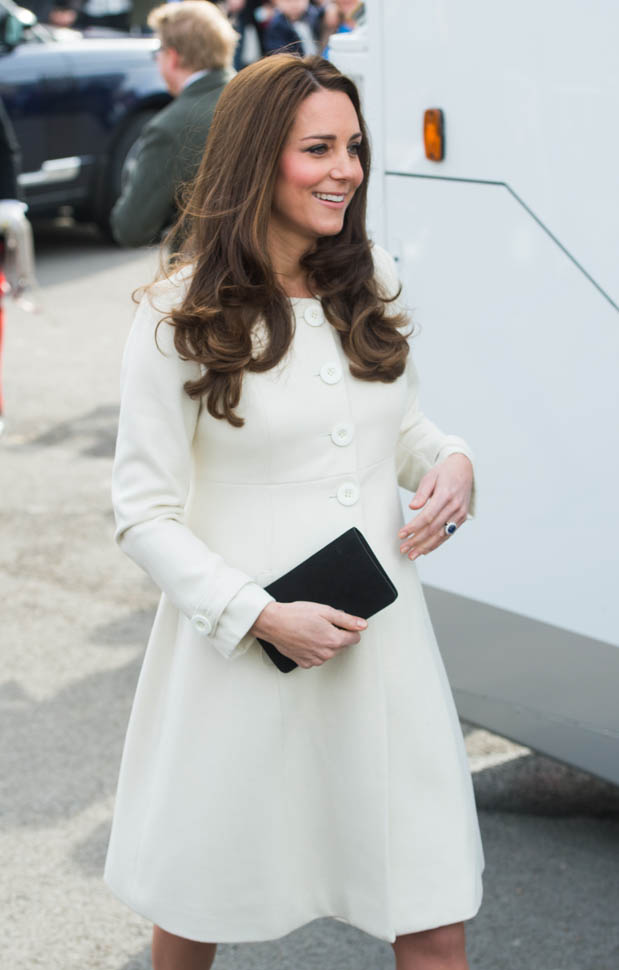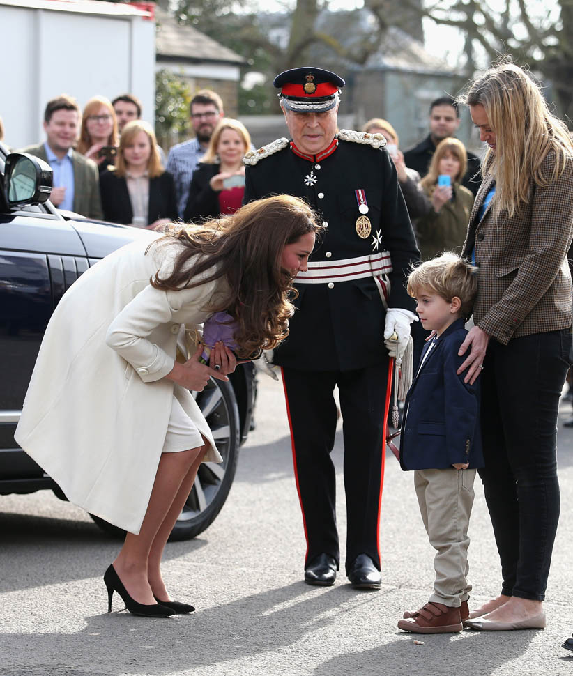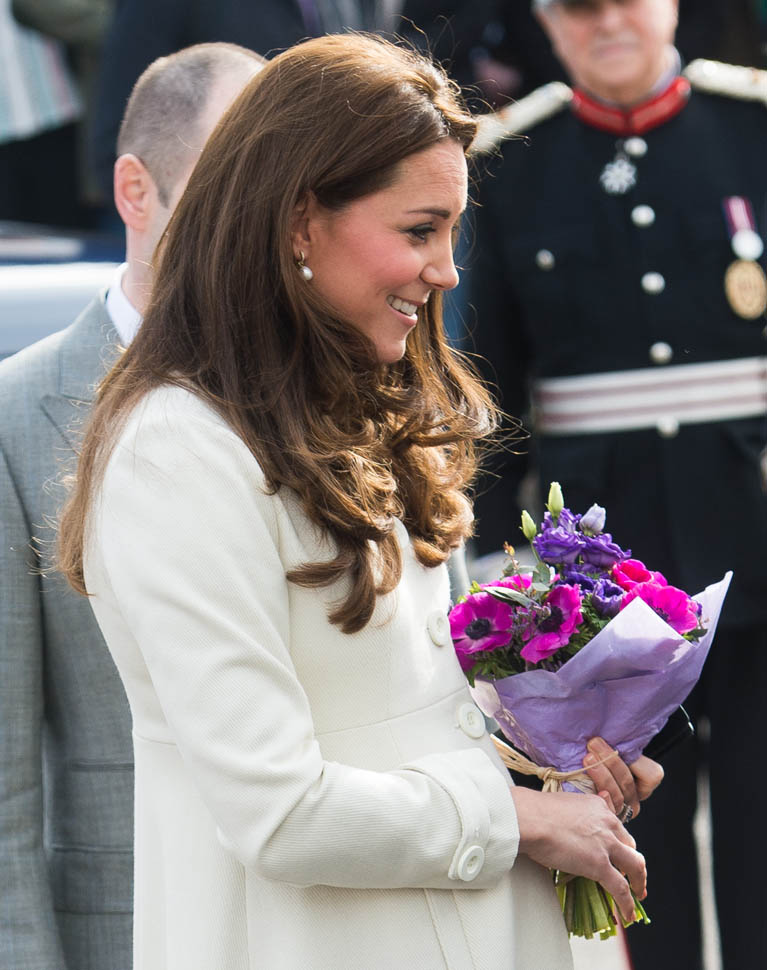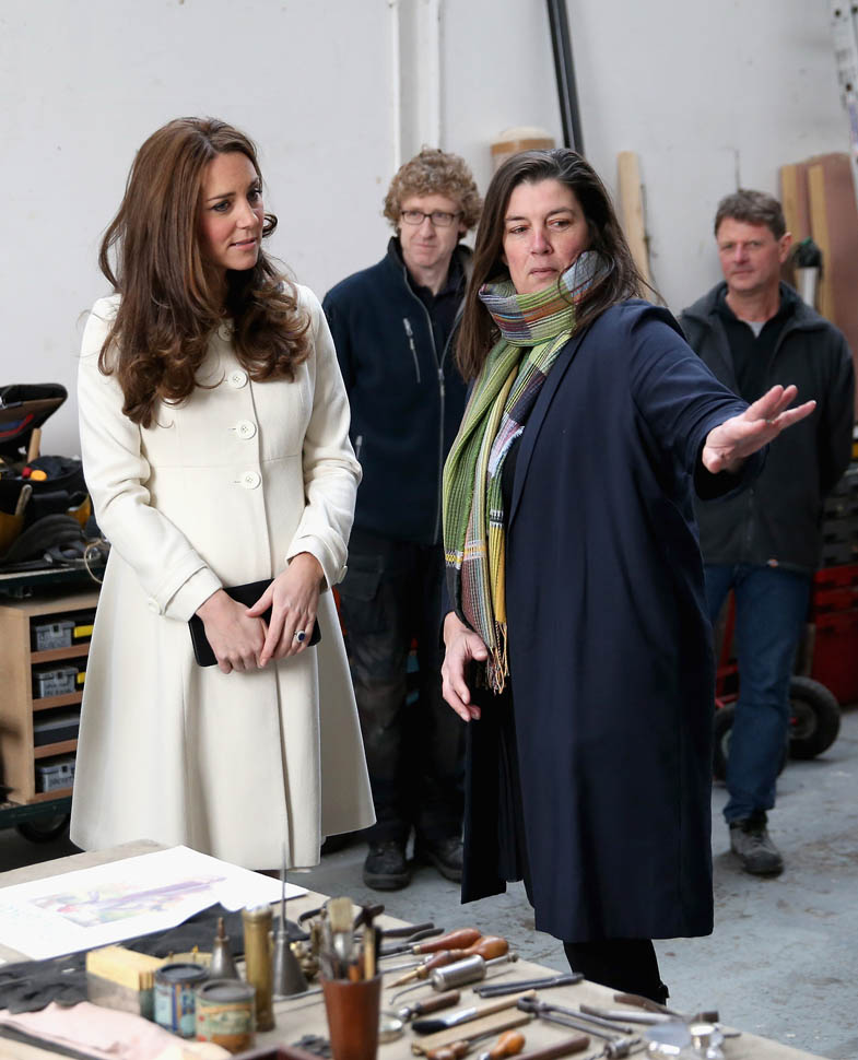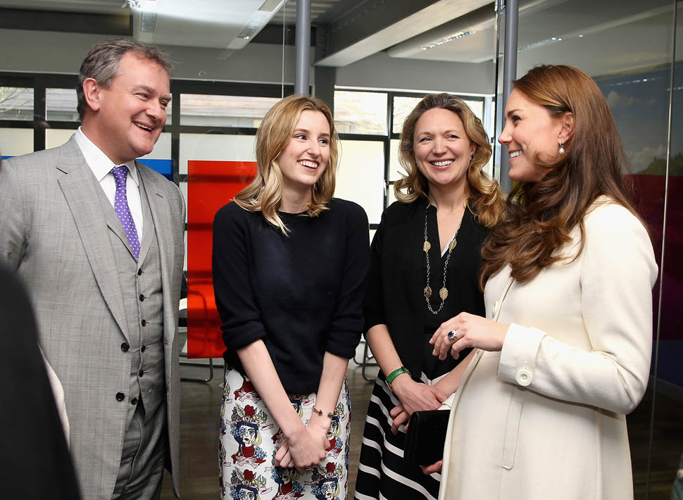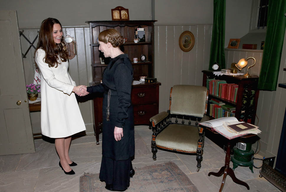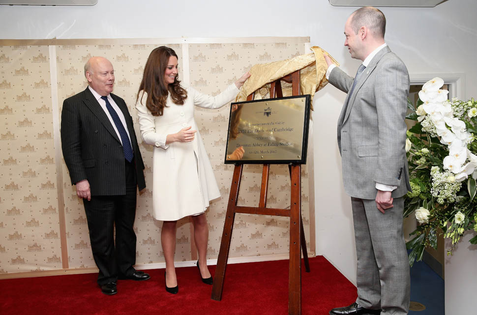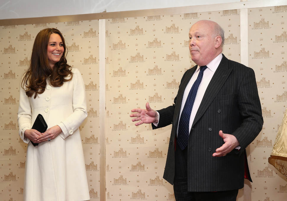 Princess Catherine visited the set of Downton Abbey today and everyone’s making “duchess-duchess” quips. She’s a big deal, the show’s a big deal, Royal + Show Business is always a good sell. And apparently she told them she’s a big fan of the show so they took a group photo that looks hilariously like a royal family photo, except that it’s in the servants’ area of the house. If that had been the Queen who was visiting, what would be the protocol around suggesting that location for the picture?