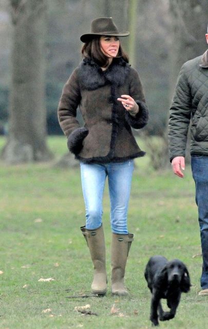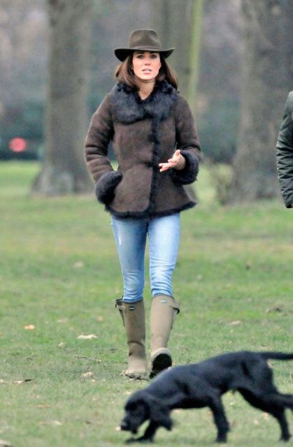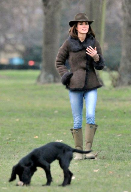 Here's the Princess Catherine with their puppy the other day on a walk in London around Kensington Gardens. You think Lupo swats her in the face at 4am?