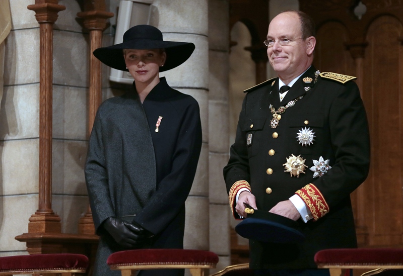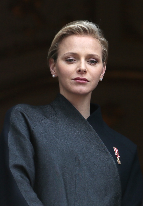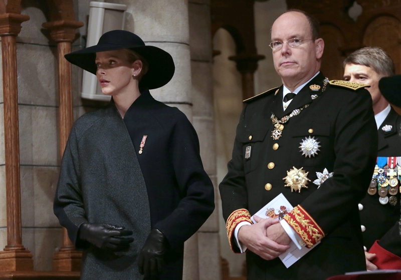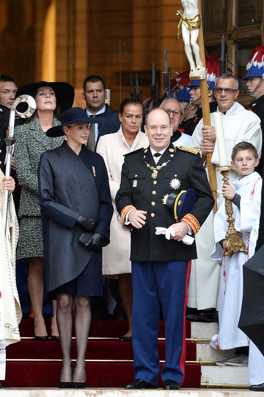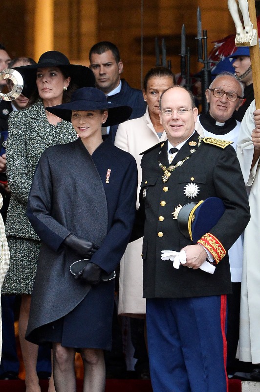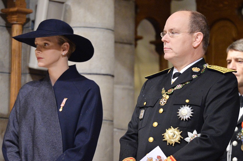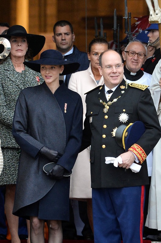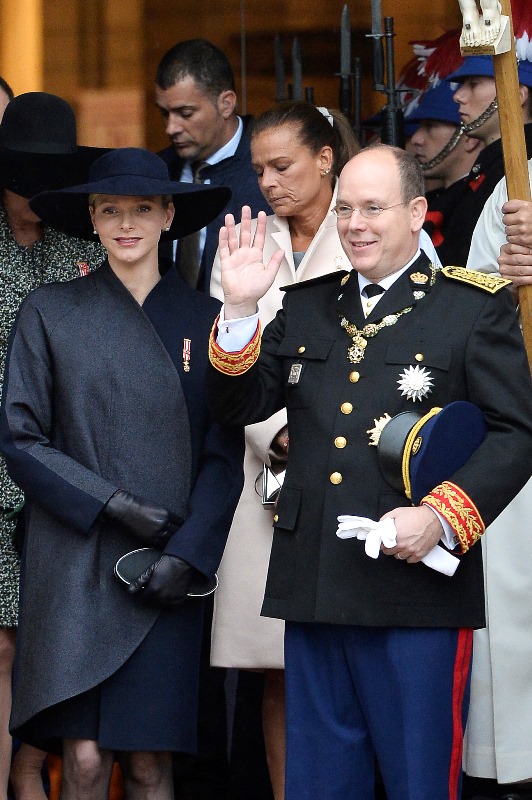 Today is Monaco’s National Day. The royal family celebrated with the people. Here are Prince Albert and his Princess participating in the festivities. Charlene looked beautiful and serene in black…without a trace of joy?
