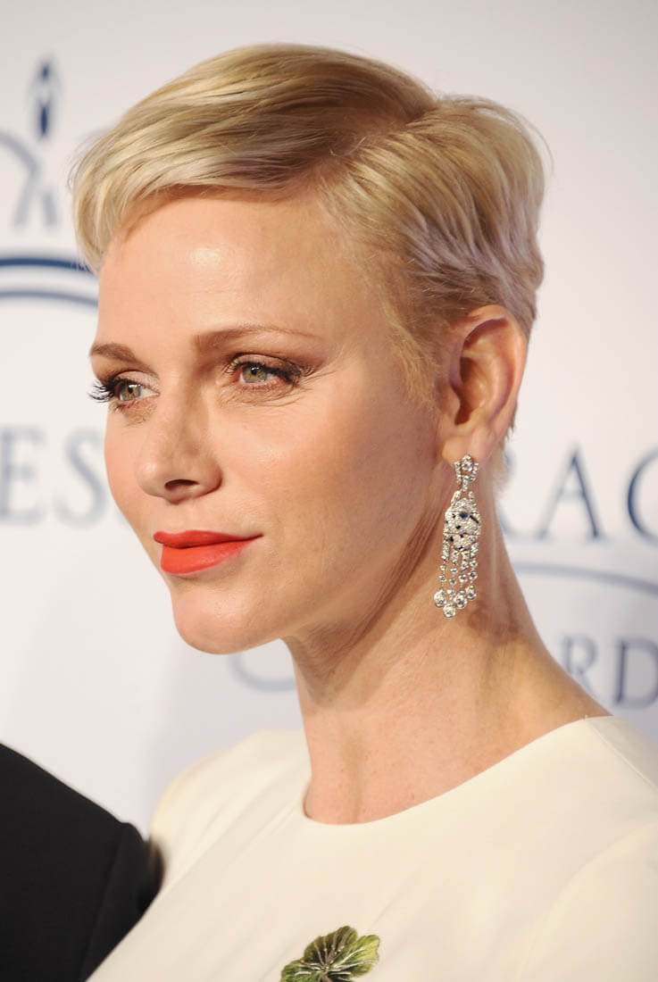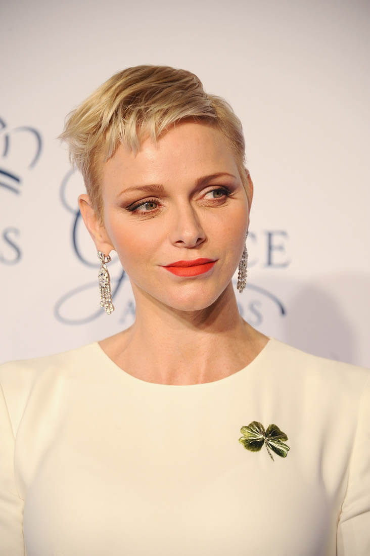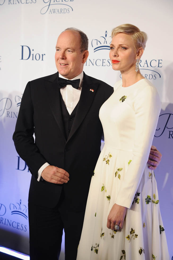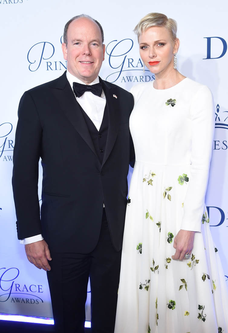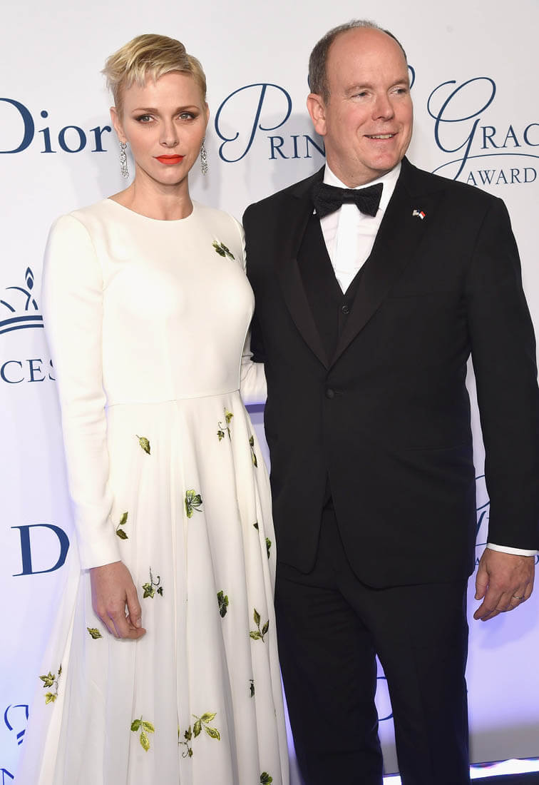 It’s been a while since we caught up with Princess Charlene of Serene of Monaco. She and Prince Albert were in New York last night for the Princess Grace Awards Gala. This is such a lovely dress on her. Those green flowers are so pretty against the white fabric. And I like her hair a little spikey like that.