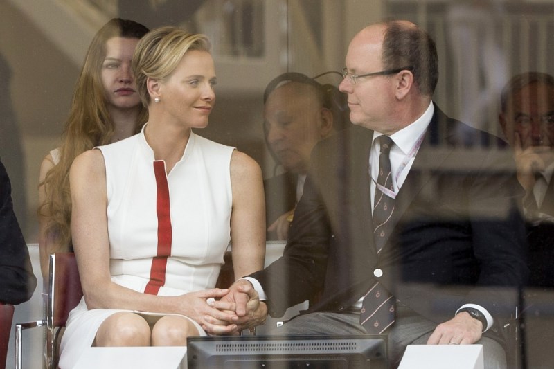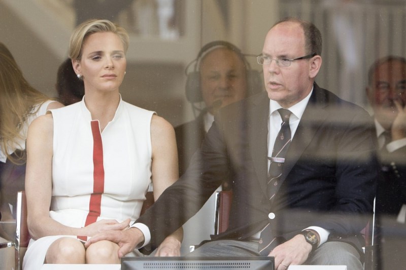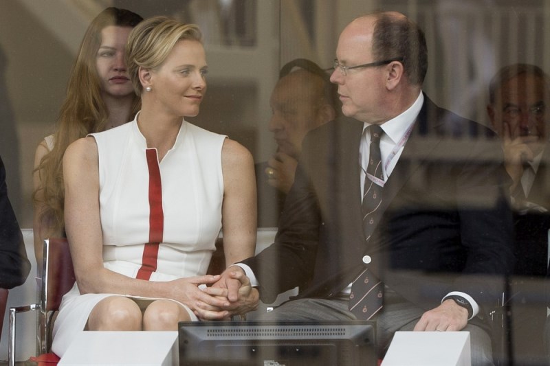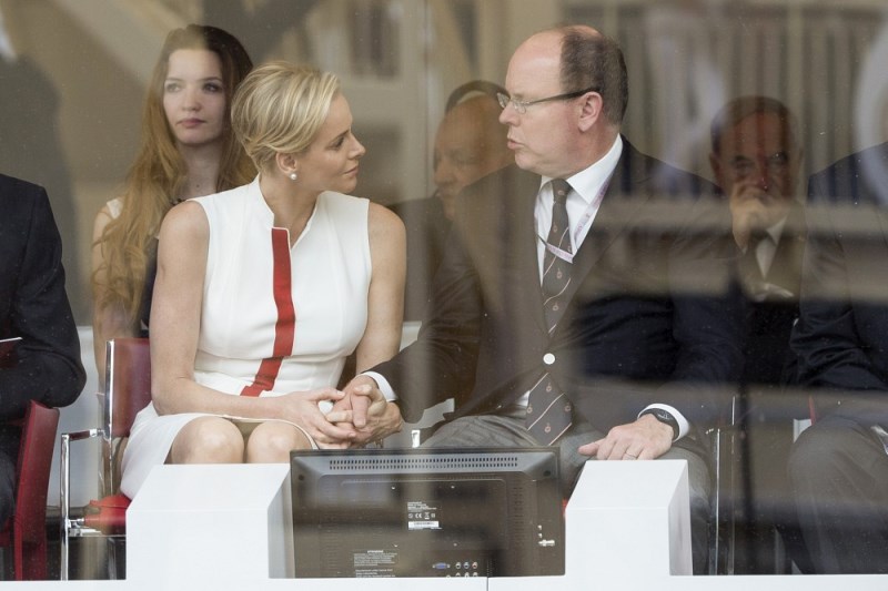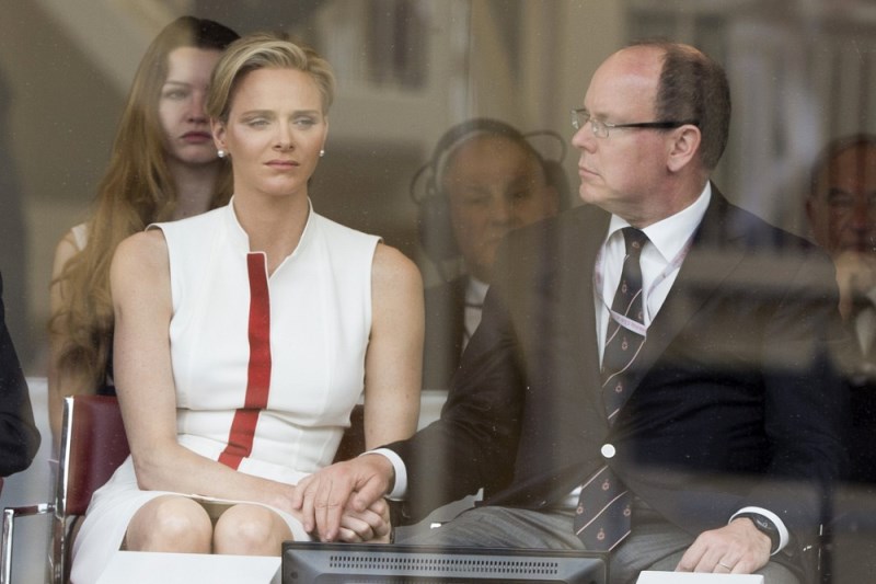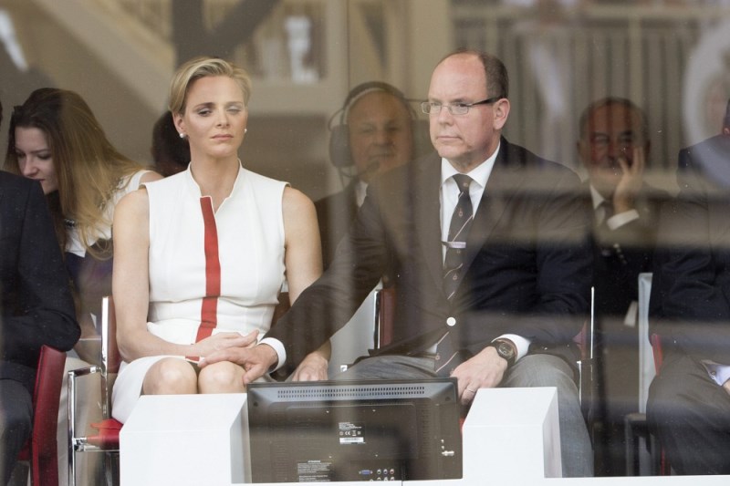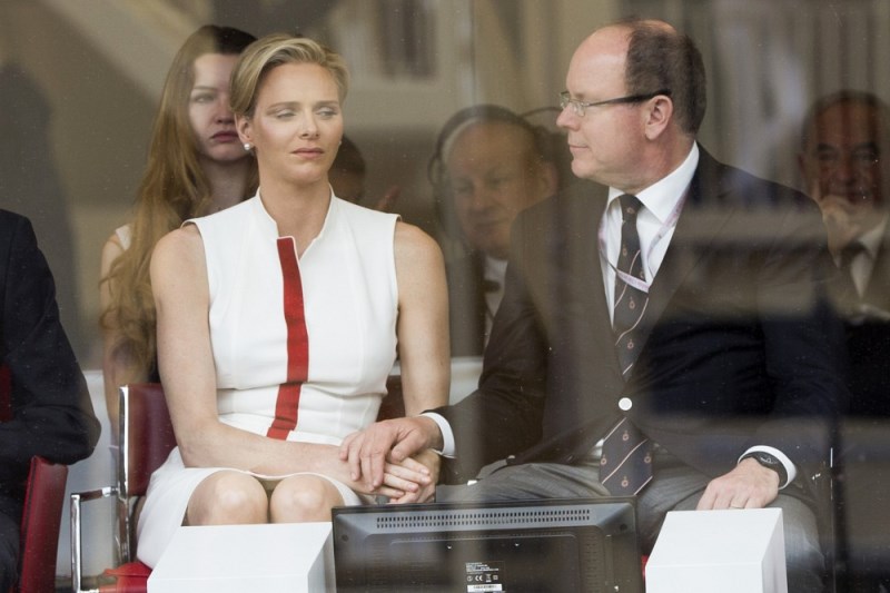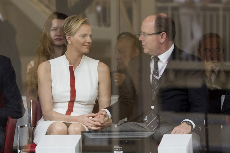 Here are Charlene and Prince Albert at the Grand Prix of Monaco last weekend. She smiled at him and let him put her hand on his knee. They even clasped hands while seated. He looks…proud of her. Proud of himself.