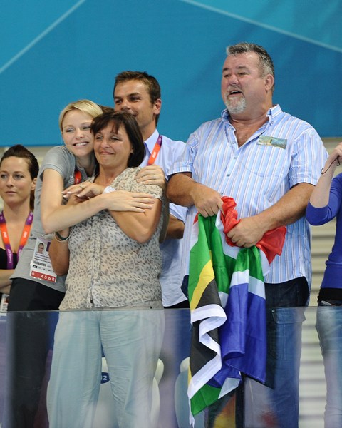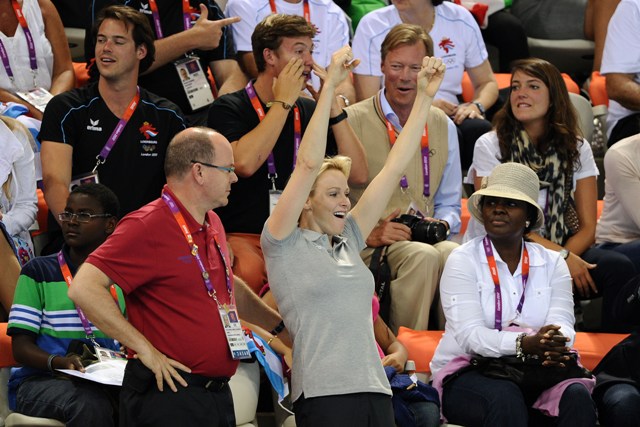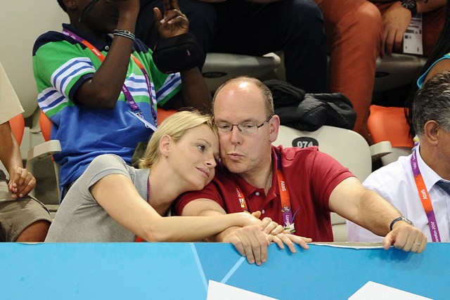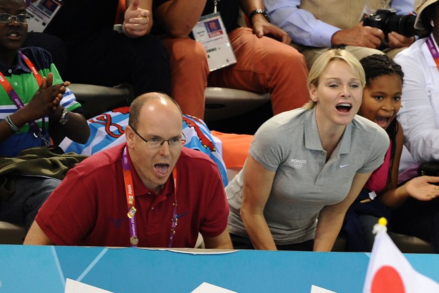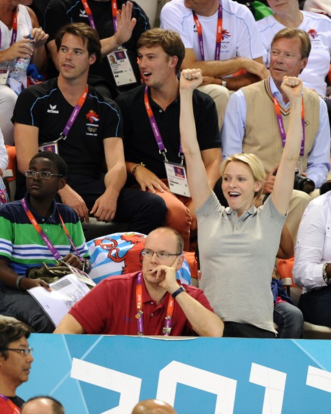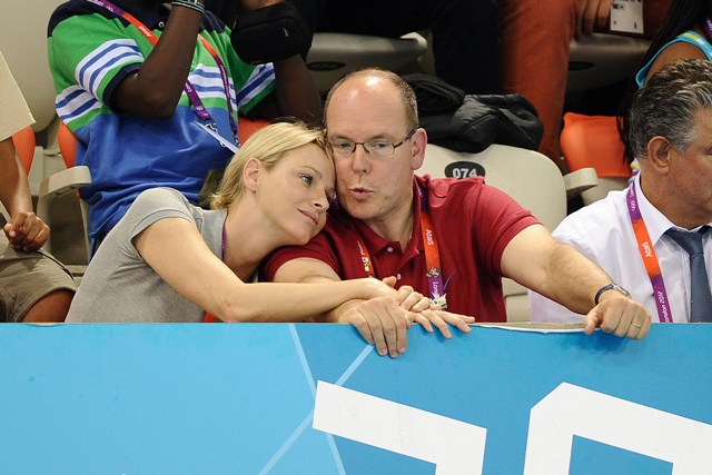 That swimmer happened to be Chad Le Clos who beat Michael Phelps in the 200 fly last night with Charlene in the stands. Check her out, surprisingly demonstrating some actual affection for Albert...