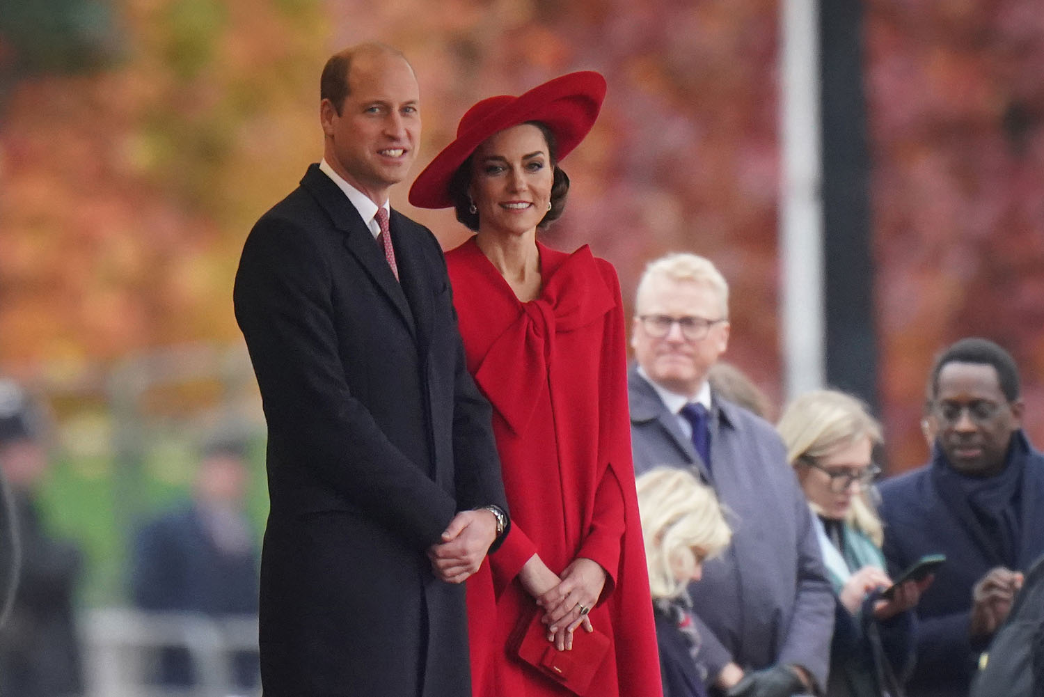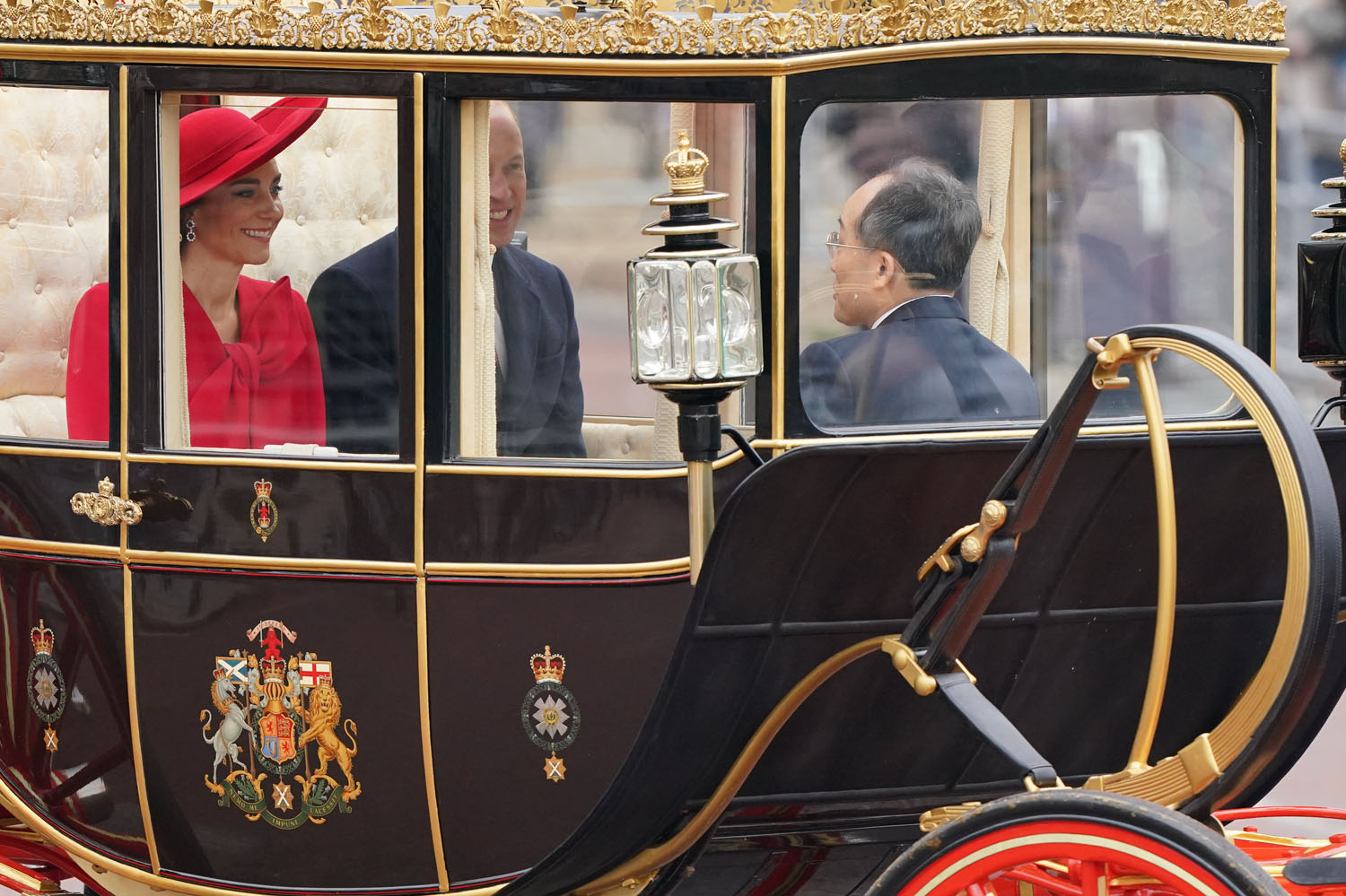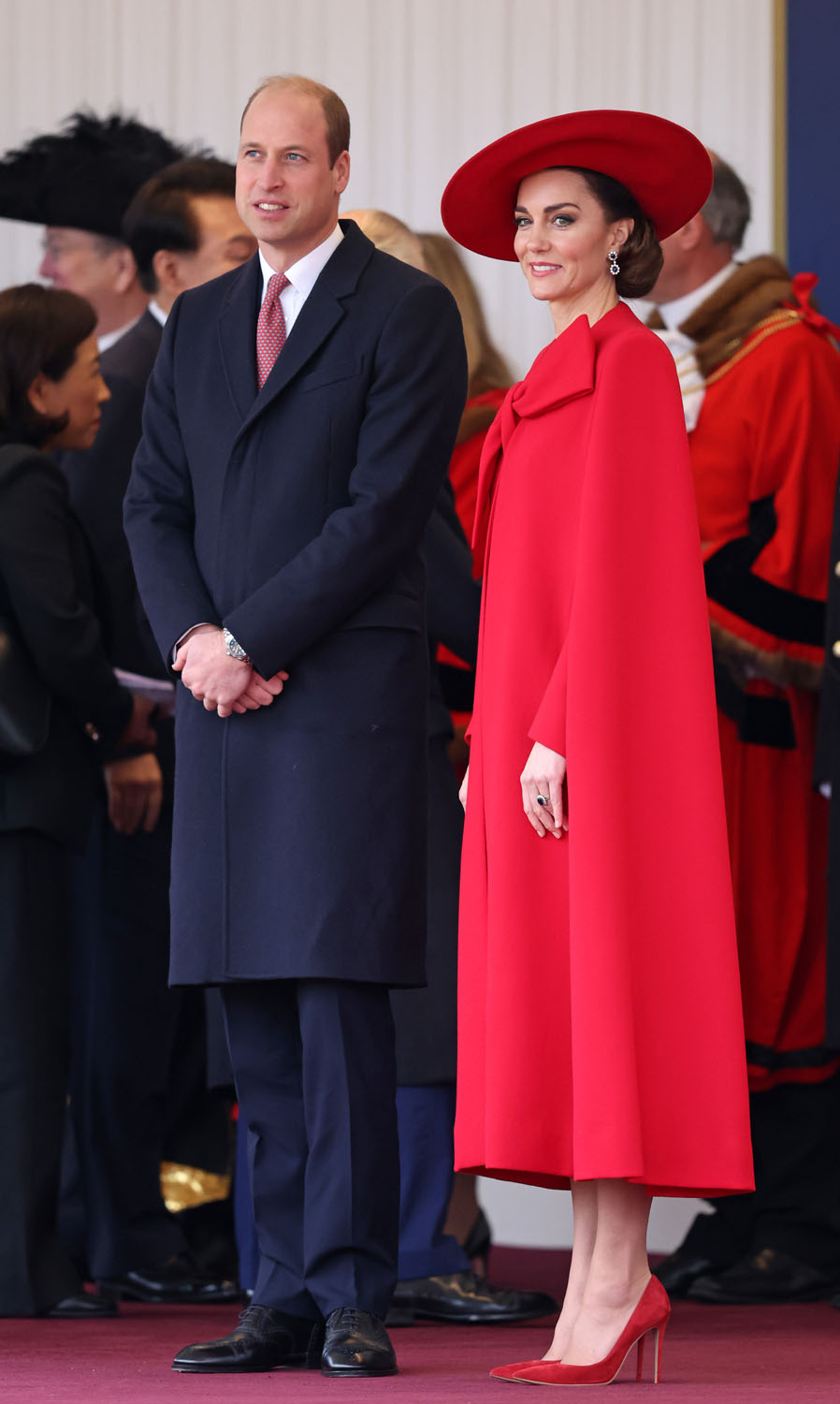 South Korean President Yoon Suk Yeol and First Lady Kim Keon Hee are in London for a two day state visit and Prince William and Kate were responsible for the initial greeting, representing the British royal family, before heading over together to meet King Charles and Camilla. This is what the British monarchy is known for – the pageantry, the spectacle, the carriages, and the jewels. And Kate really brought it today with her look.