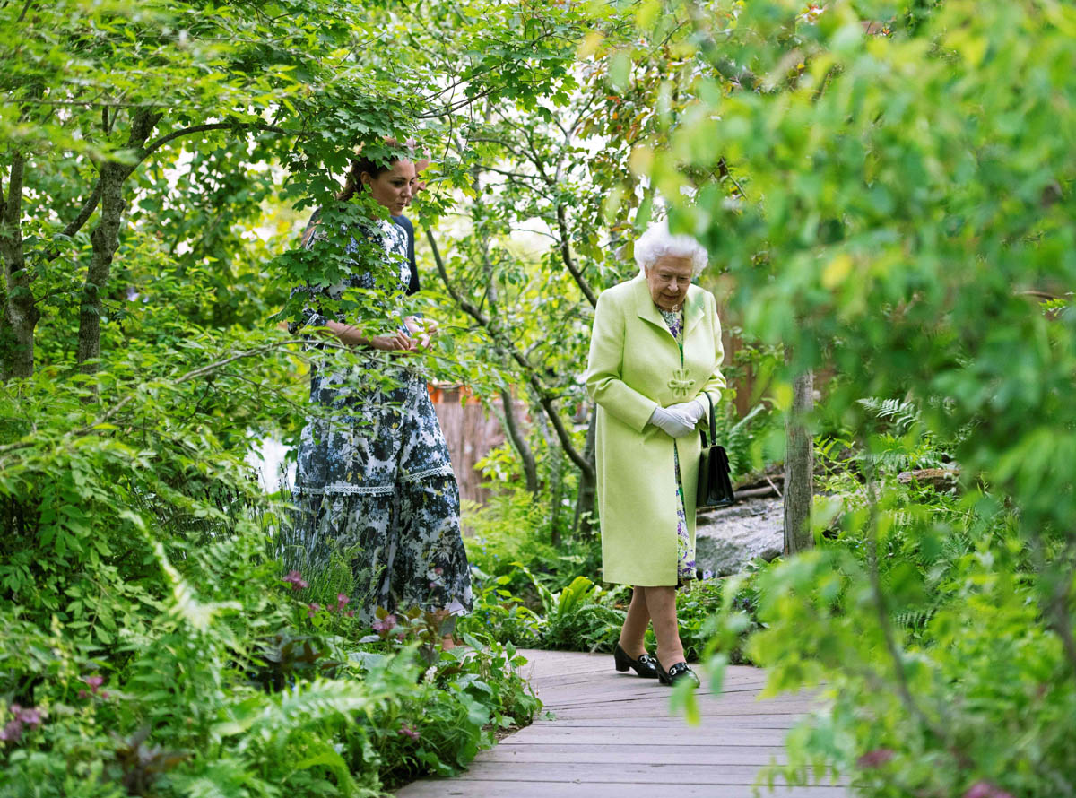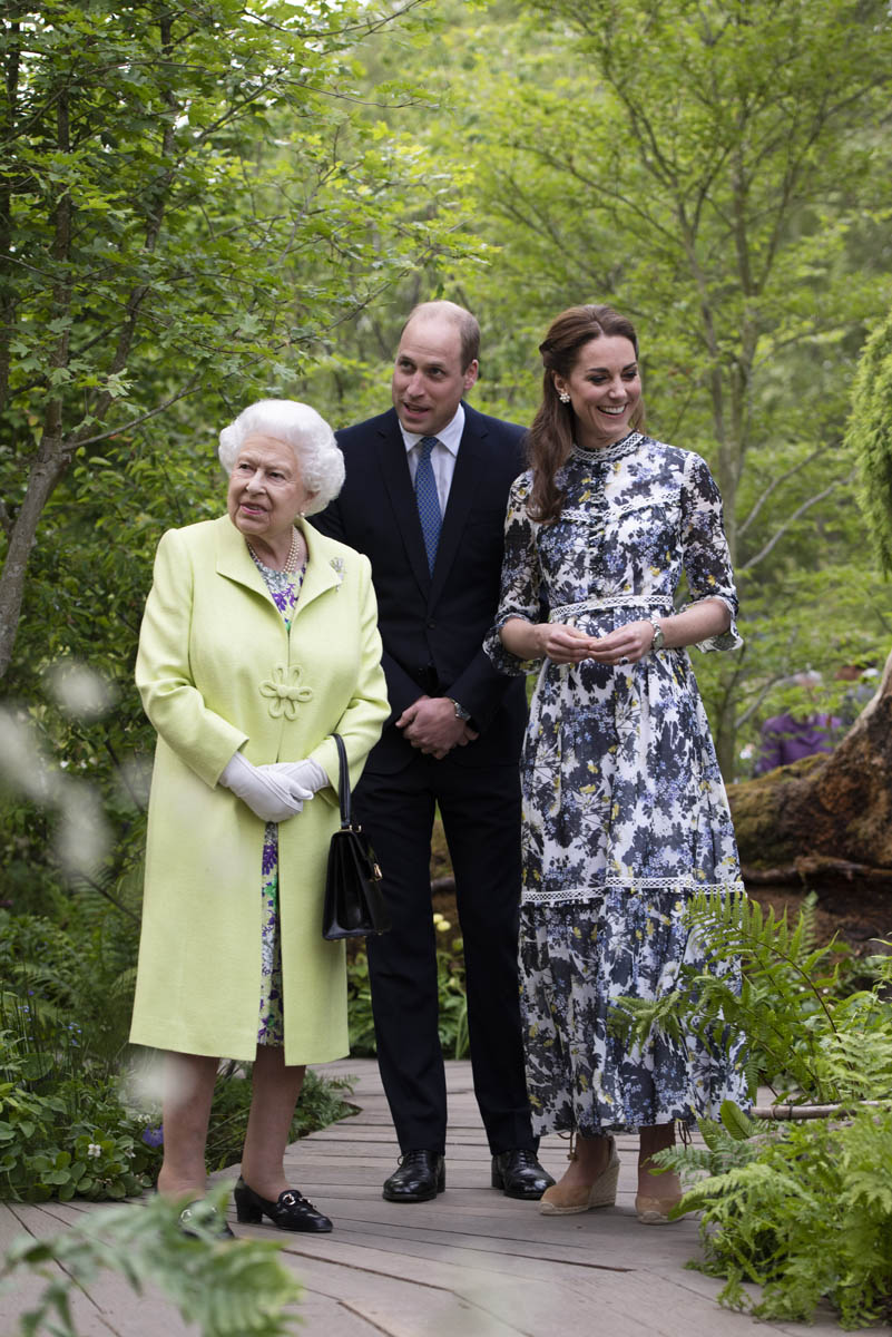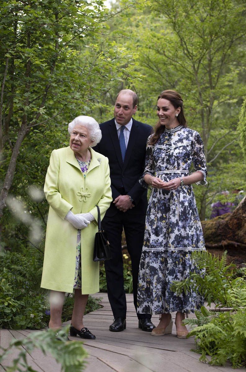 As I posted yesterday, Princess Kate welcomed the Queen to her Chelsea Flower Show garden yesterday ahead of its official opening today. Her Majesty seemed impressed as she toured the green space, after warmly greeting Will and Kate: