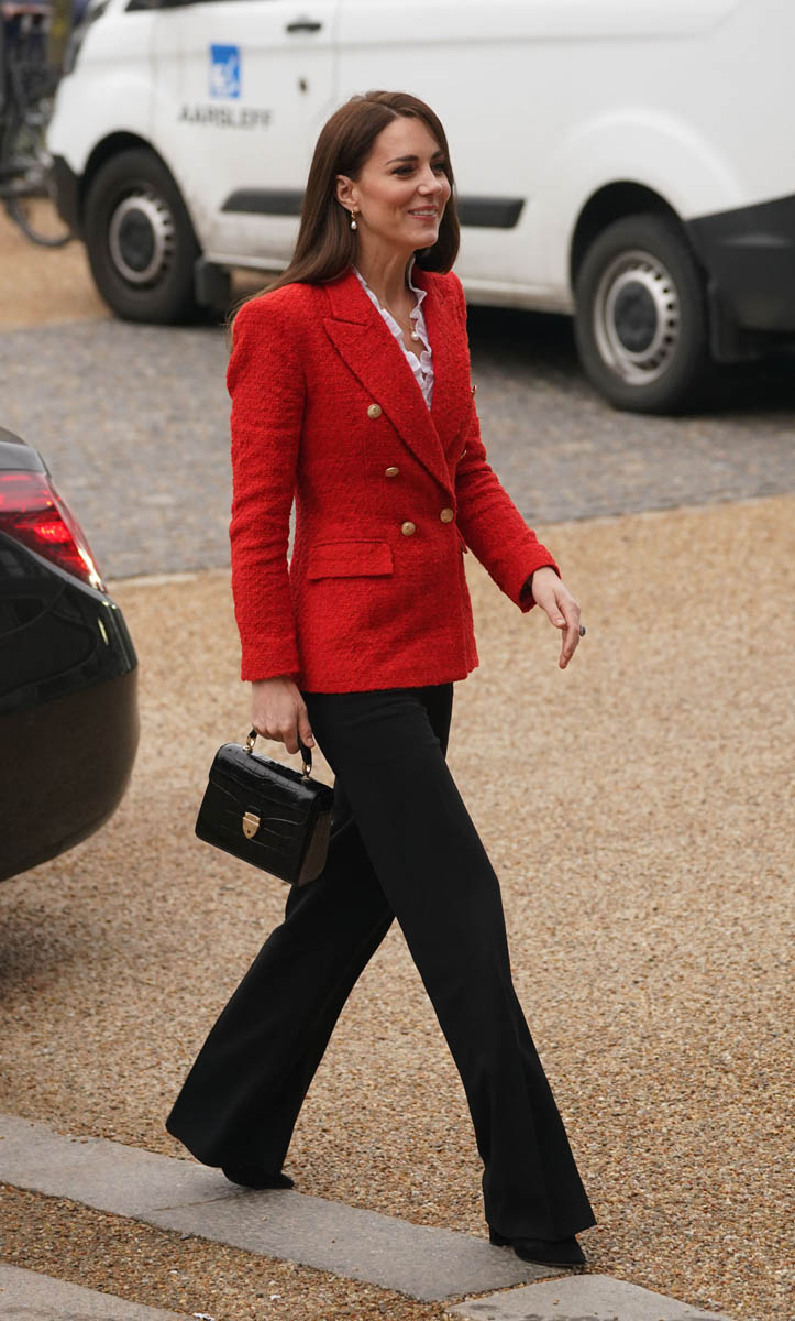 Here’s Kate today in Copenhagen. It’s a two-day visit on her own as part of her work on her Royal Foundation Centre for Early Childhood. She’s scheduled to meet with experts at the Copenhagen Infant Mental Health Project at the University of Copenhagen and with parents at the Copenhagen Children’s Museum. A stop at the Lego Foundation PlayLab is also on the schedule.