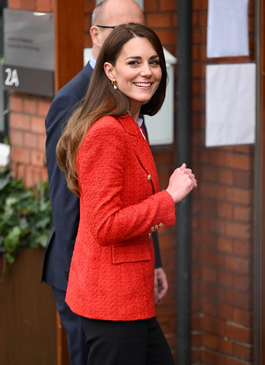 As always, Kate dressed on theme in a red blazer over a white blouse repping the colours of Denmark. And the hair is really good – an almost-straight blowout, with a just a hint of volume but no sign of a curl or a wave. Let’s see more of this!