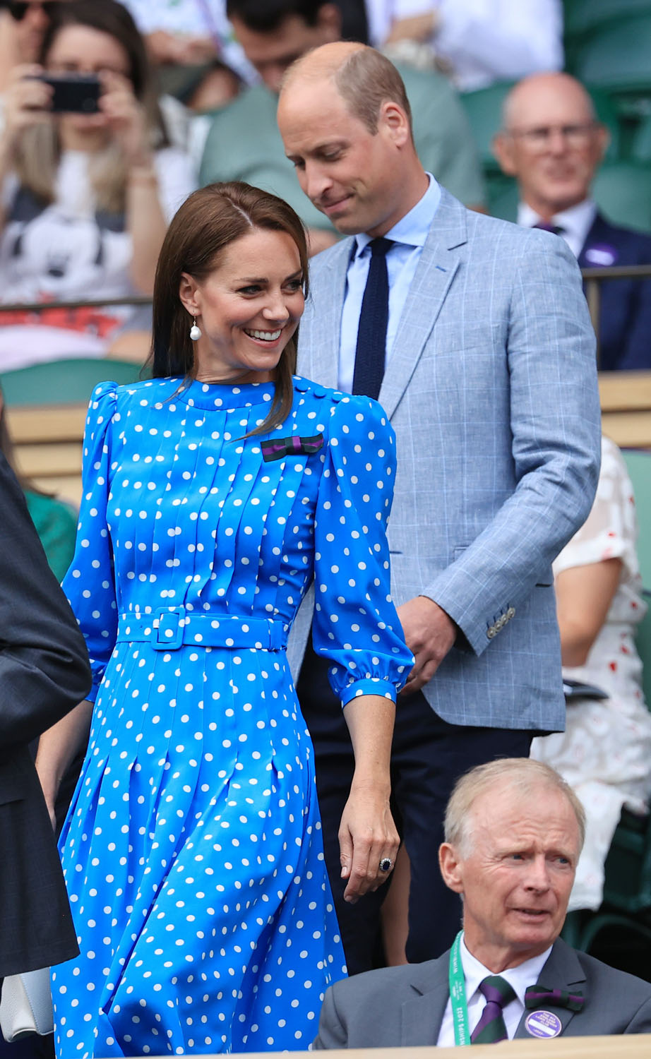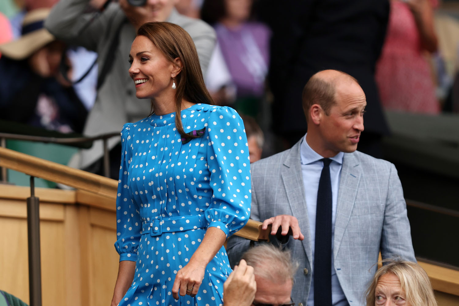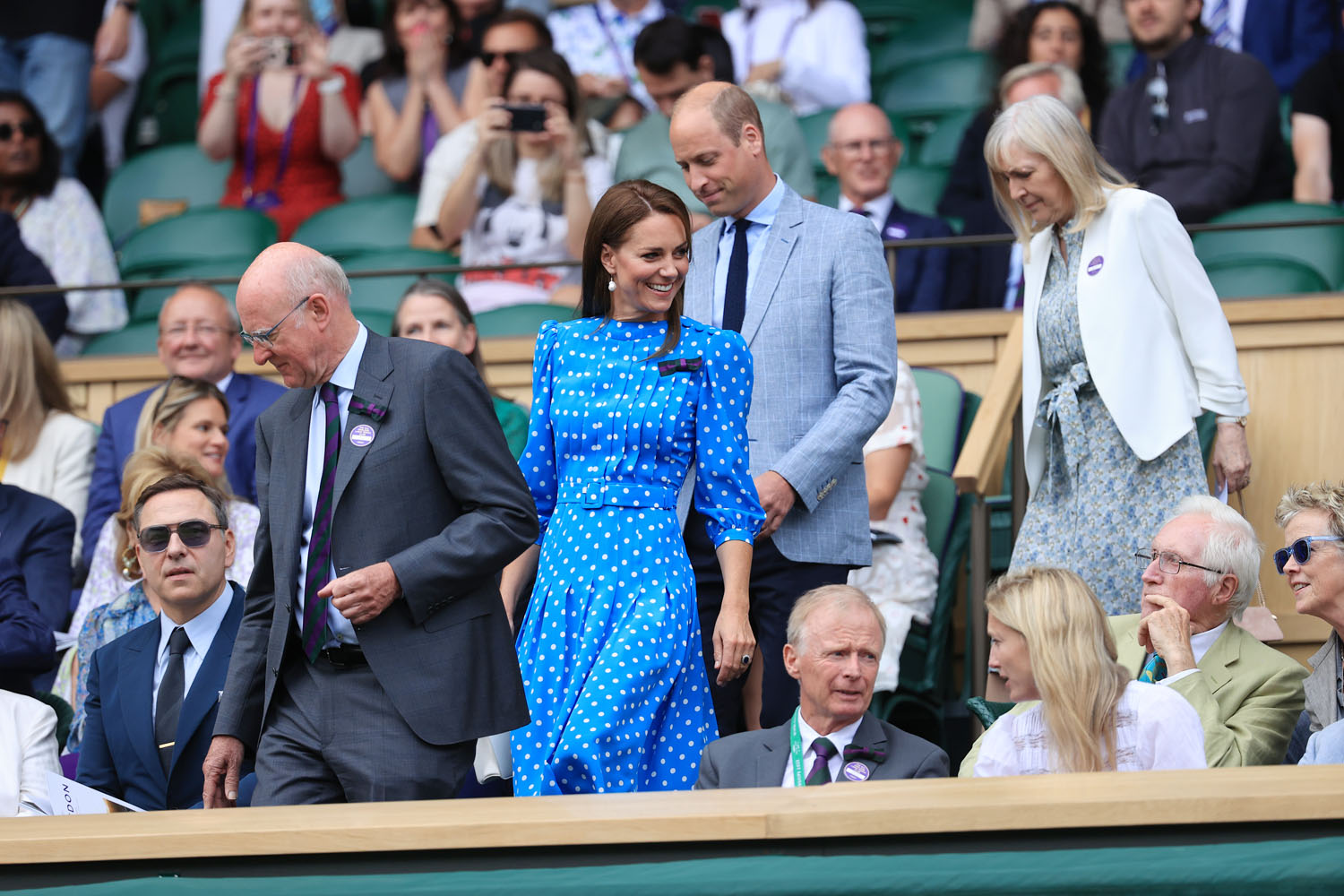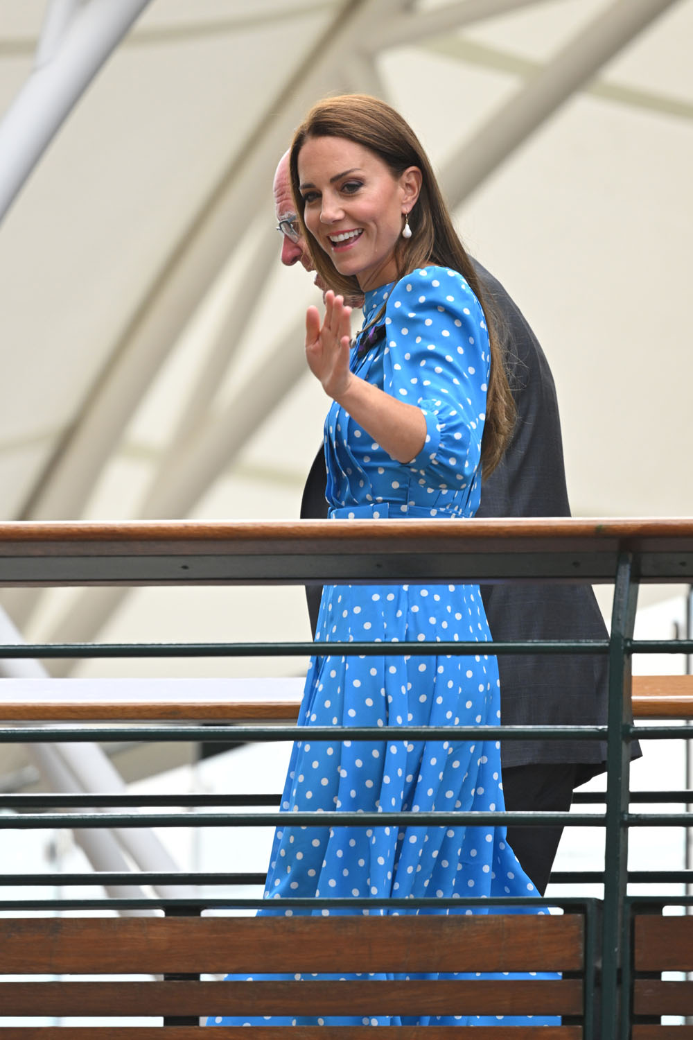 Kate is wearing Alessandra Rich today, a blue dress with white polka dots, very much in her style lane. Speaking of tennis style though, let’s talk about this all-white Wimbledon dress code and specifically the impact it has on players on the women’s side who often have to deal with their periods while being told they have to wear white. Anyone who’s ever had a period can relate here to the stress of this on top of the stress of having to compete at this level. As mentioned, some of the athletes go on the pill ahead of Wimbledon, tweaking their menstrual cycles so that they can avoid their periods for the duration of the tournament. These are elite athletes who calibrate their bodies (from food to water to sleep to training) to ensure peak performance and now they’re having to mess with their cycles for a rule dating back to 1877, established by aristocratic pearl-clutchers who didn’t want to see sweat stains – the subtext here being that only poor people sweated and god forbid you look like someone who actually WORKS.